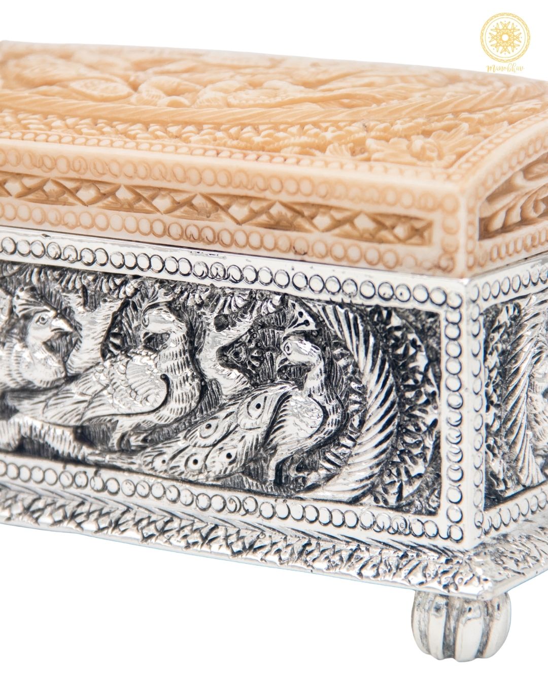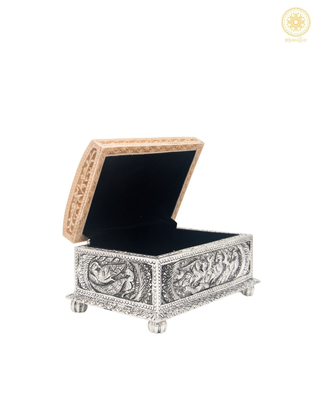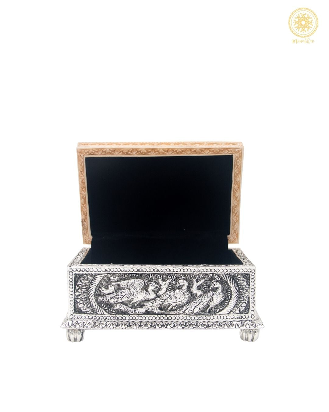Diese exquisite Schmuckschatulle mit 3D-Pfauenmustern löst das Problem von verlegtem und unorganisiertem Schmuck auf effektive Weise. Wenn Sie diese Schatulle verwenden, bietet sie viel Platz für Ihre Ohrringe, Ringe sowie Halsketten und sorgt dafür, dass all Ihre Besitztümer mehr als nur in Ordnung sind. Die Schatulle sieht nicht nur gut aus, sondern ist auch nützlich, da sie wunderschöne Schnitzereien aufweist, die sie von anderen Schatullen unterscheiden. Wenn Sie eine Schmuckaufbewahrung oder einen schönen Dekorationsartikel suchen, ist diese Schatulle perfekt für Sie. Sie passt hervorragend als Halsketten-Organizer und sorgt dafür, dass Ihre Schätze sicher und ordentlich aufbewahrt werden. Machen Sie Ihren Platz modisch und bringen Sie Ihren Schmuck ohne Bruch in perfekte Form. Hier schließt sich der Kreis, dass eine solche Schmuckschatulle gleichzeitig luxuriös und sehr funktional ist.