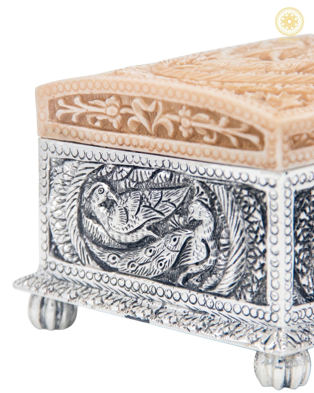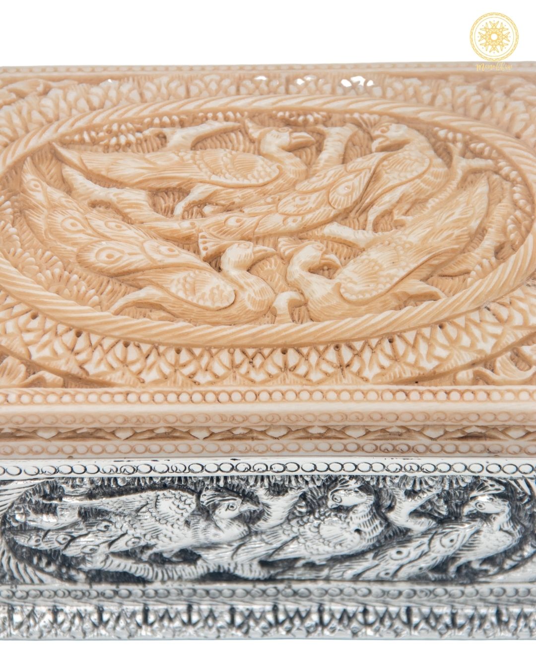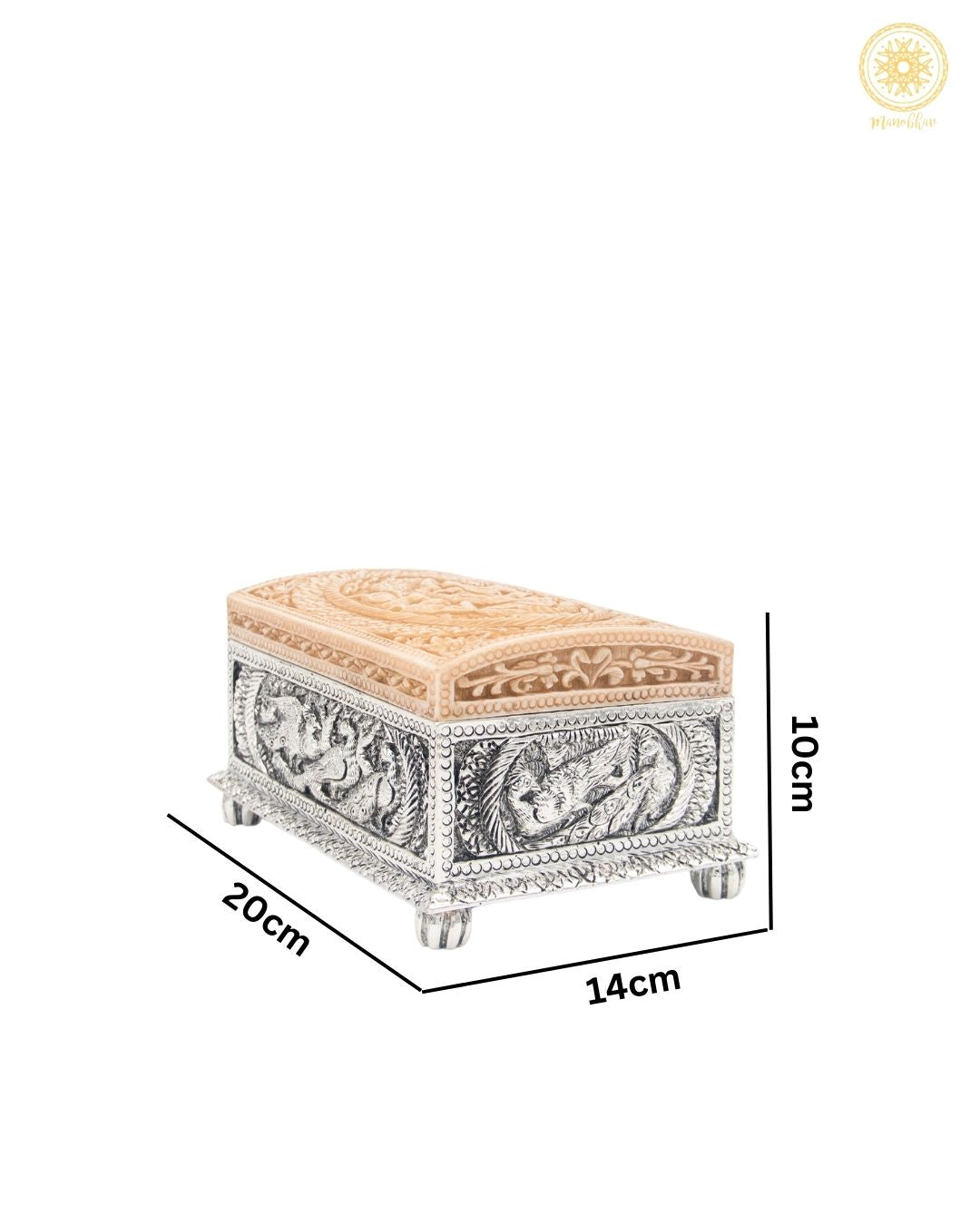 Diese exquisite Schmuckschatulle mit 3D-Pfauenmustern löst das Problem von verlegtem und unorganisiertem Schmuck auf effektive Weise. Wenn Sie diese Schatulle verwenden, bietet sie viel Platz für Ihre Ohrringe, Ringe sowie Halsketten und sorgt dafür, dass all Ihre Besitztümer mehr als nur in Ordnung sind. Die Schatulle sieht nicht nur gut aus, sondern ist auch nützlich, da sie wunderschöne Schnitzereien aufweist, die sie von anderen Schatullen unterscheiden. Wenn Sie eine Schmuckaufbewahrung oder einen schönen Dekorationsartikel suchen, ist diese Schatulle perfekt für Sie. Sie passt hervorragend als Halsketten-Organizer und sorgt dafür, dass Ihre Schätze sicher und ordentlich aufbewahrt werden. Machen Sie Ihren Platz modisch und bringen Sie Ihren Schmuck ohne Bruch in perfekte Form. Hier schließt sich der Kreis, dass eine solche Schmuckschatulle gleichzeitig luxuriös und sehr funktional ist.