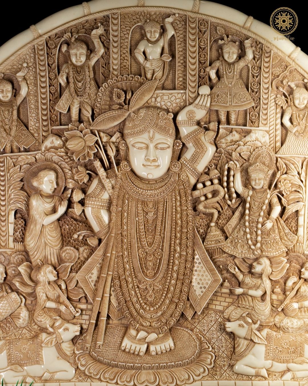 • Divine Nathdwara Art – Features an intricately designed Lord Shrinathji, symbolizing divine blessings and protection.