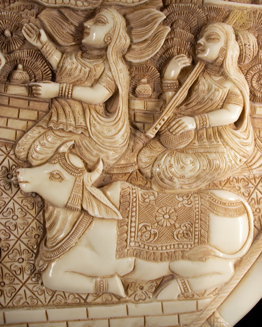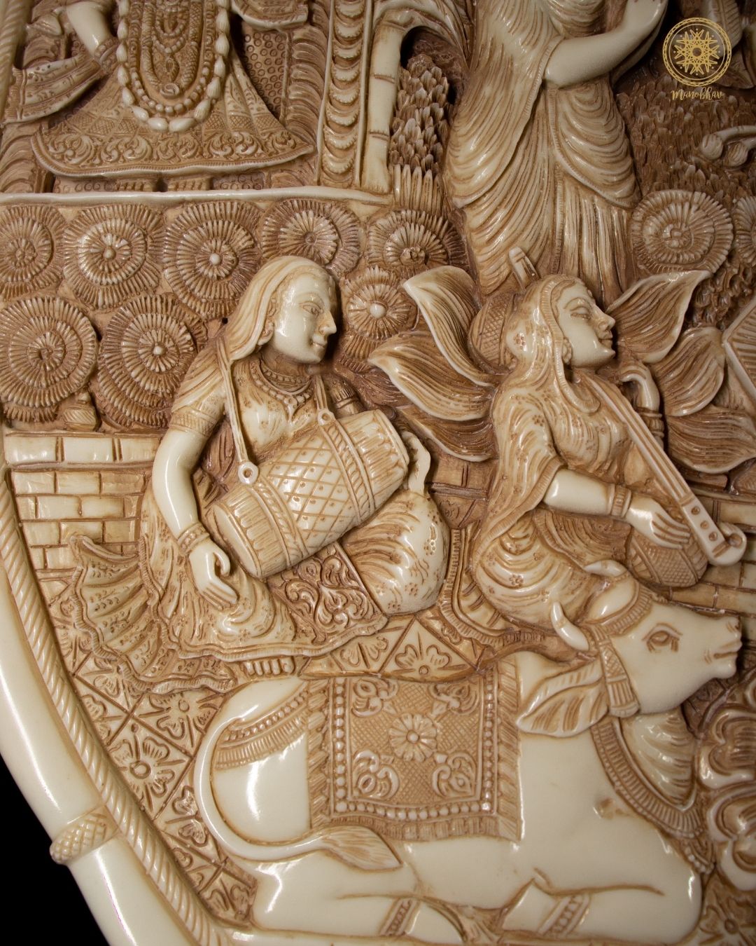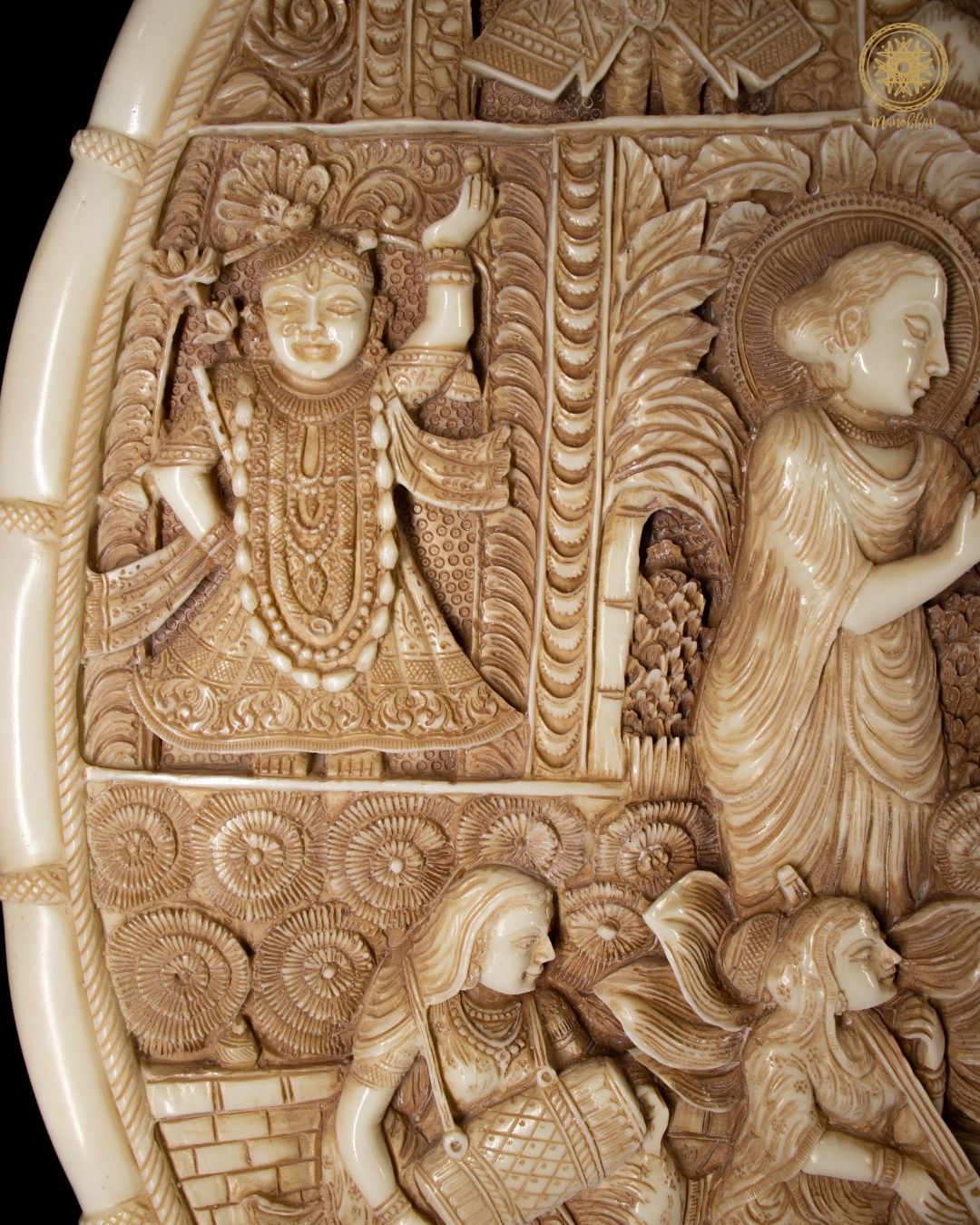 Inspired by traditional Nathdwara art, this Shrinathji wall hanging features detailed carvings and a beautiful visual representation of Lord Krishna as Shrinathji. The fine craftsmanship ensures a vintage, antique appeal, making it an classic religious wall art that combines spirituality with artistic beauty.