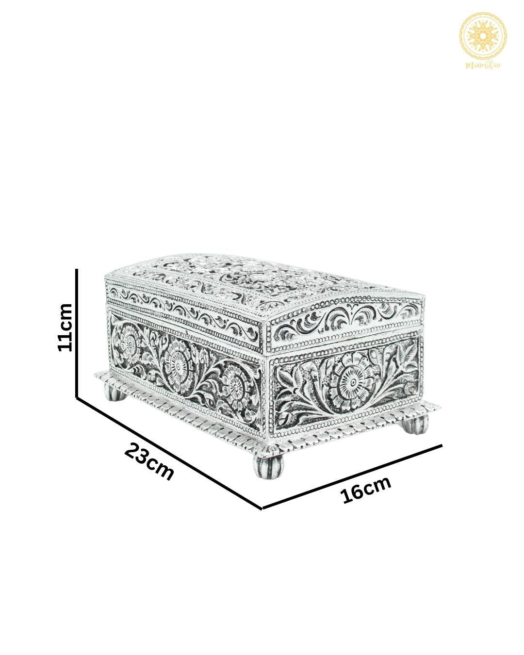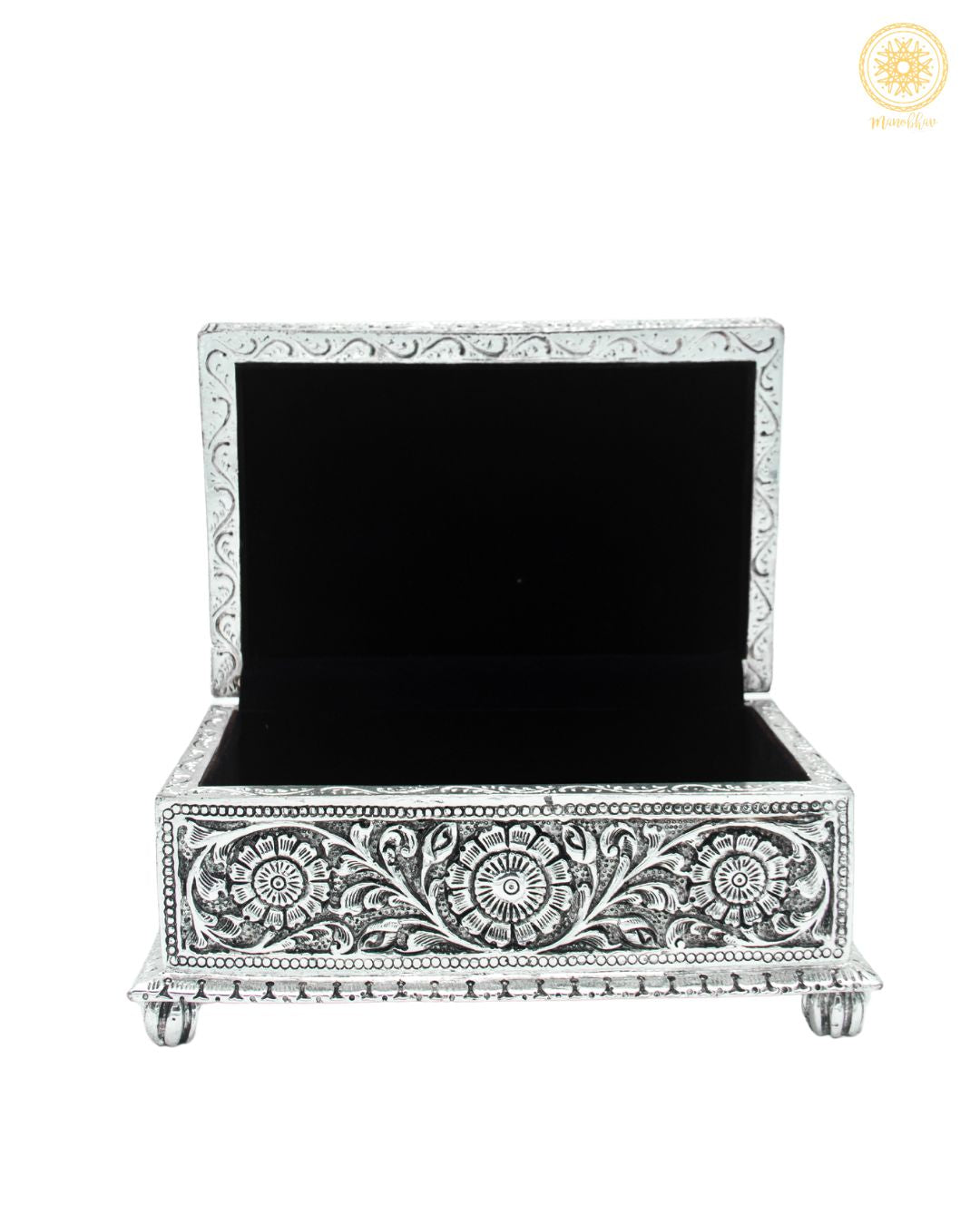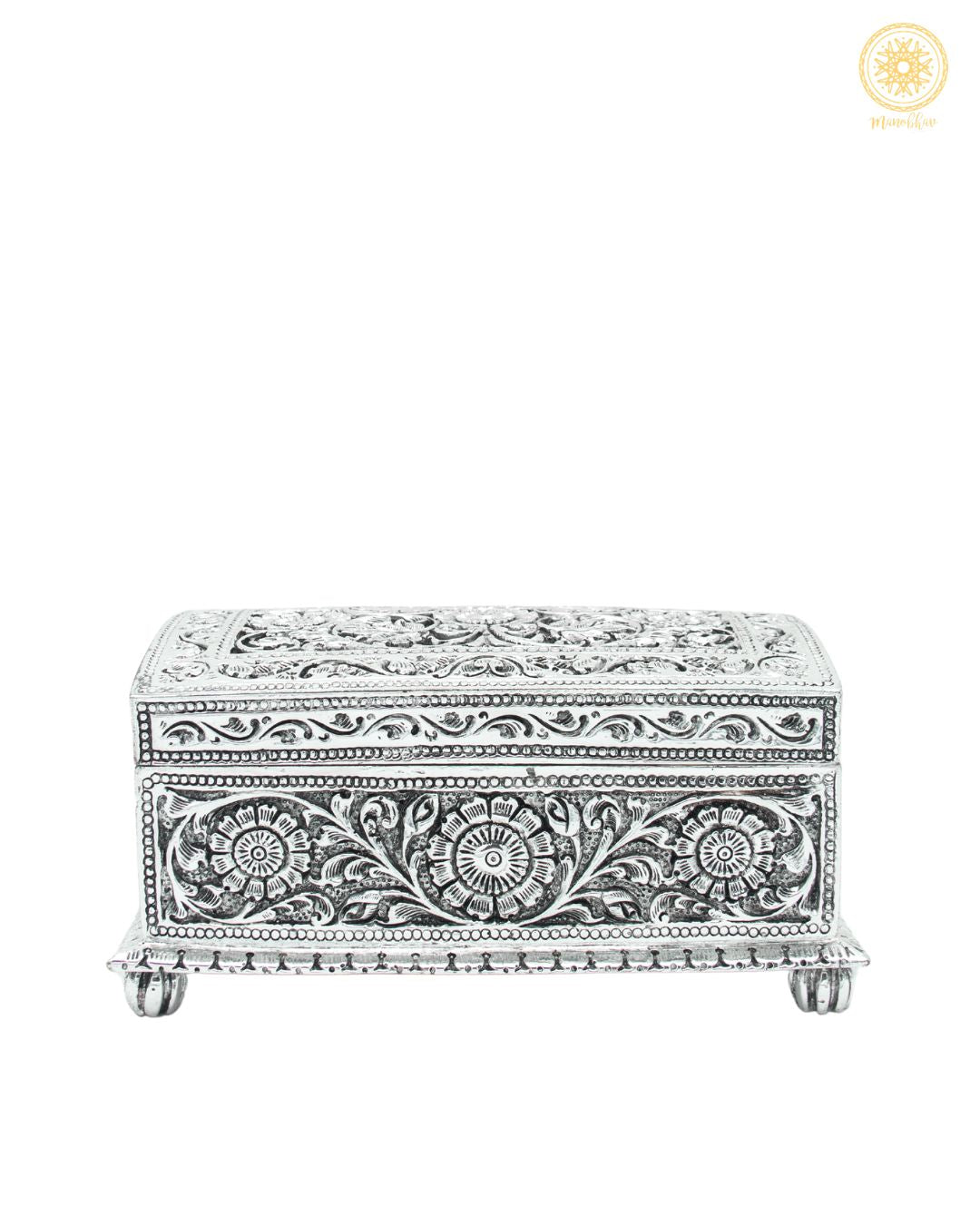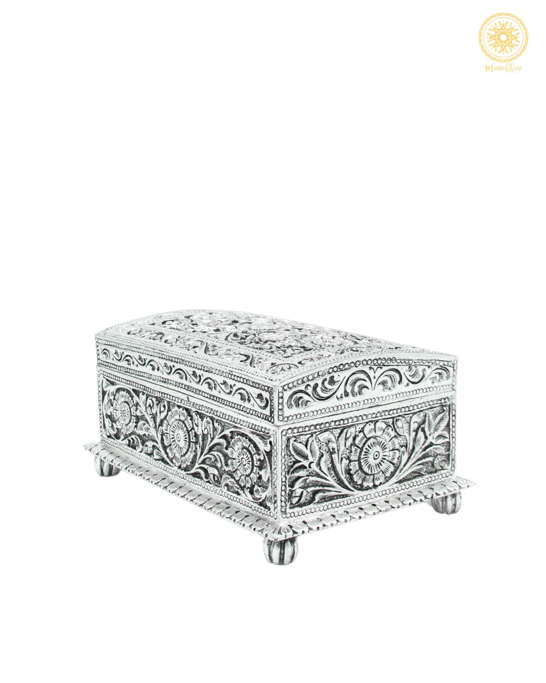 Handgefertigtes versilbertes Schmuckkästchen | Aufbewahrungsbox für Schmuck mit Blumenmotiv