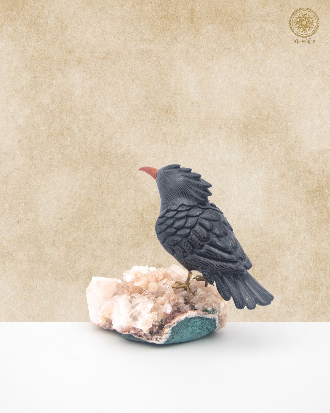 The Hand-Carved Kasauti Sparrow Statue is a pure masterpiece and would suit very well in your home decor. This shows a sparrow on a beautiful white quartz crystal base carved from pure fine Kasauti stone. The sculpture's details are so beautifully crafted that it must have room in every home since it improves the decor of any living area. This one makes a eye-catcher tabletop centerpiece or even shelf decor, it adds nature along with traditionalism into the modern interiors. Keep it in your living room, office, or bedroom, it would also work as a good gift item for art lovers, bird enthusiasts, or anyone who could appreciate a fine piece of sculpture. This Kasauti Sparrow Statue's natural stone polish and craftsmanship give it an age-old appeal and artistry that makes it ideal for bringing a little beauty and coziness into any space. Bring this beautiful item into your home to honor the spirit of Indian handicrafts.