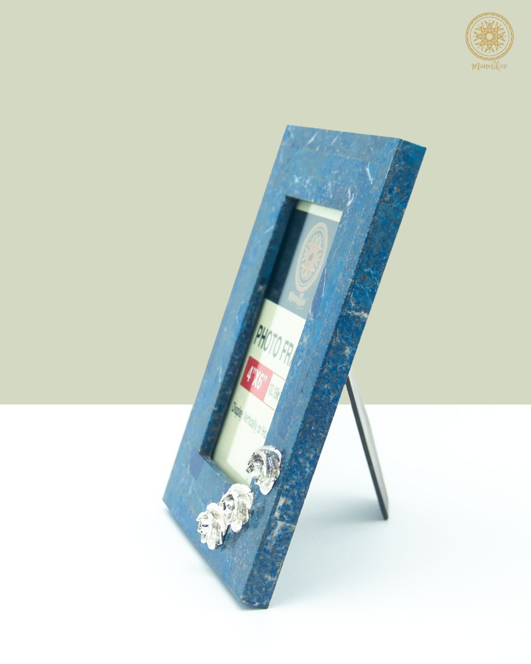 Blauer Lapislazuli-Bilderrahmen | Verziert mit silberner Rose