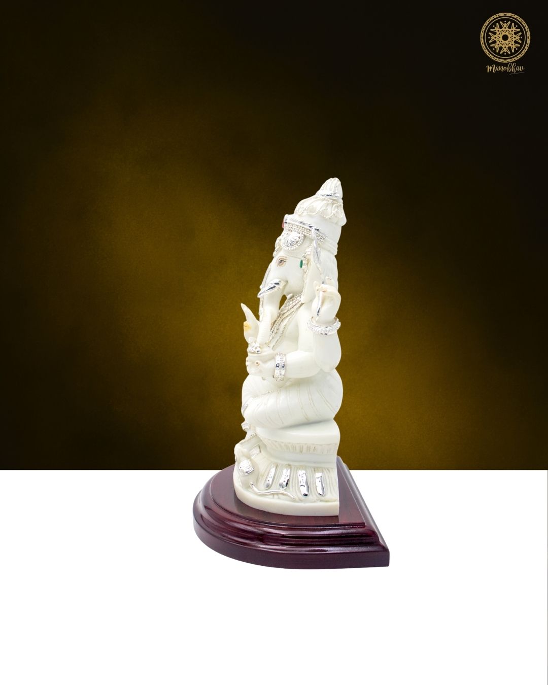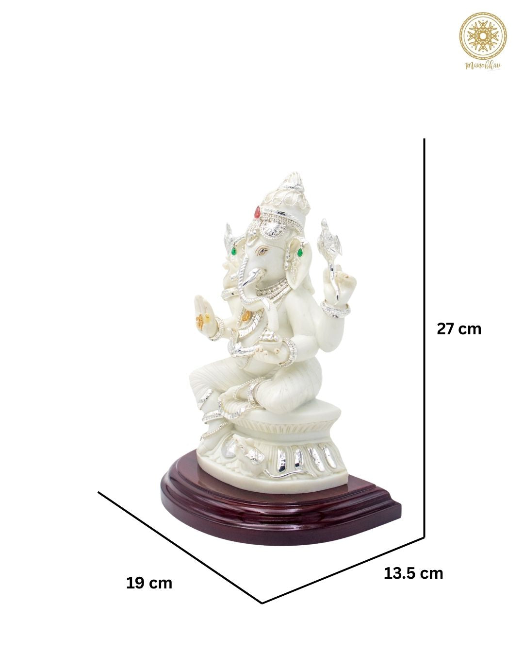 Handcrafted Marble Dust Lord Ganesha Idol with Silver-Plated Jewelry