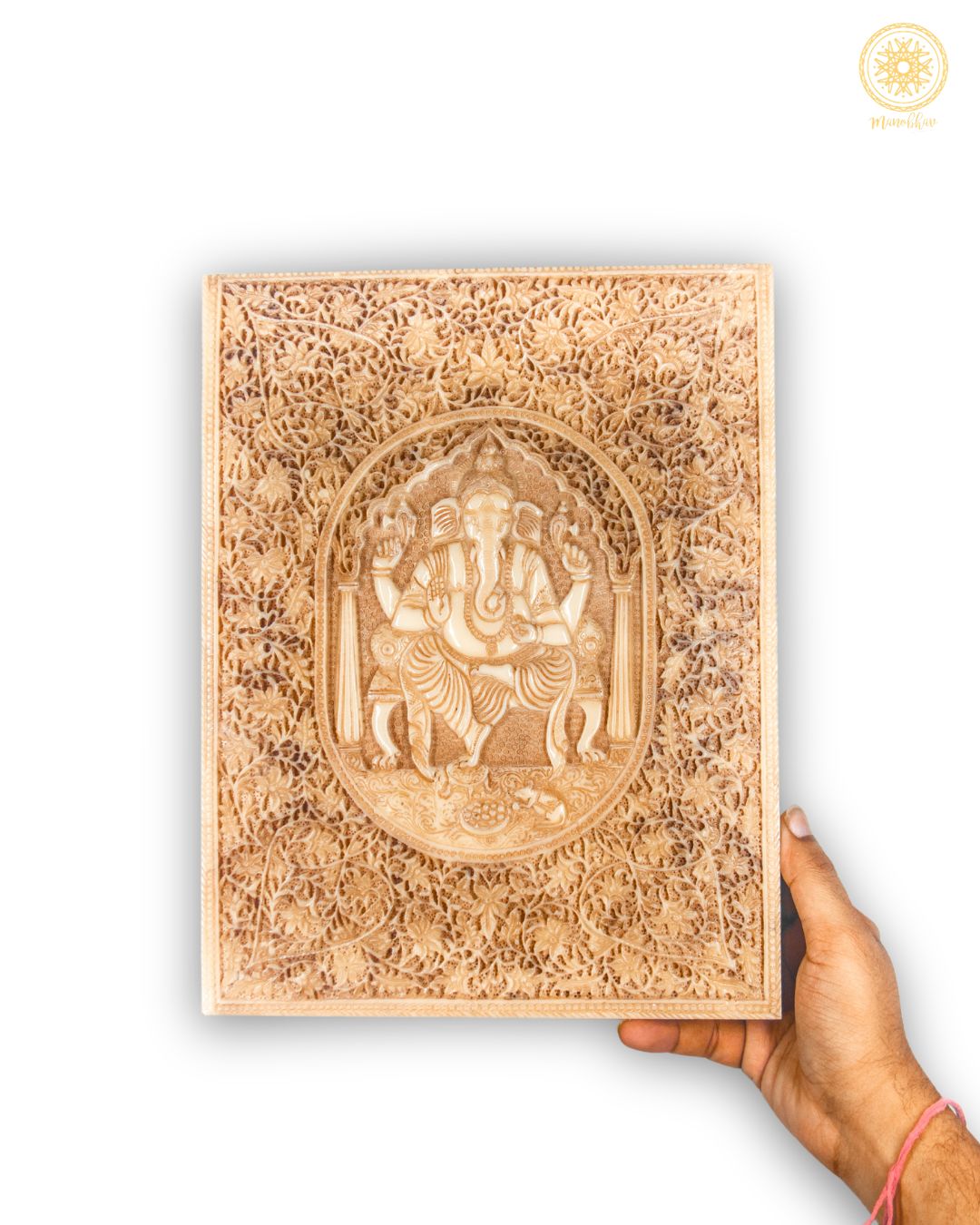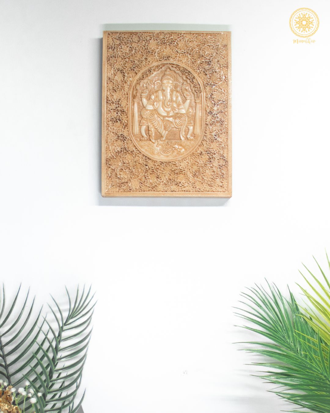 Kaufen Sie handgeschnitzte Lord Ganesha Wanddekoration, hinduistische Gottesskulptur, Ganesha Wandkunst online.
