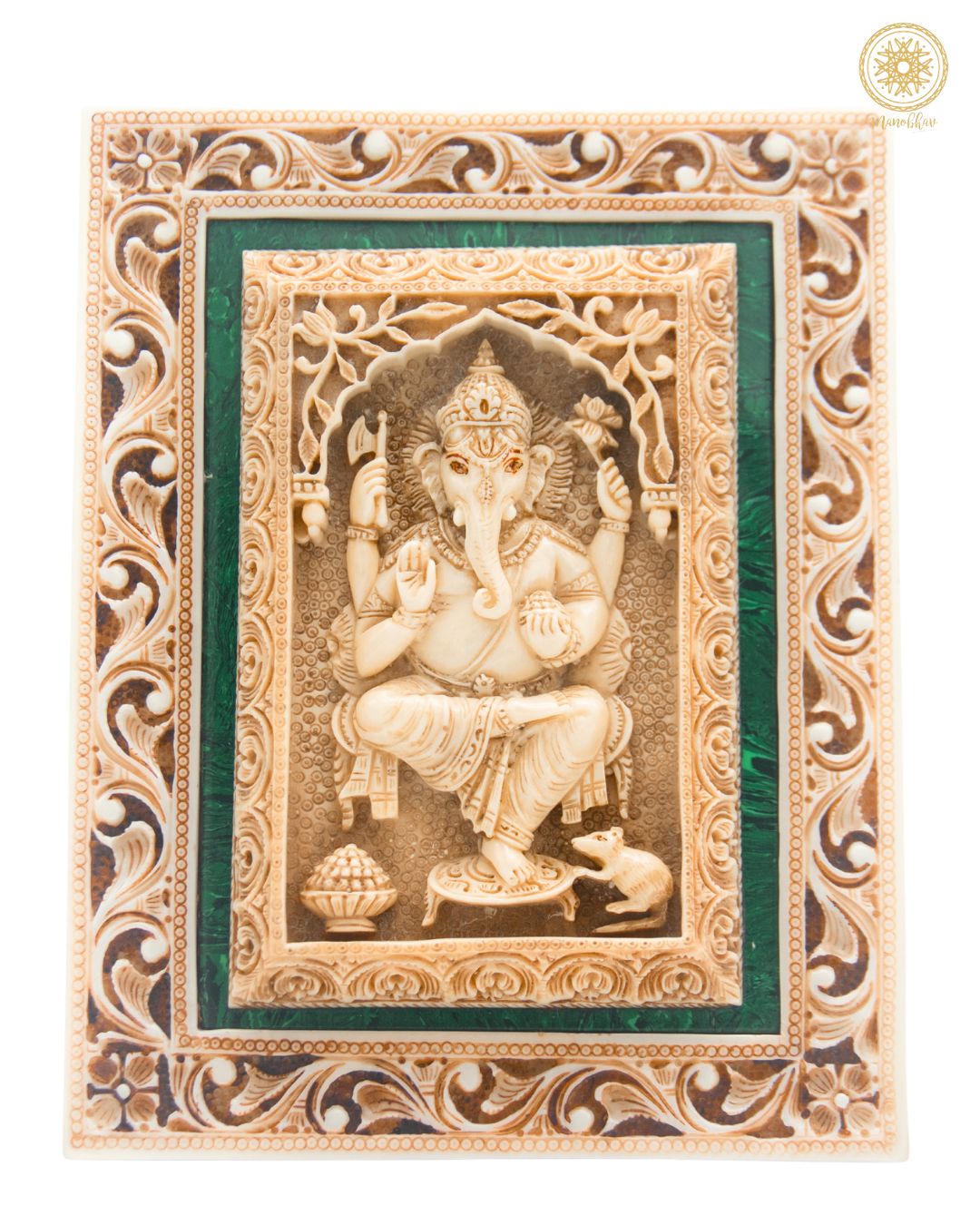 Handgeschnitzter Wandrahmen mit Lord Ganesha | Wanddekoration für Zuhause