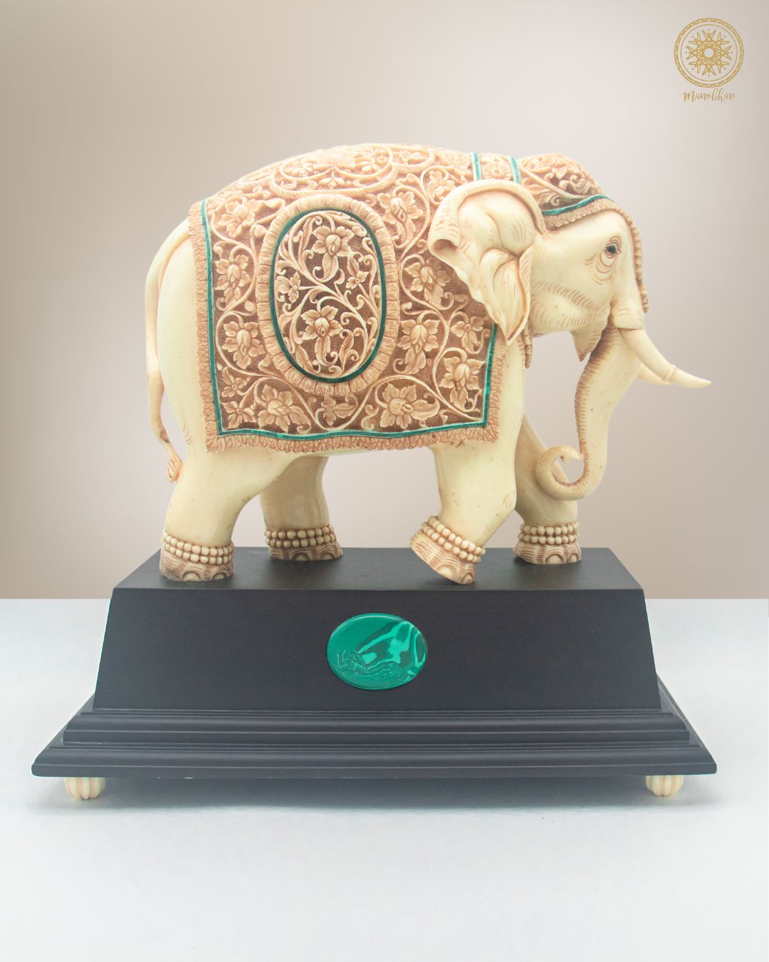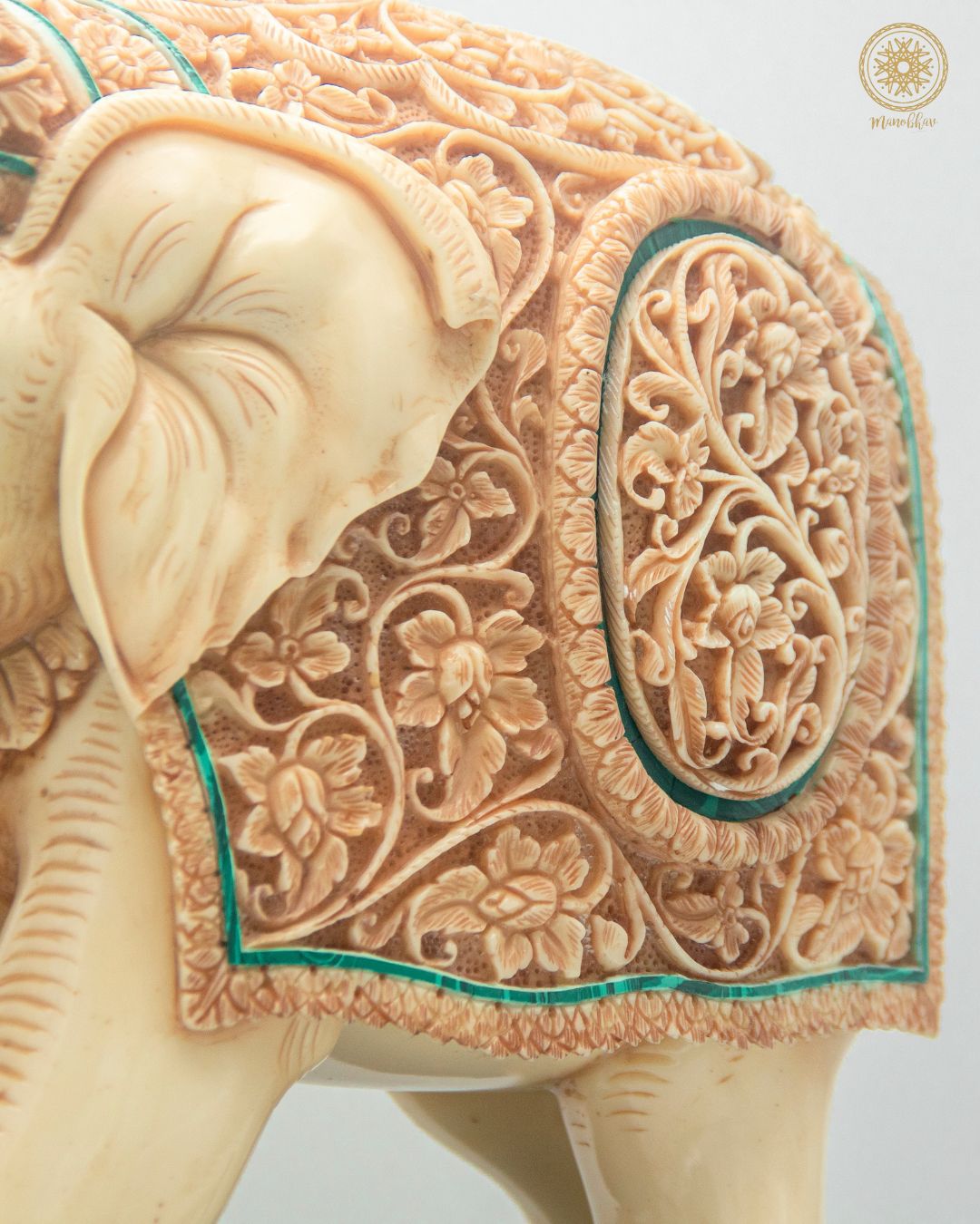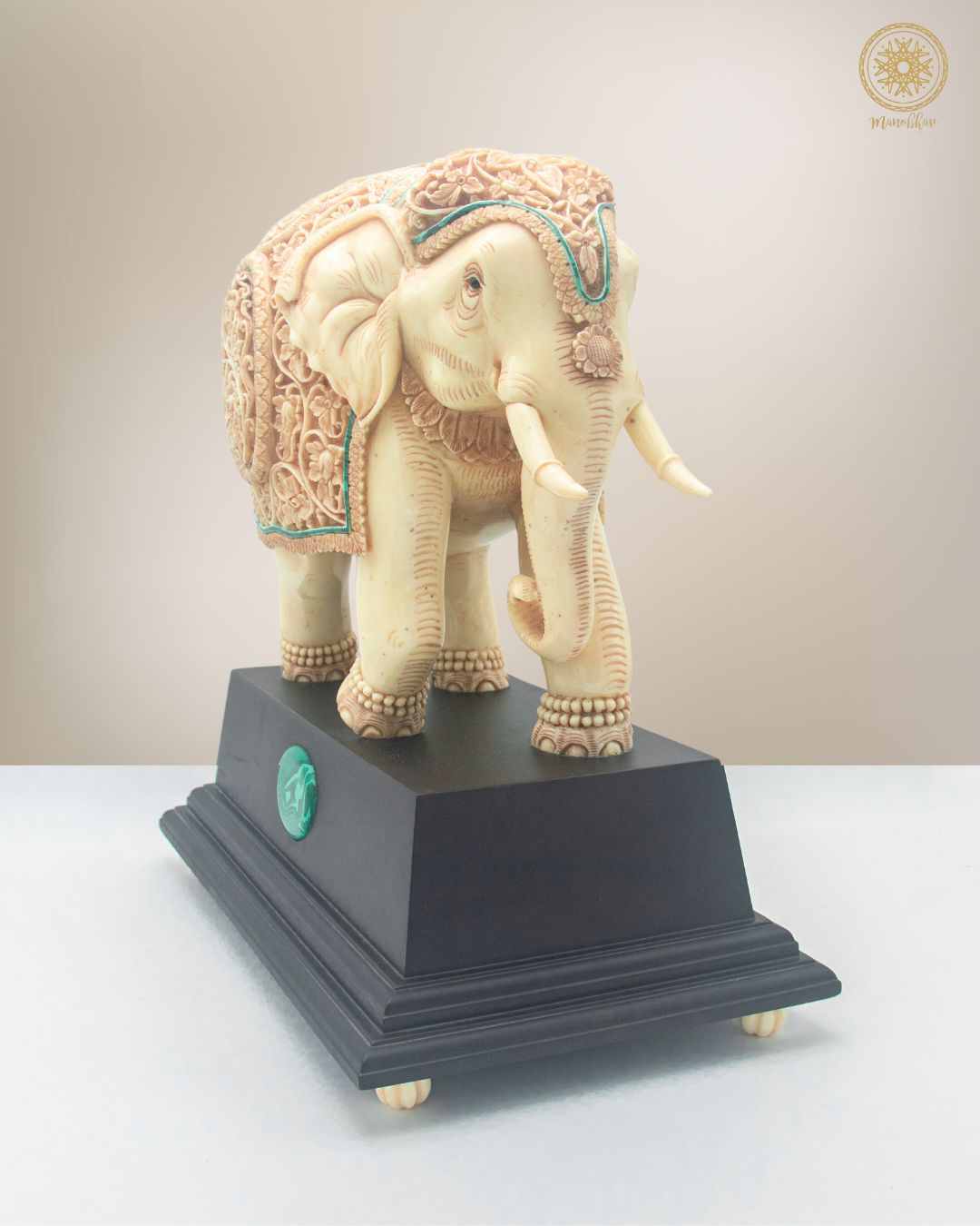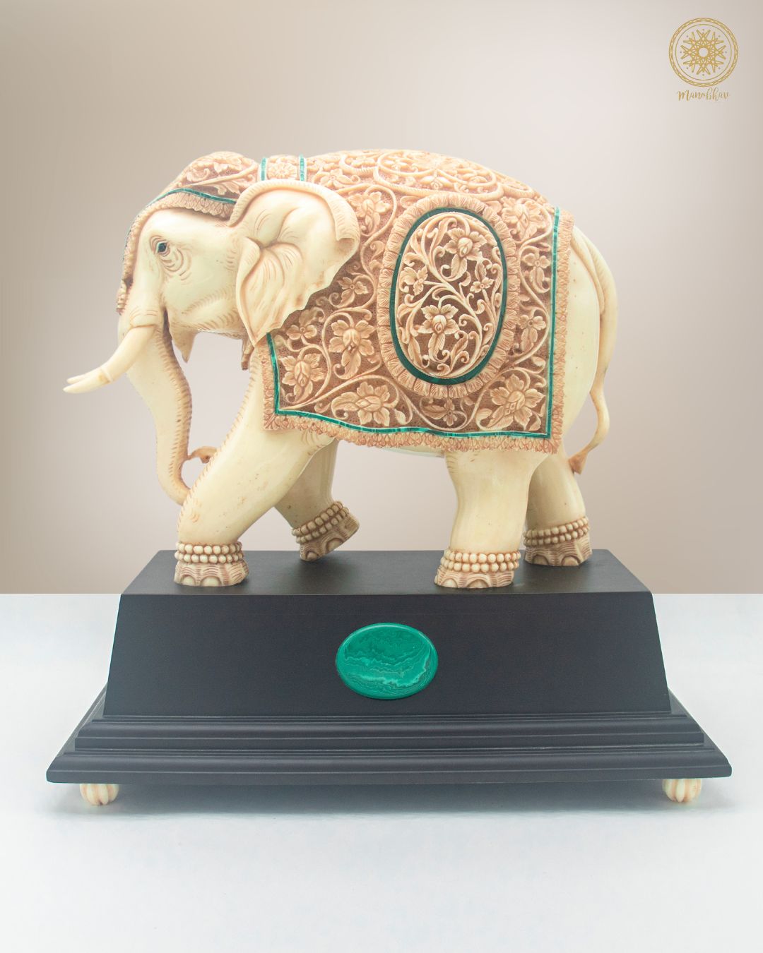 Handgeschnitzte Elefantenstatue aus Kunstharz mit Malachit | Einzigartiges dekoratives Prunkstück für den Tisch