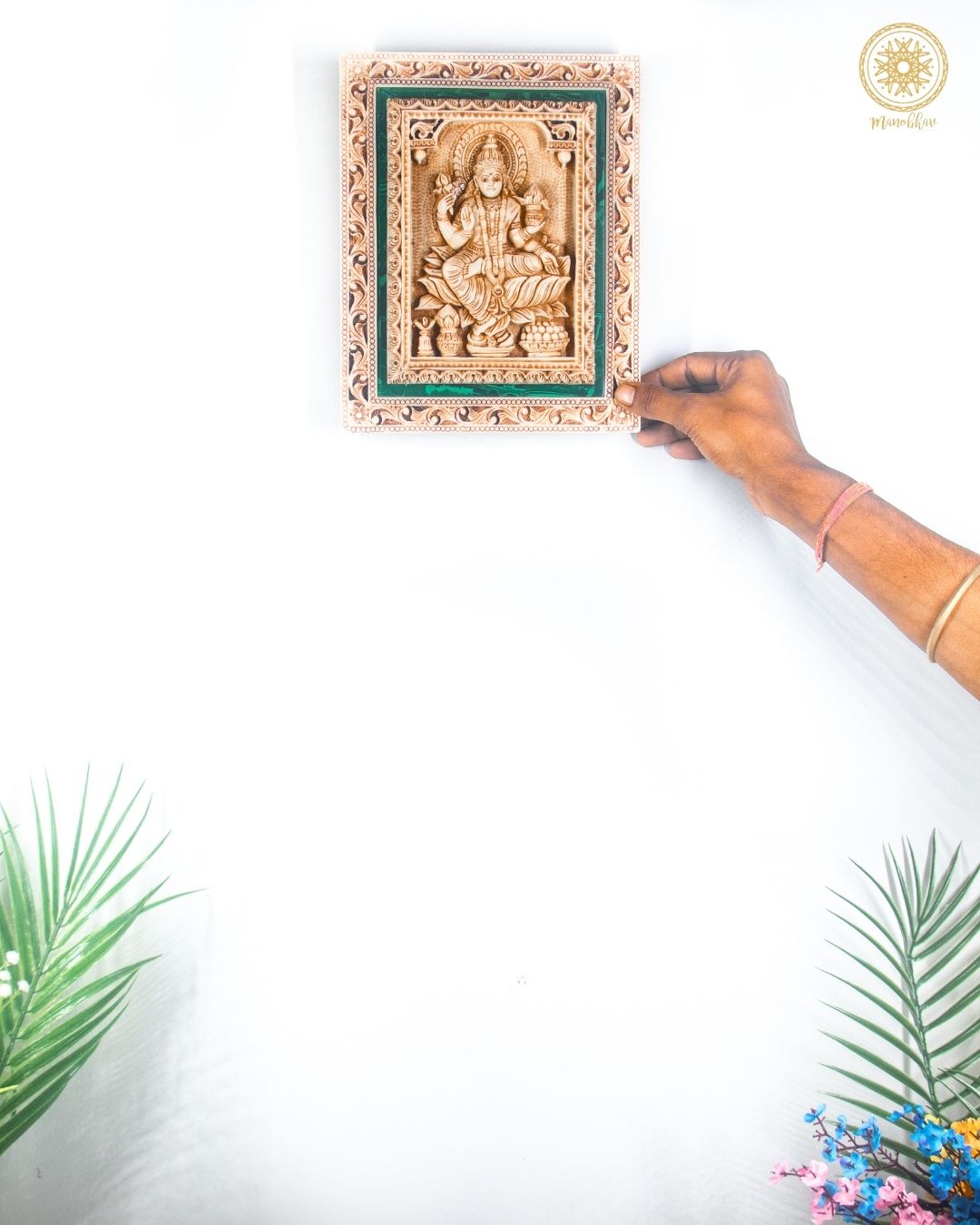 Handgefertigter Wandrahmen mit der Göttin Lakshmi | Schöne Wanddekoration für Zuhause