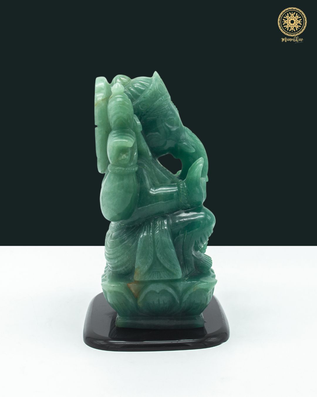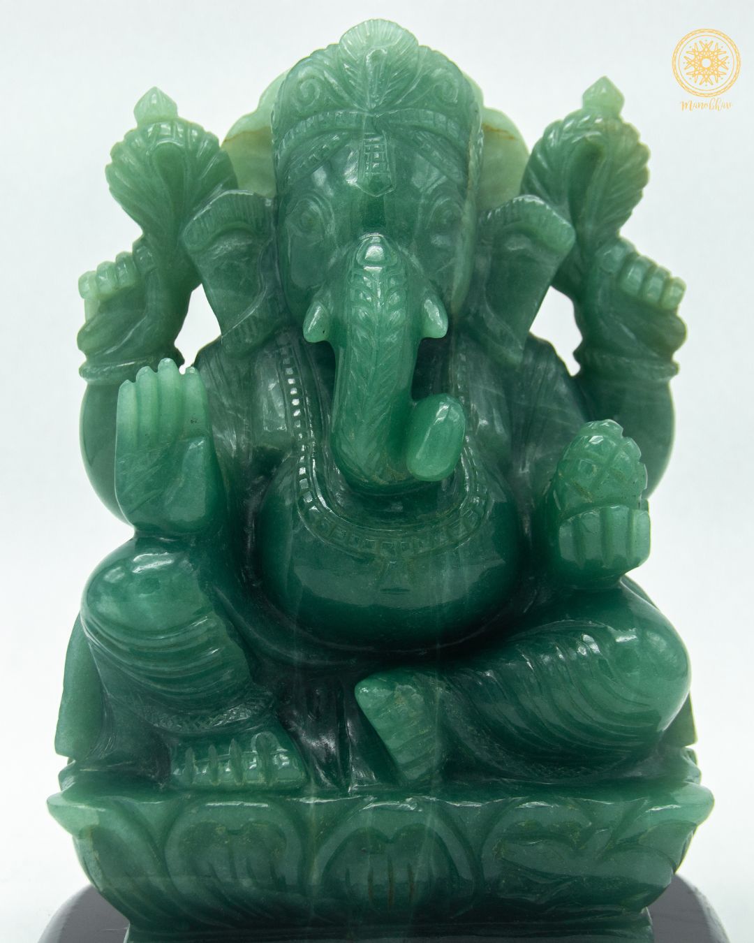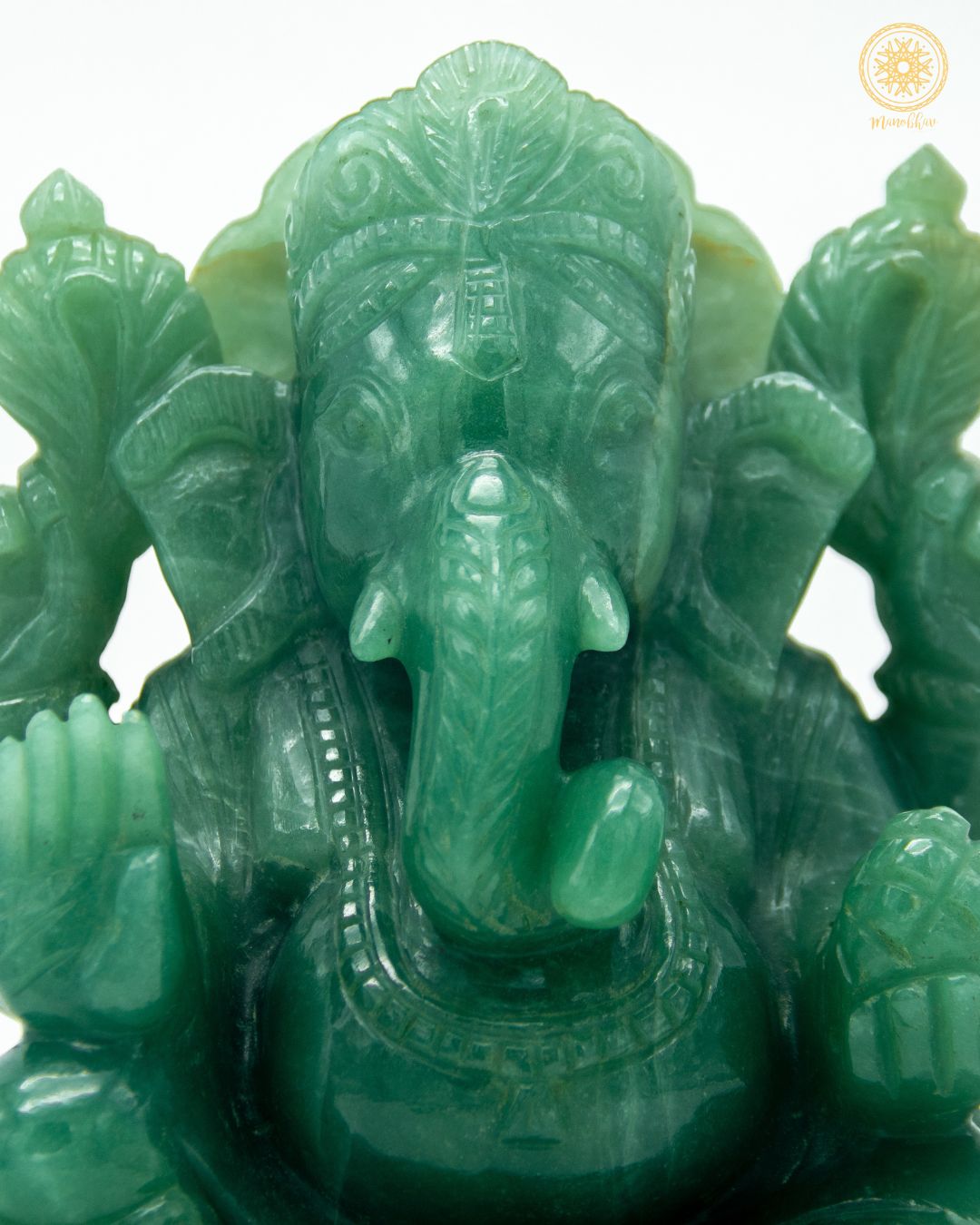 Handgefertigte Statue von Lord Ganesha aus grünem Aventurin | Edelsteinstatue