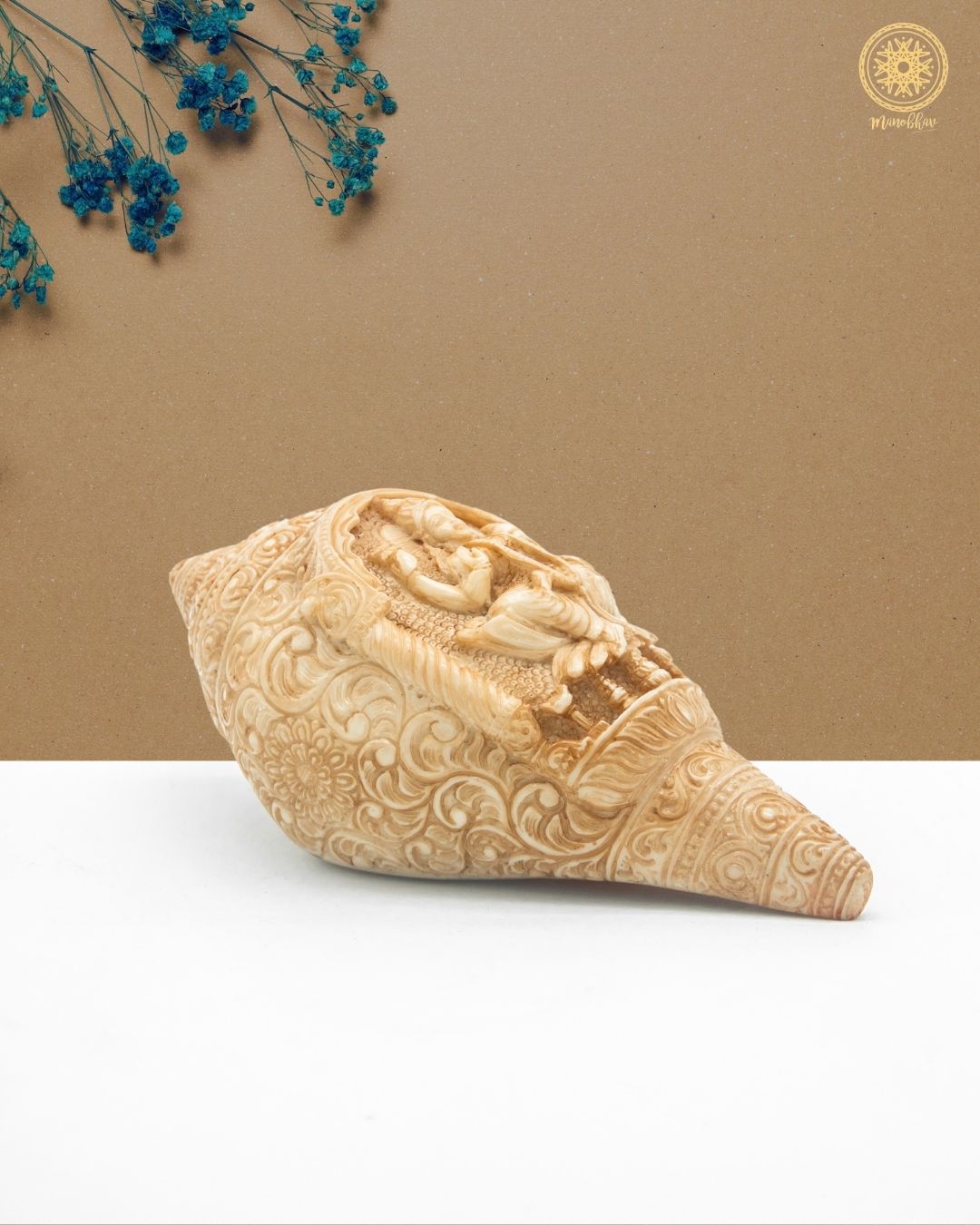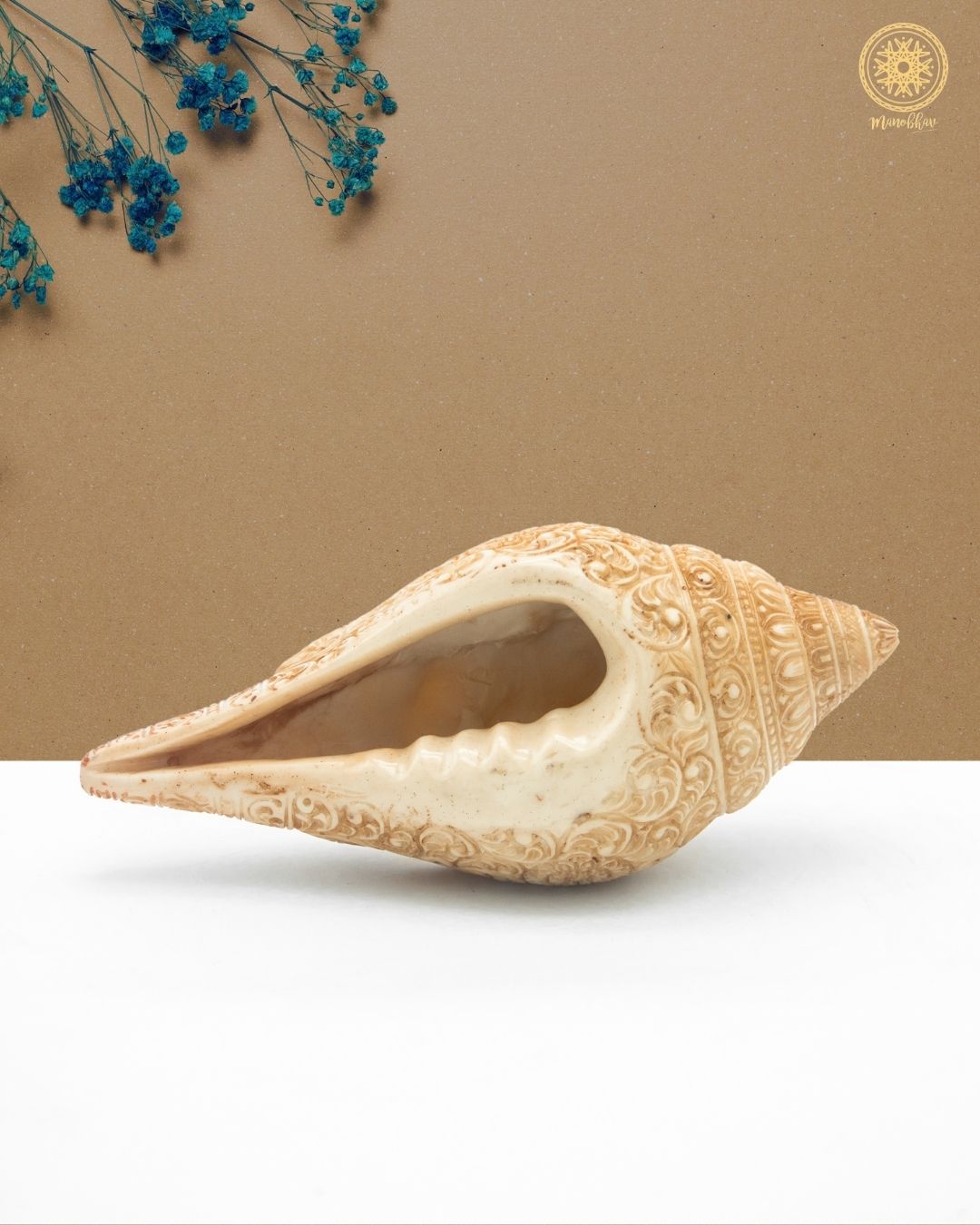 the Conch Shell is made with fine craftsmanship, this beautiful conch shell gives beauty to any place of worship. It is believed to attract good fortune and positive energy, making it an ideal choice for Lakshmi puja, Diwali celebrations, and daily prayers.