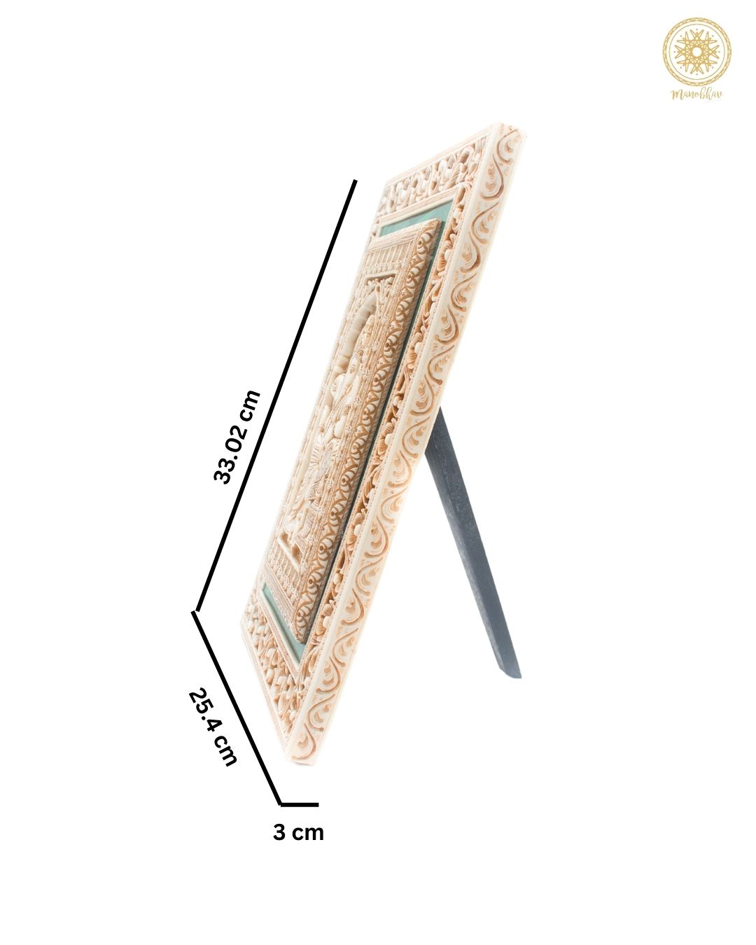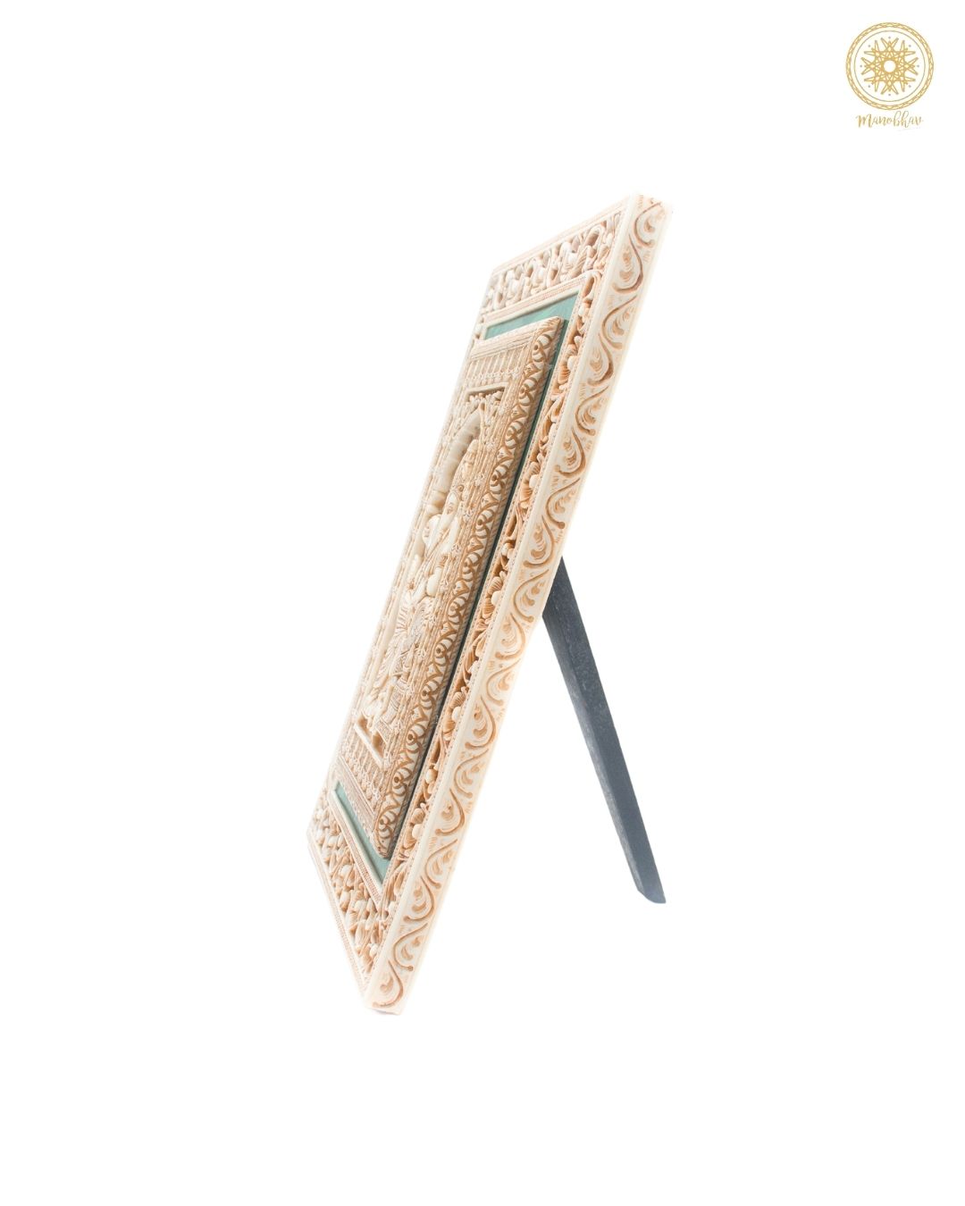 Er ist ideal zur Aufwertung von Pooja-Räumen oder als auffälliges Dekorationsstück in Wohnungen, Büros oder Hotels. Dieser vielseitige Wandbehang von Ganesh ist auch ein sehr einzigartiges und besonderes Geschenk für Anlässe wie Hochzeiten, Jubiläen usw. Jedes Stück wird von erfahrenen Handwerkern gefertigt und in einer edlen Samtbox präsentiert, die seinen Luxus und seine Seltenheit unterstreicht.