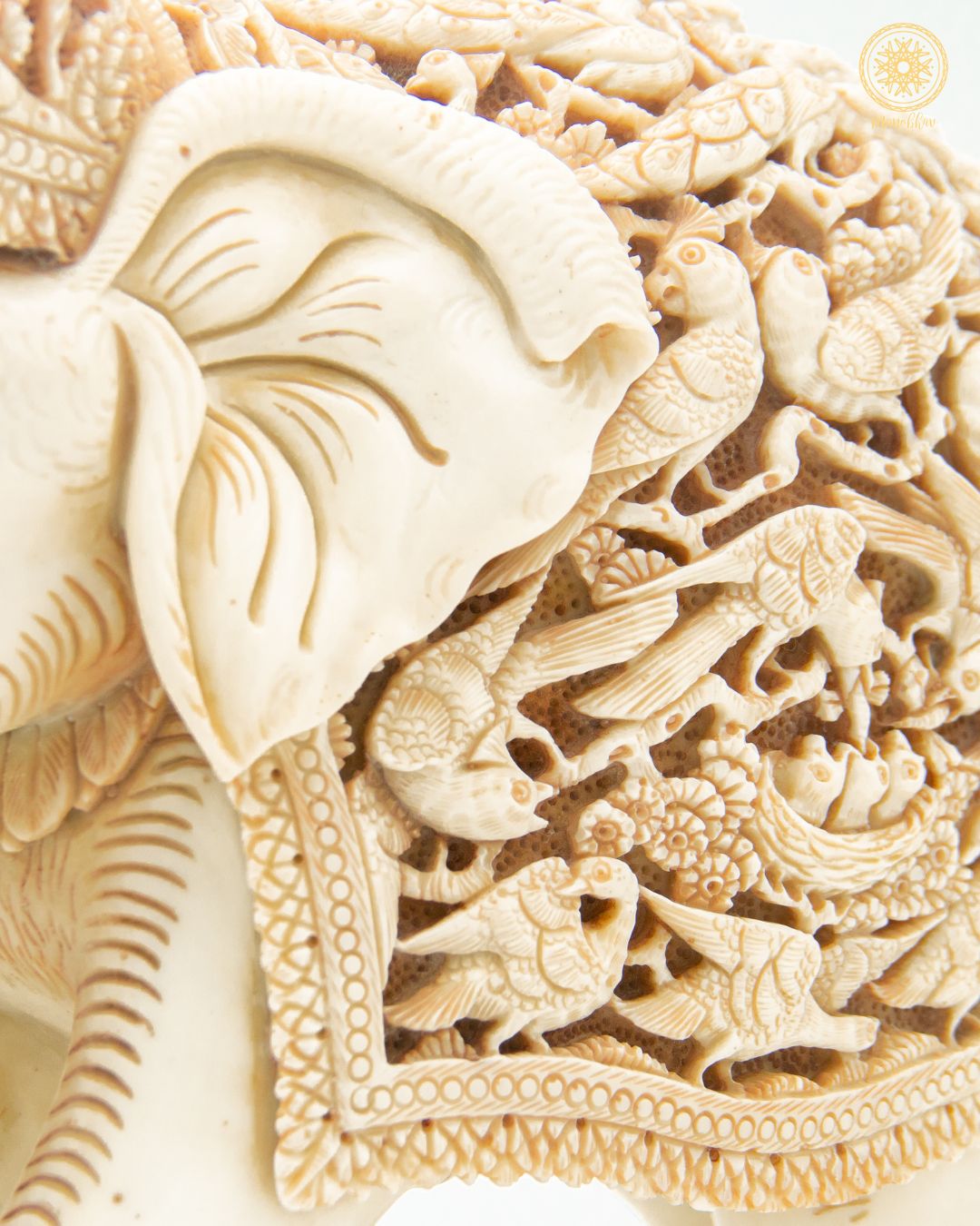 Diese handgeschnitzte Elefantenfigur ist die perfekte Lösung, wenn Sie möchten, dass das Geschenk bedeutungsvoll und unvergesslich ist. Diese indische Elefantenskulptur ist nicht nur eine Dekoration, sondern steht auch symbolisch für Weisheit, Schutz und Glück. Ob Hochzeit, Jahrestag oder Einweihungsfeier – das Geschenk eines dekorativen Elefanten bedeutet, dass viel Überlegung und Sorgfalt in die Sache geflossen sind.