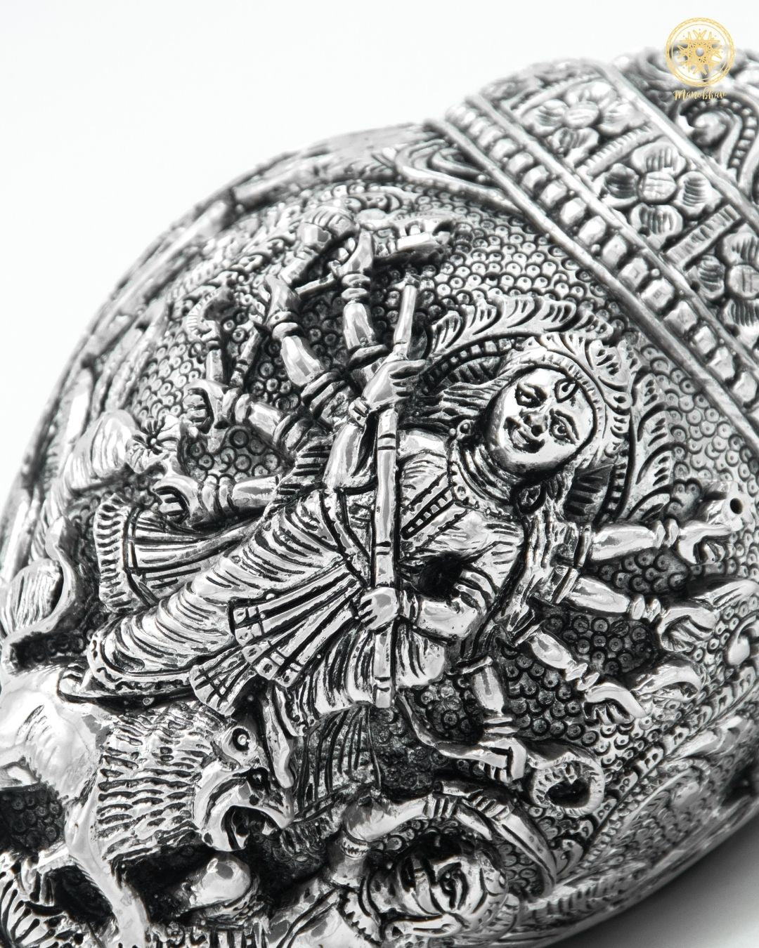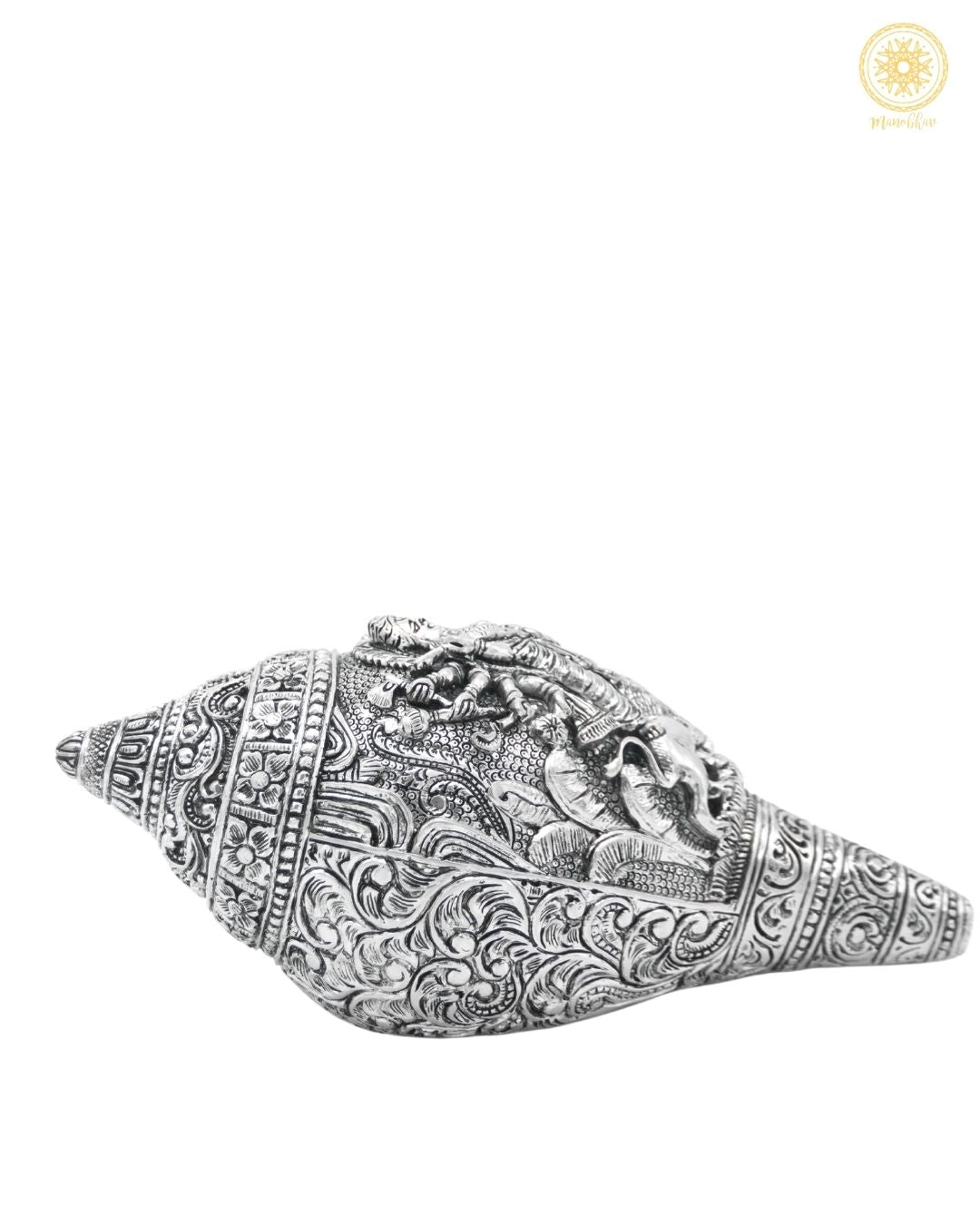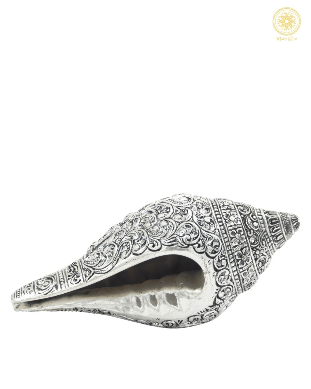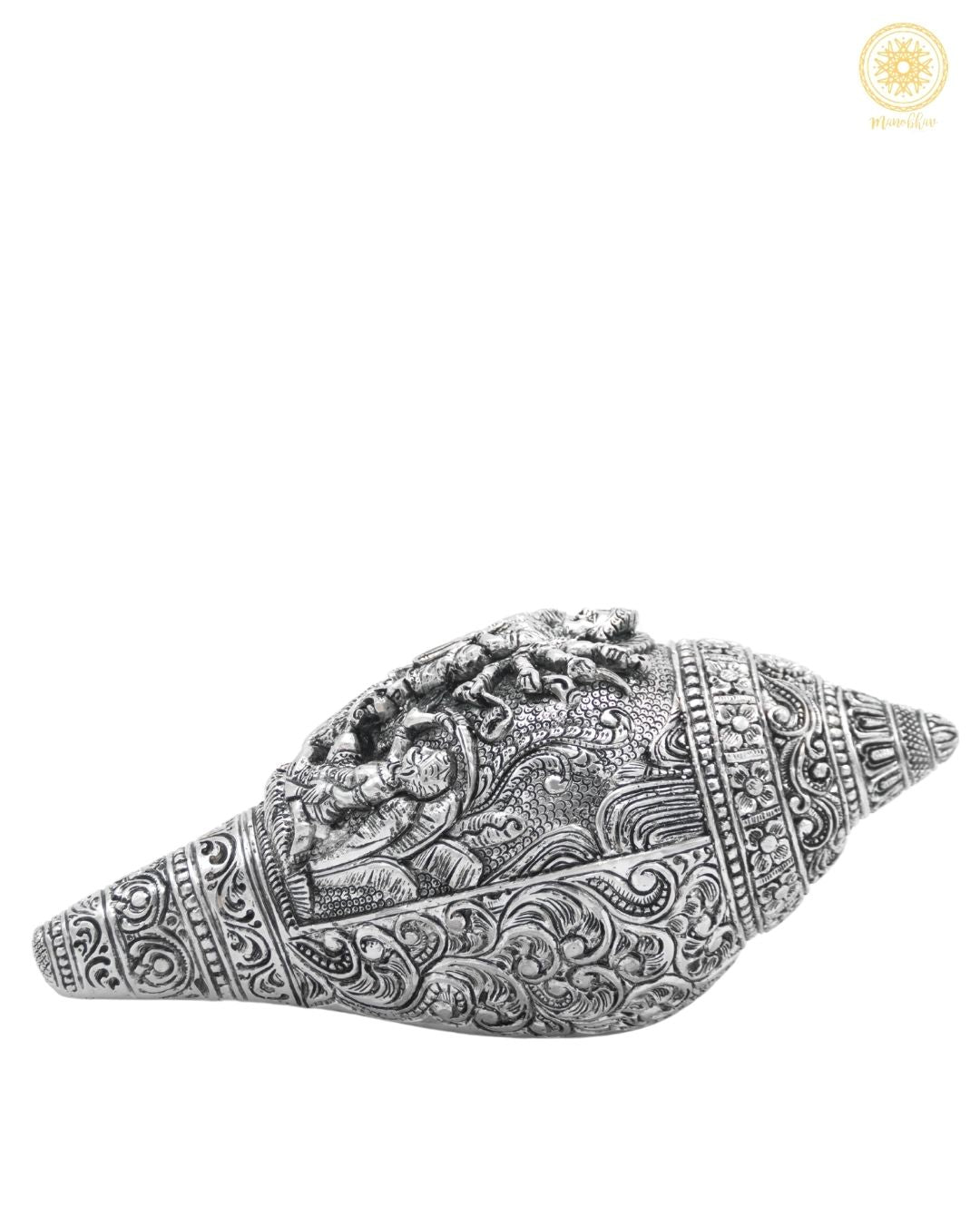 Handgefertigte versilberte Durga-Muschel | Shankh
