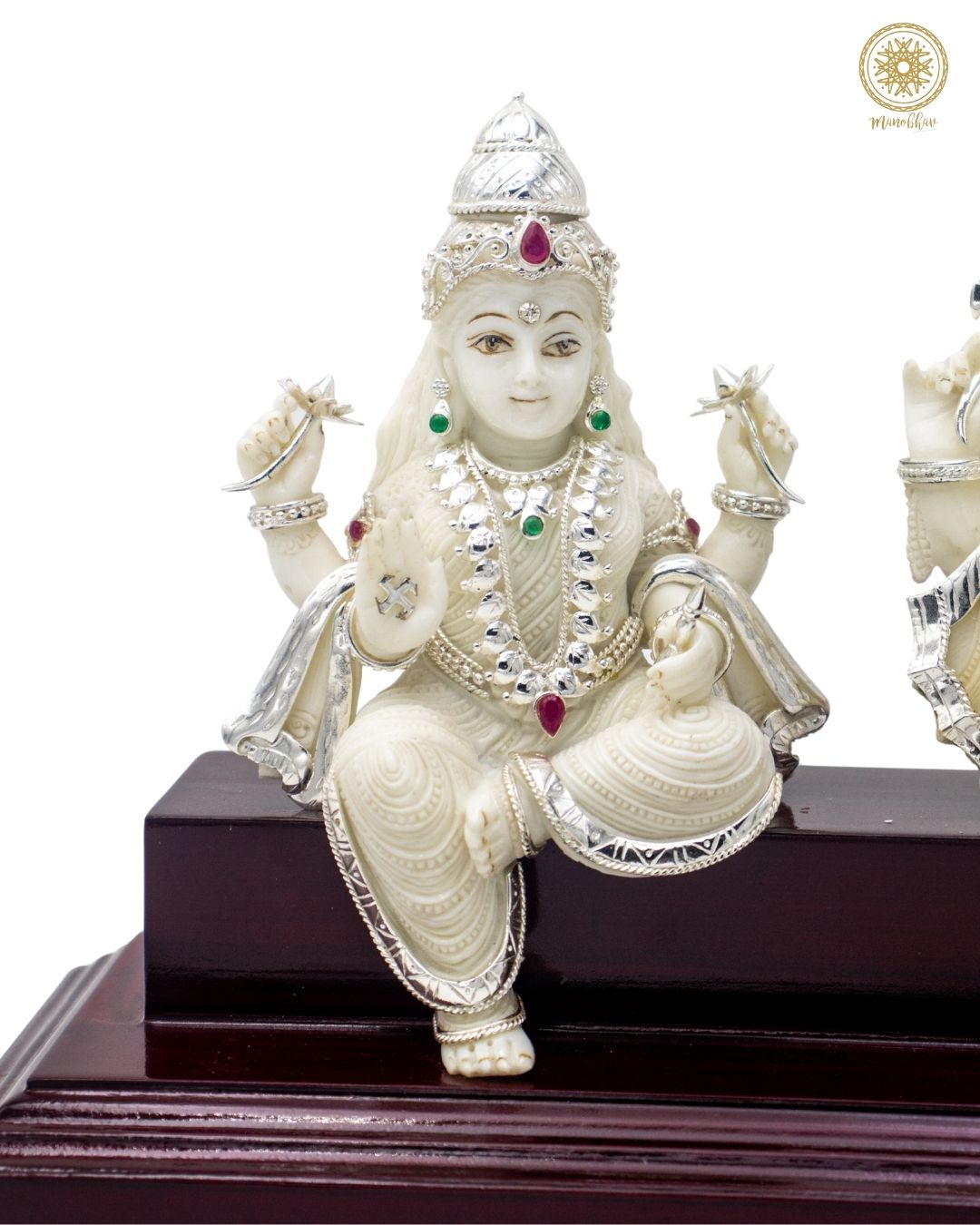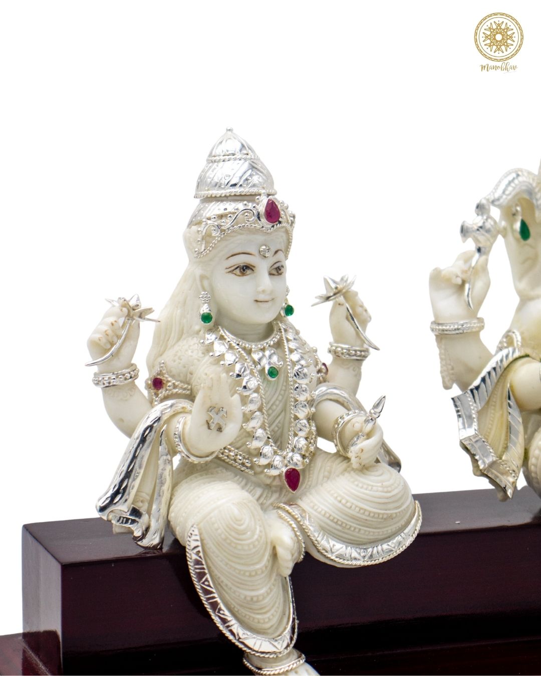 Lakshmi Ganesha Marble Dust Idol Set with Silver-Plated Ornaments
