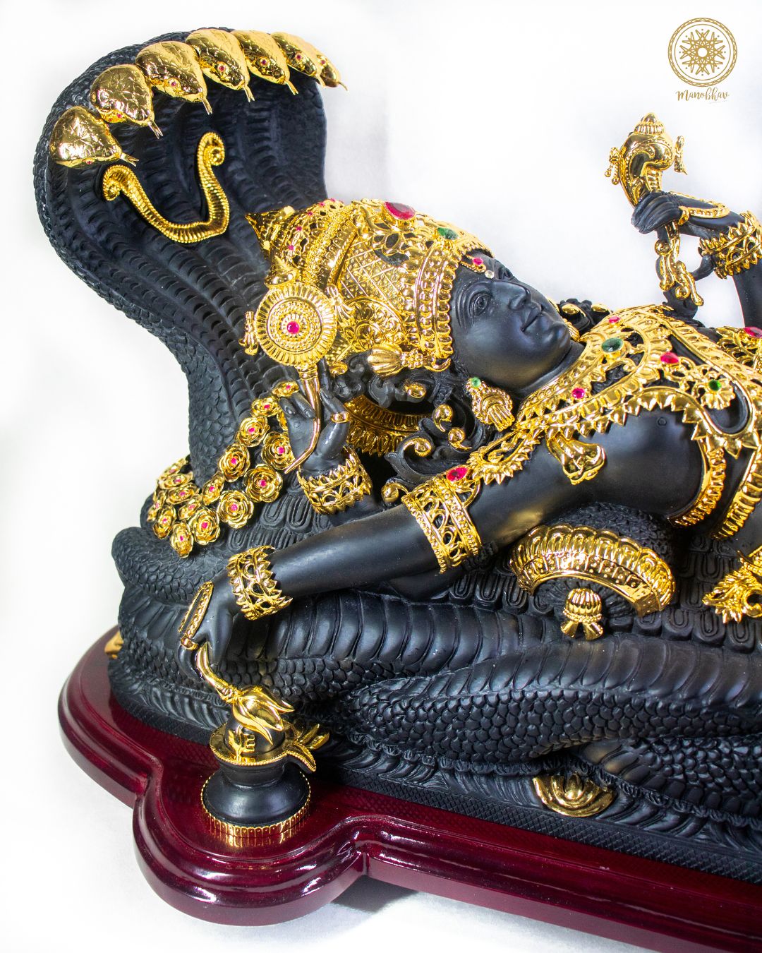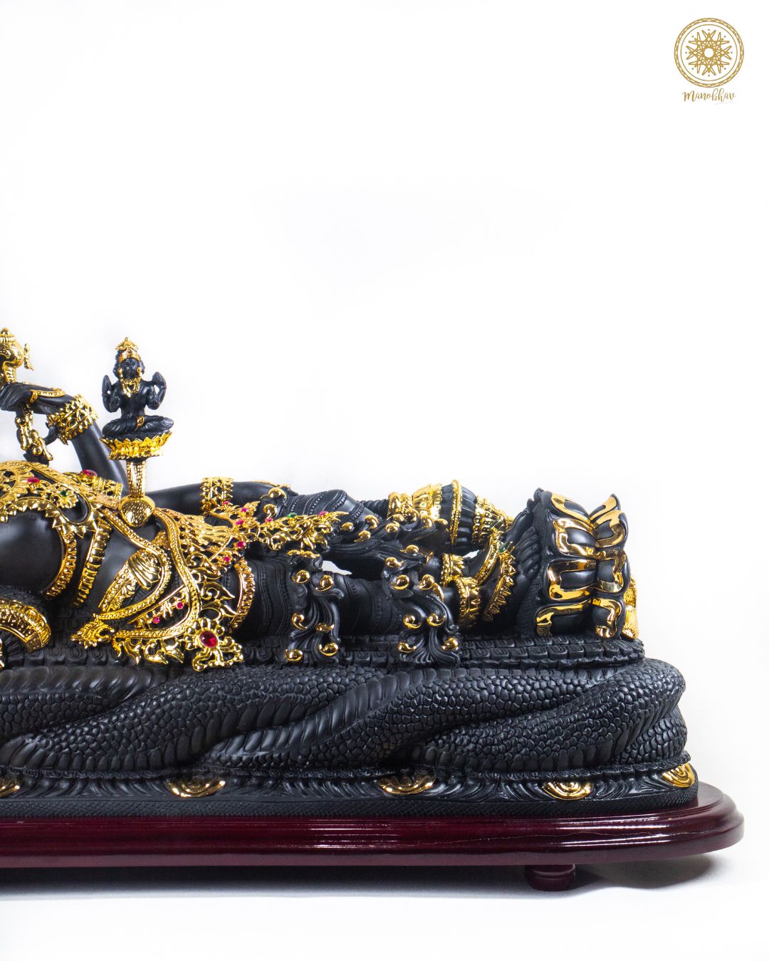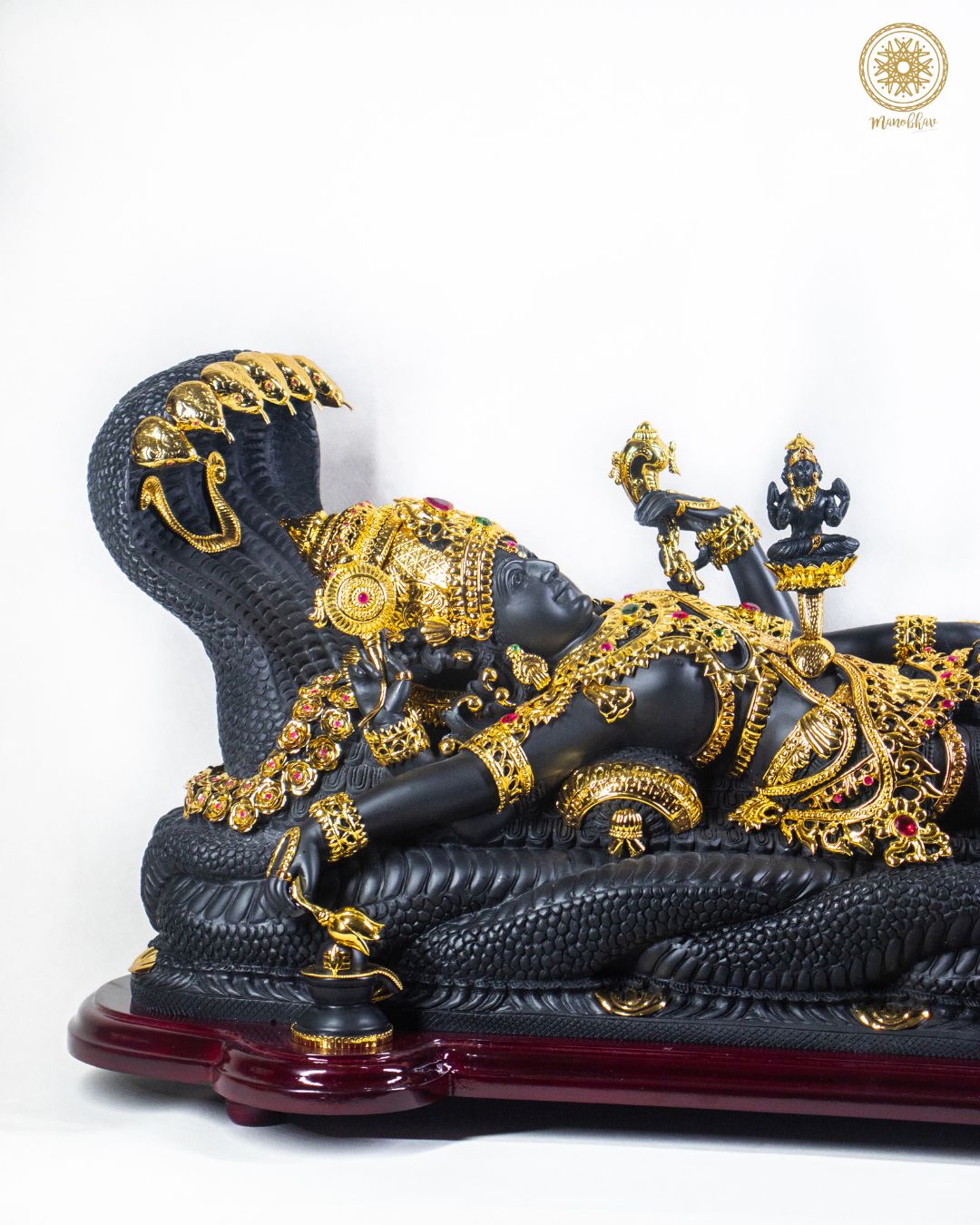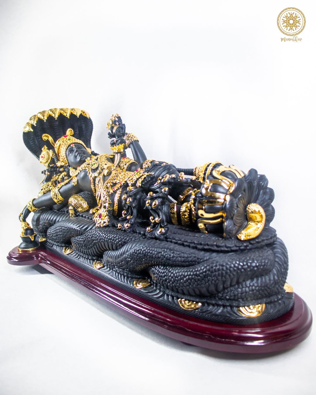Buy Lord Vishnu Anantashayana Idol | Resin Sleeping Statue with Gold-Black Finish Online.