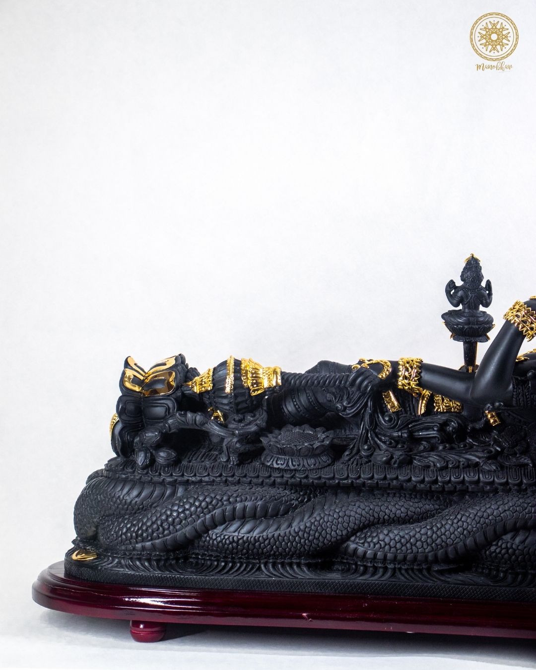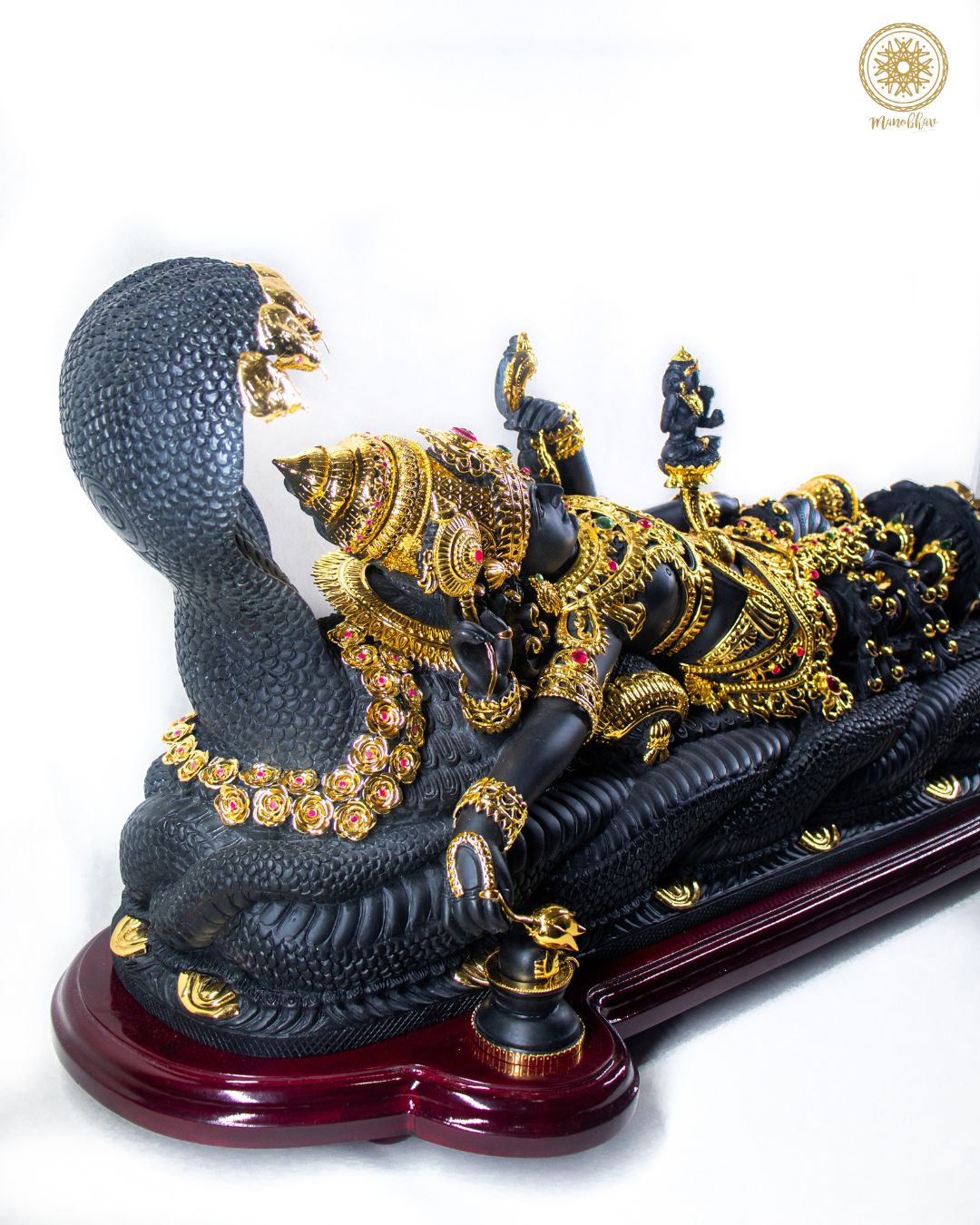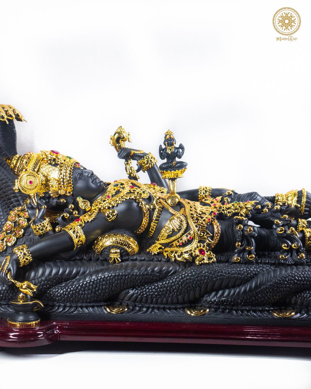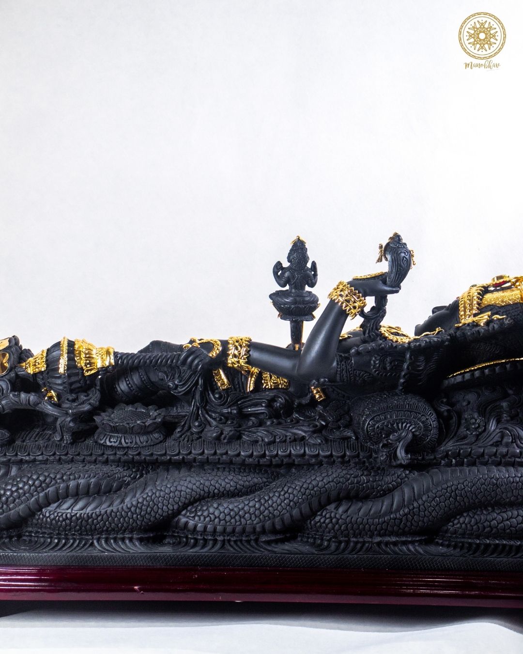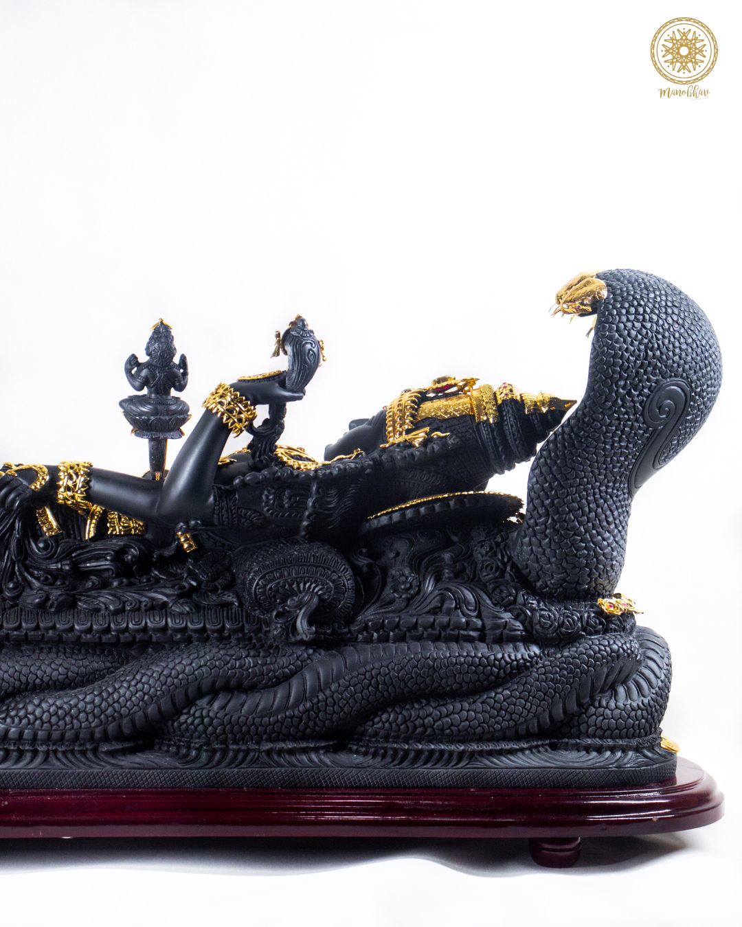 Buy Lord Vishnu Anantashayana Idol | Resin Sleeping Statue with Gold-Black Finish Online.