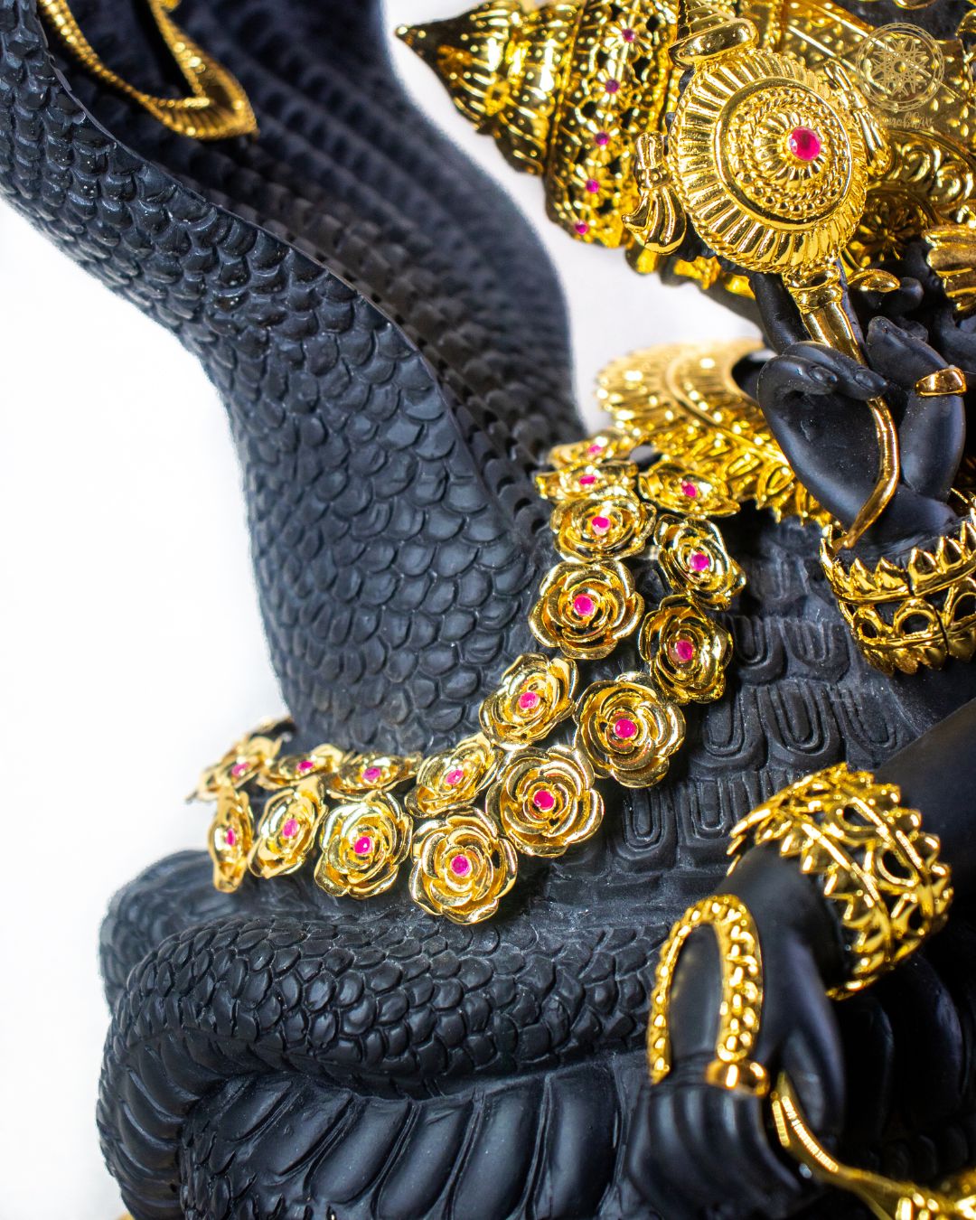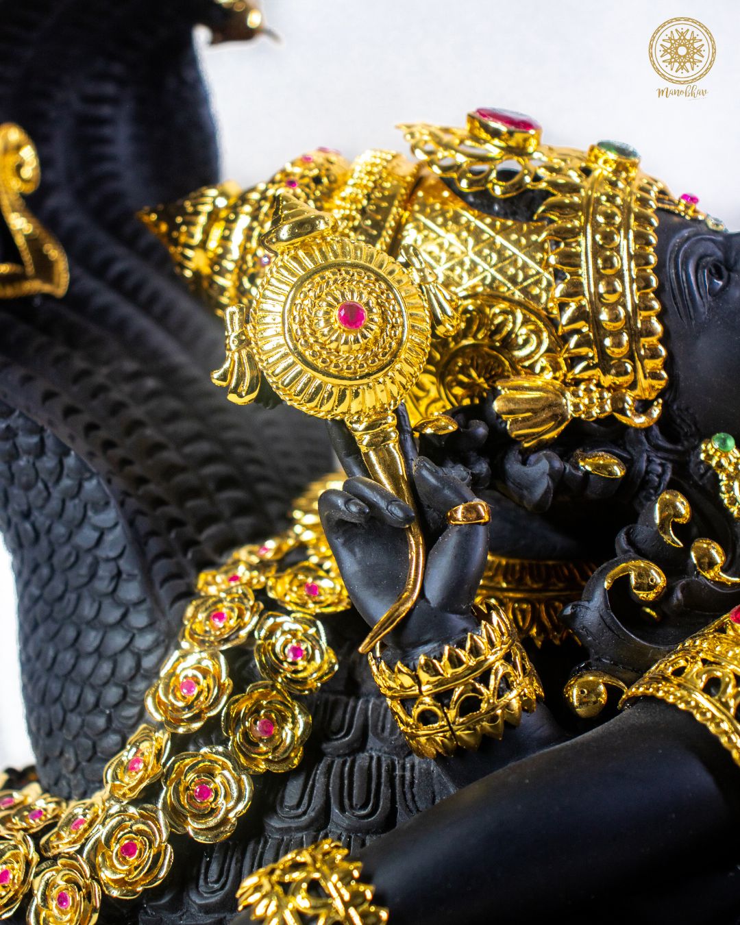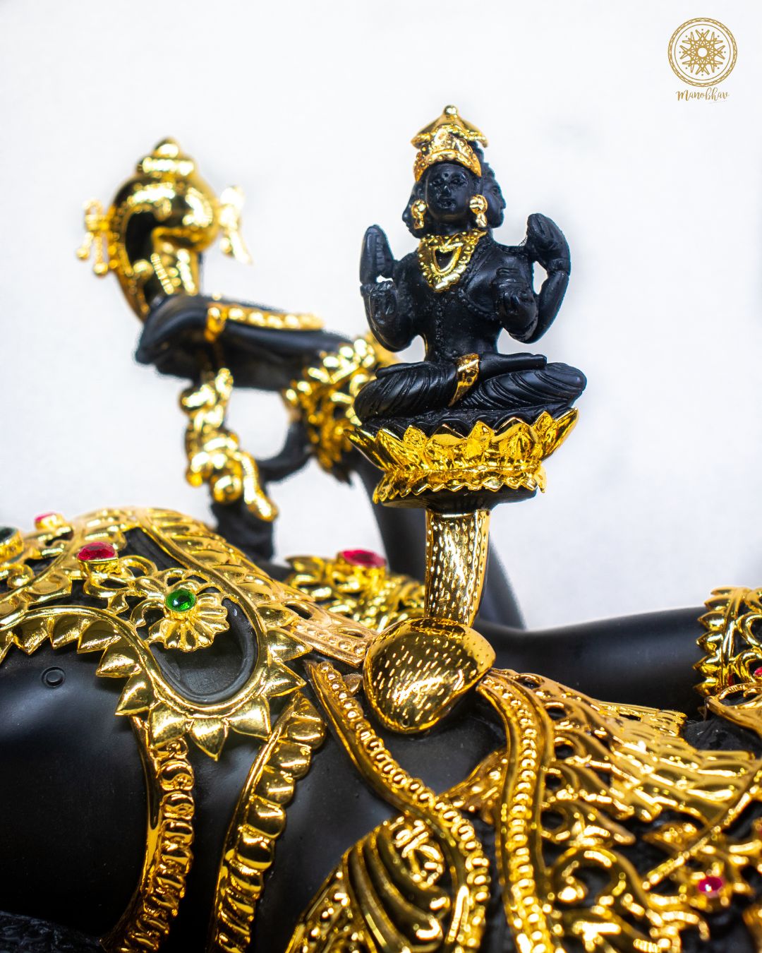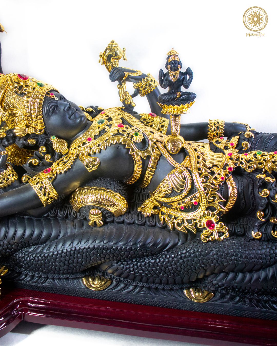Buy Lord Vishnu Anantashayana Idol | Resin Sleeping Statue with Gold-Black Finish Online.