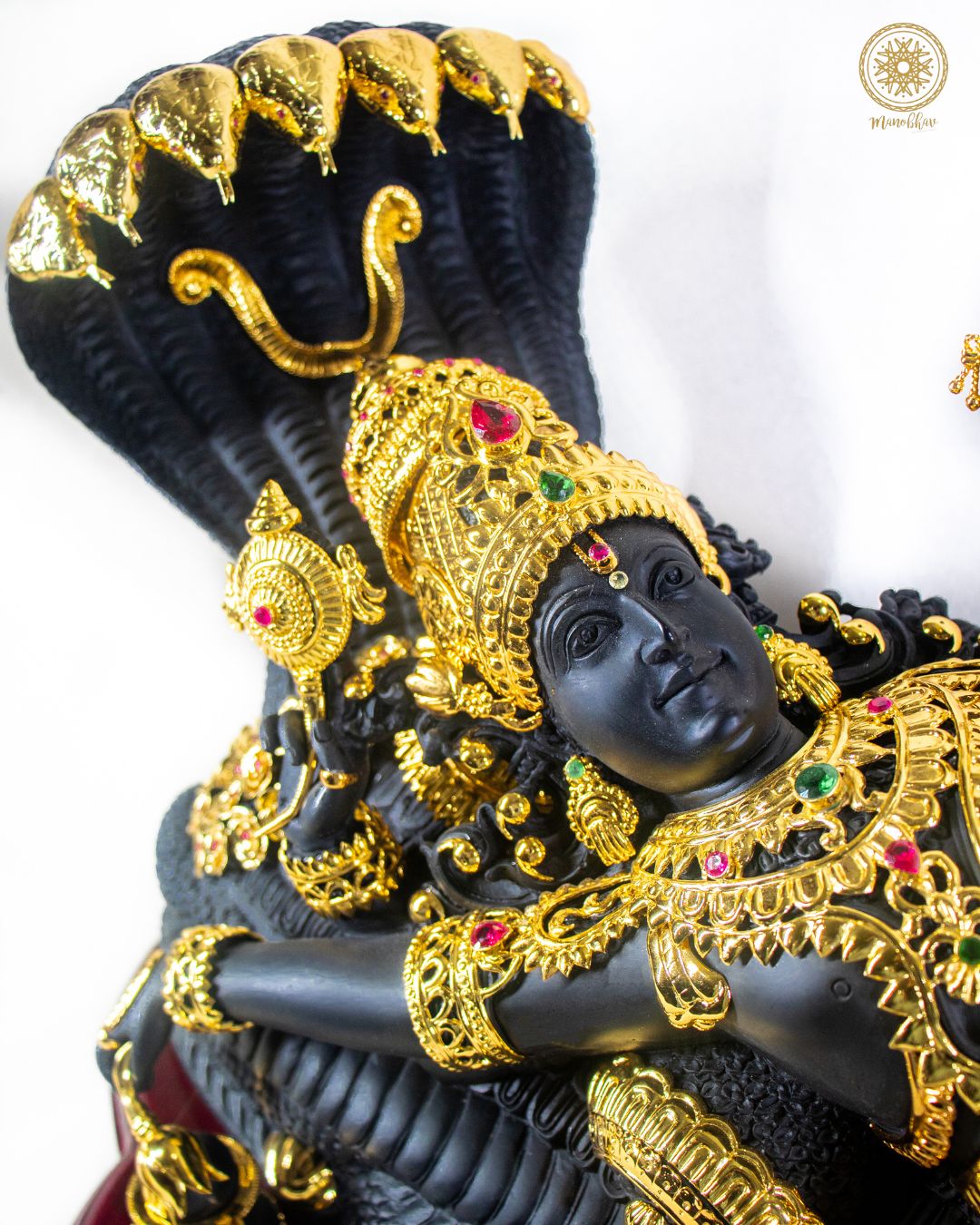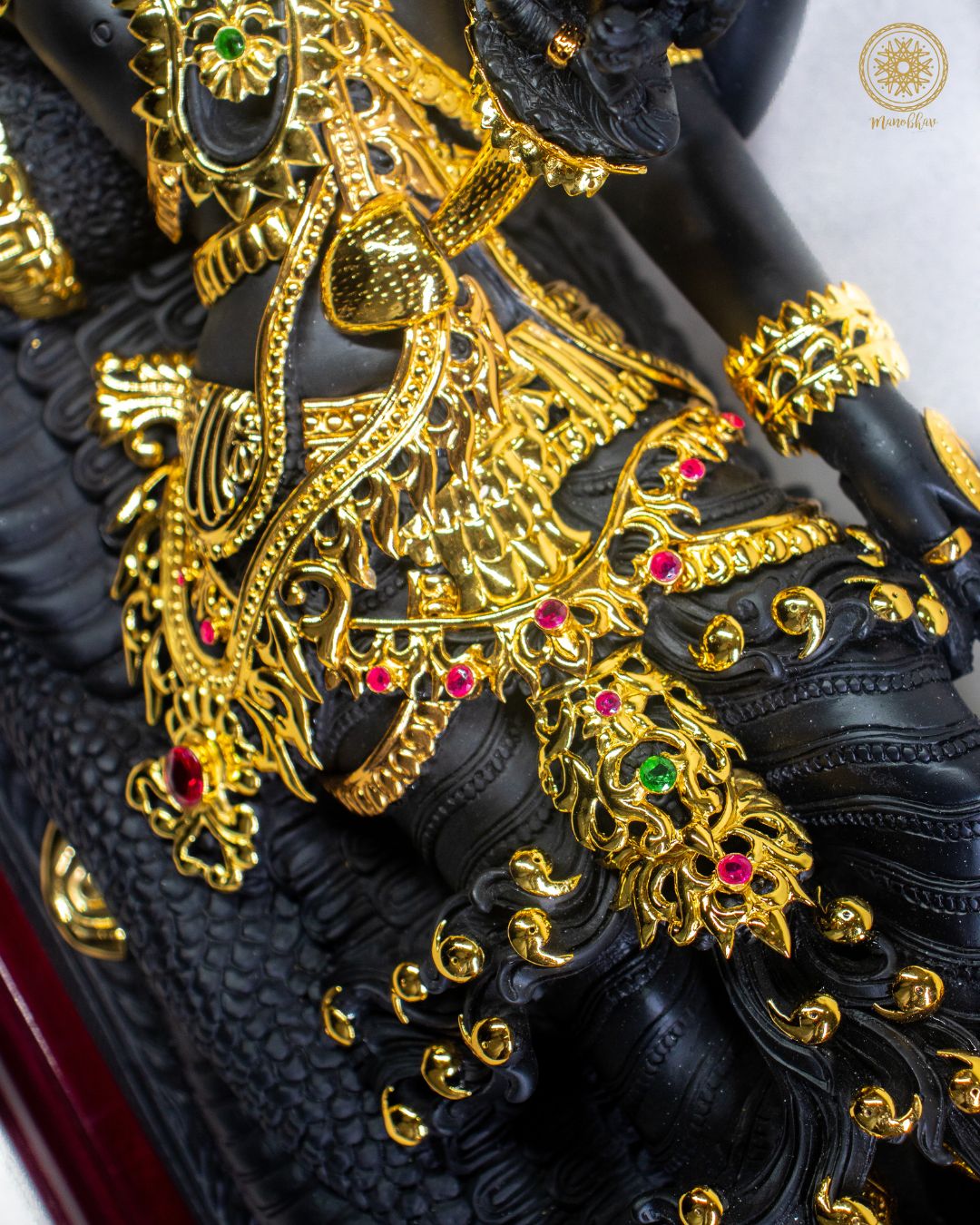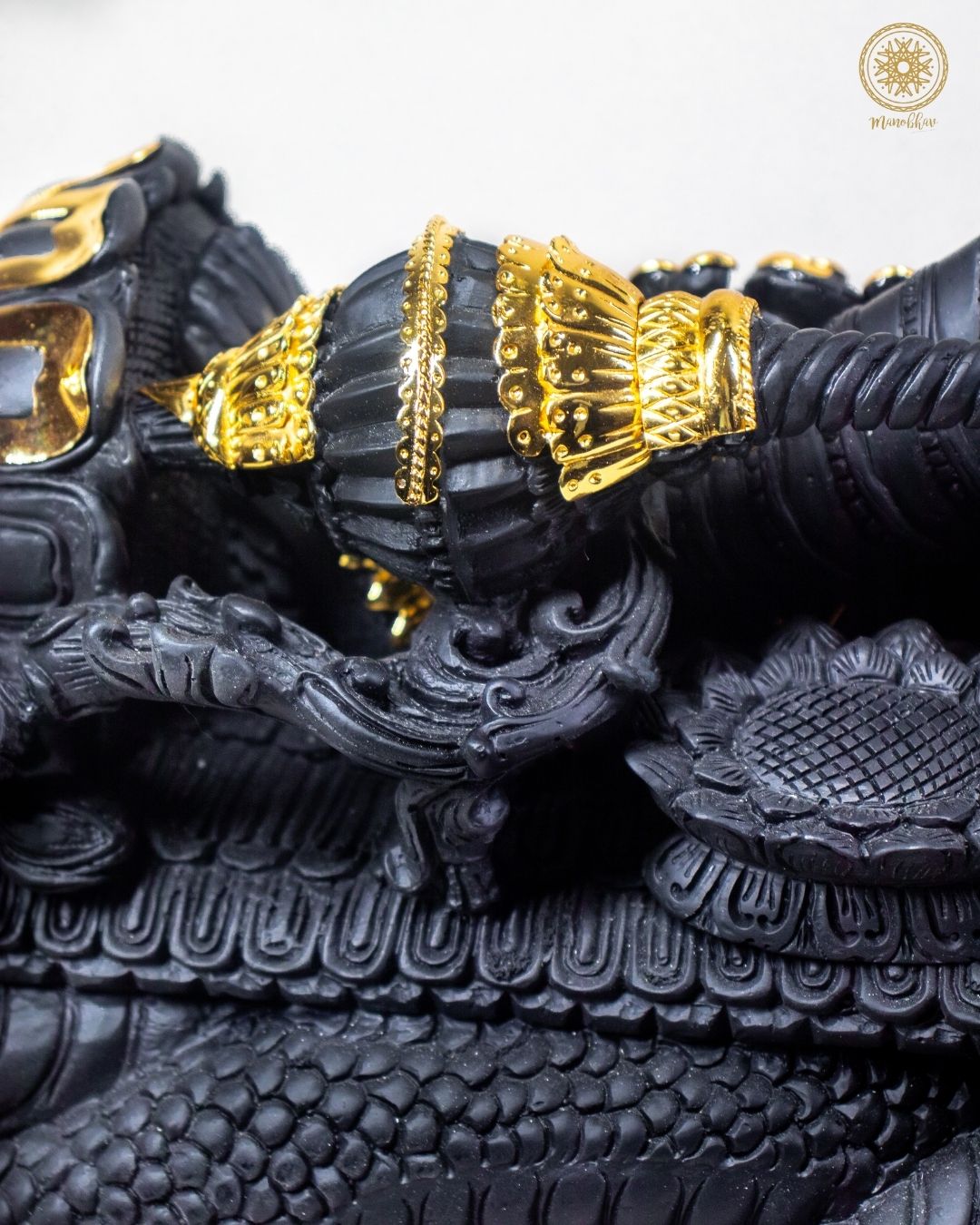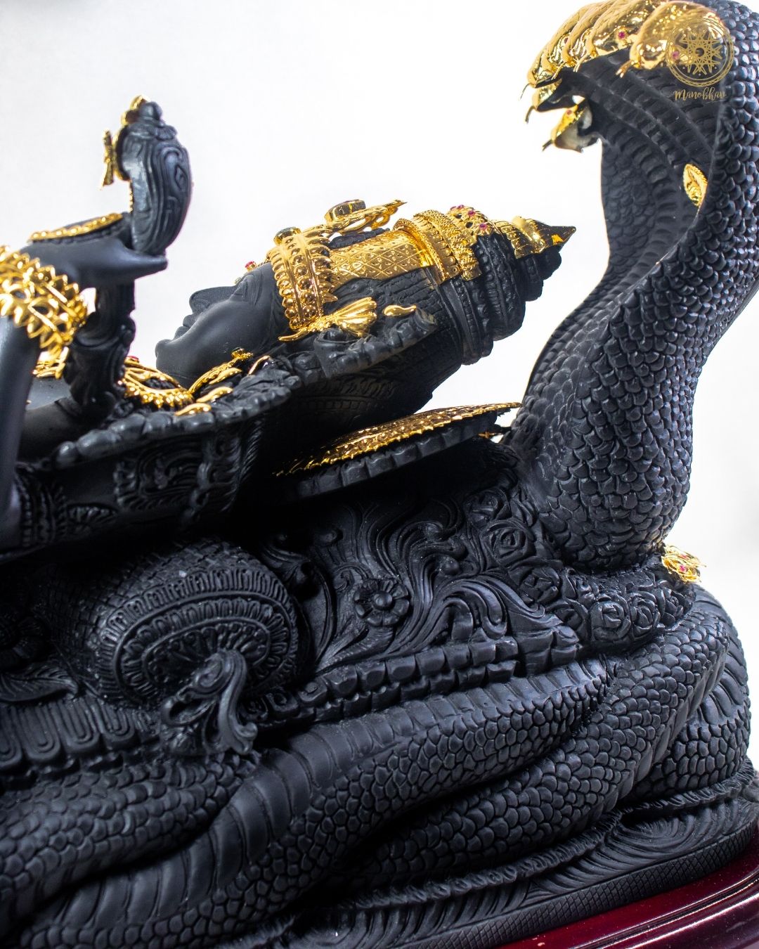 This Lord Vishnu Anantashayana Idol is a beautiful representation of Bhagwan Vishnu in his cosmic resting pose on Sheshnag, the divine serpent. This sleeping Vishnu statue crafted from premium-quality resin and the statue features a beautiful gold-black finish, symbolizing eternity, balance, and divine power.