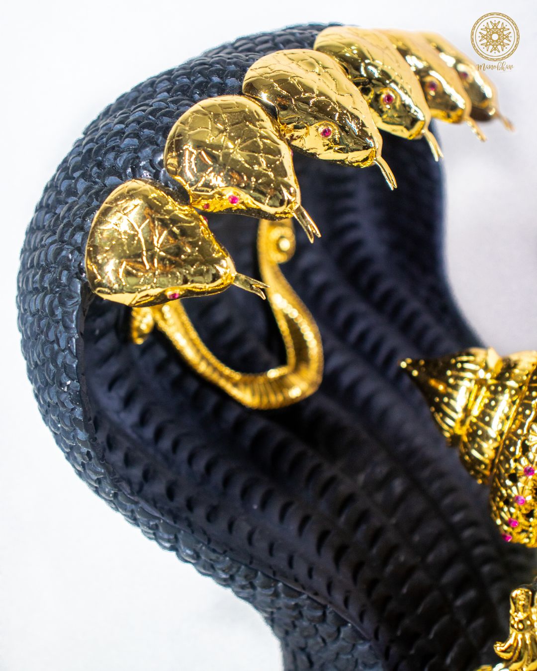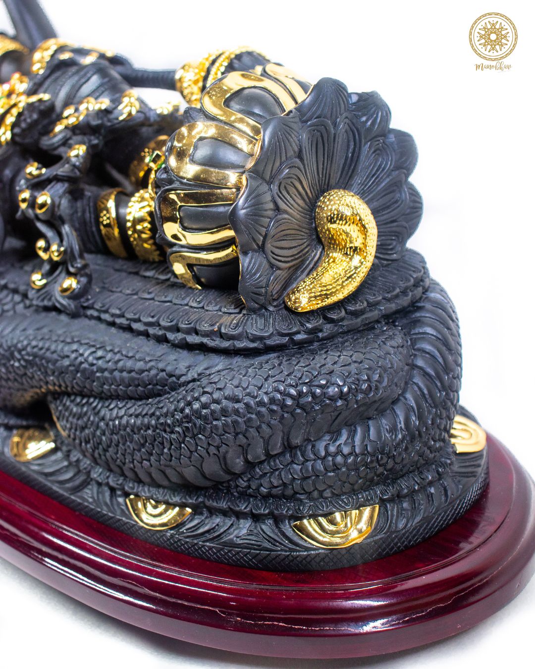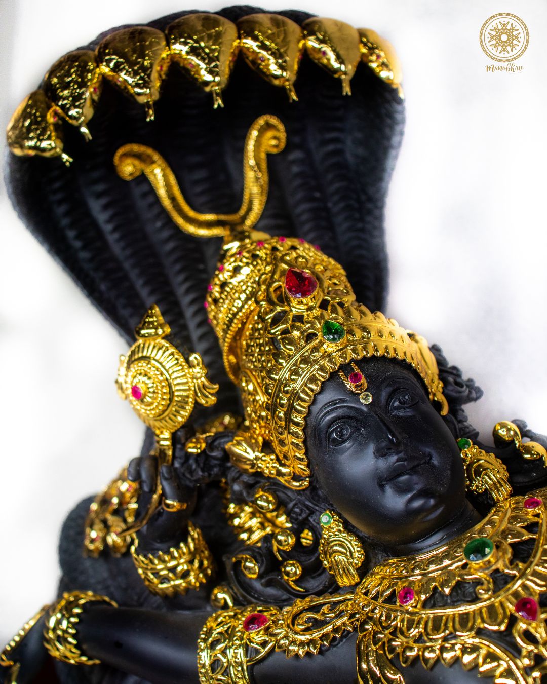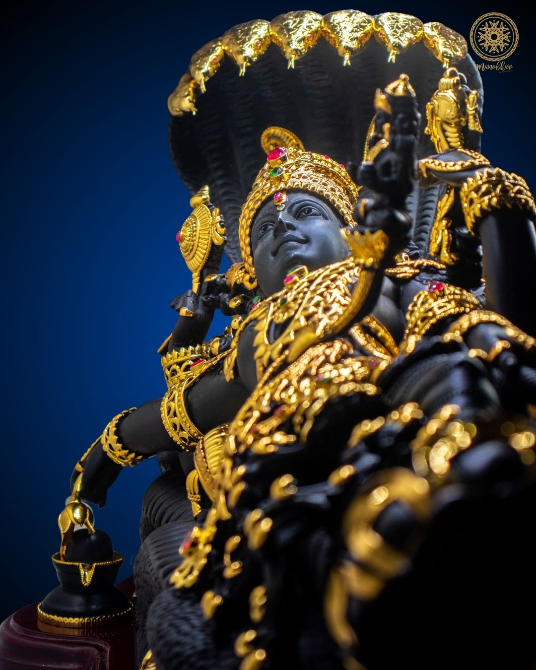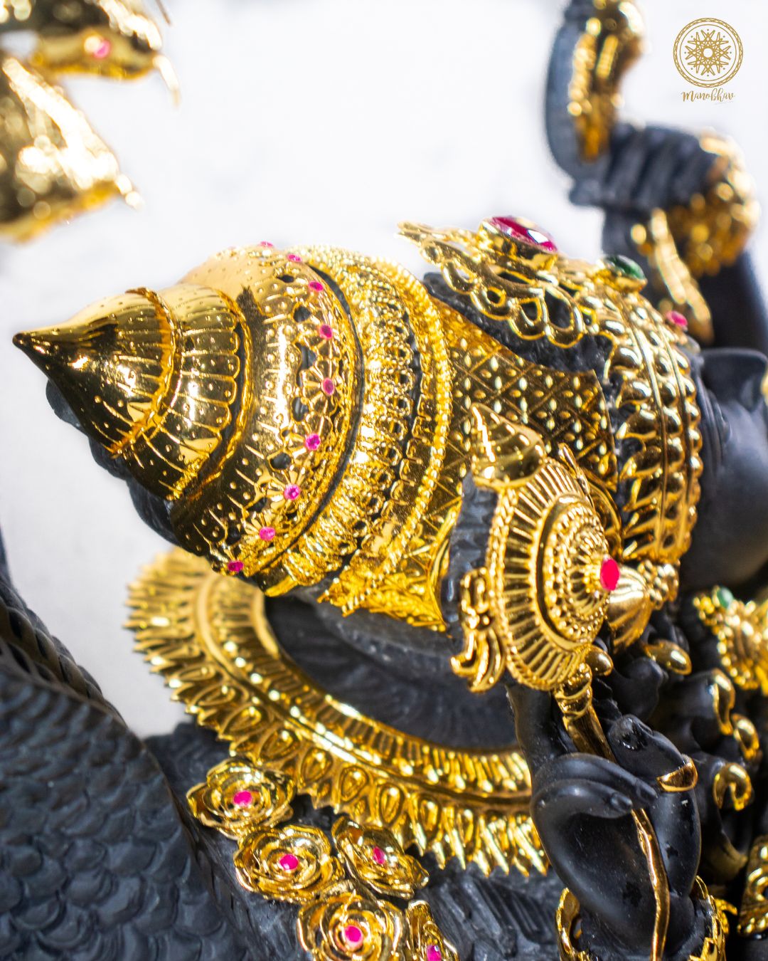 This Lord Vishnu Anantashayana Idol is a beautiful representation of Bhagwan Vishnu in his cosmic resting pose on Sheshnag, the divine serpent. This sleeping Vishnu statue crafted from premium-quality resin and the statue features a beautiful gold-black finish, symbolizing eternity, balance, and divine power.