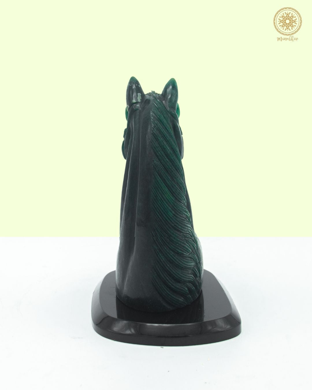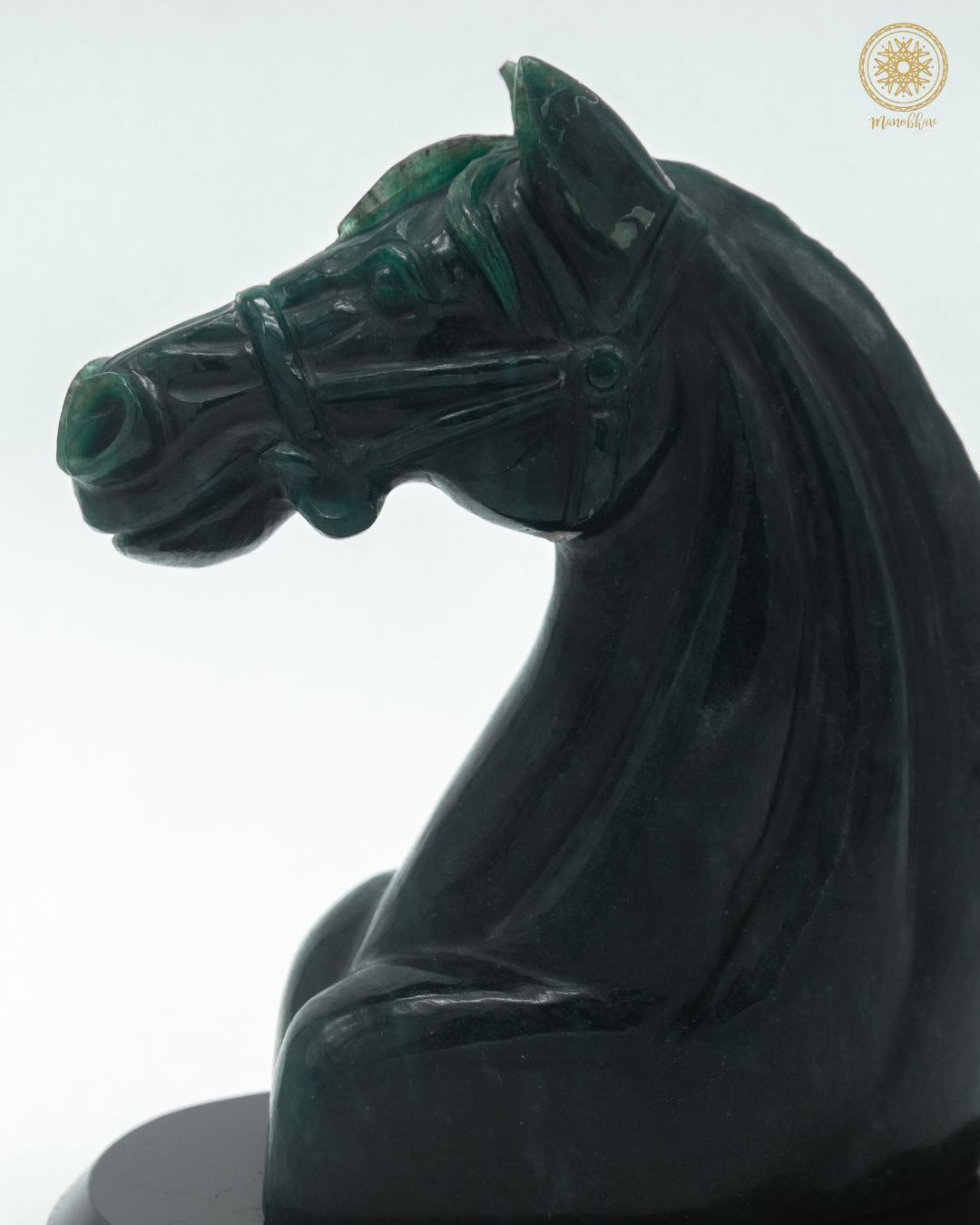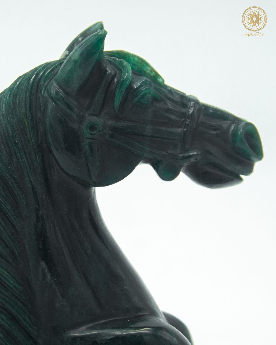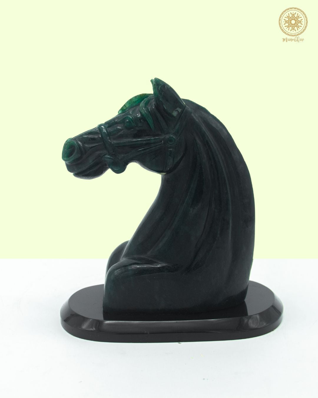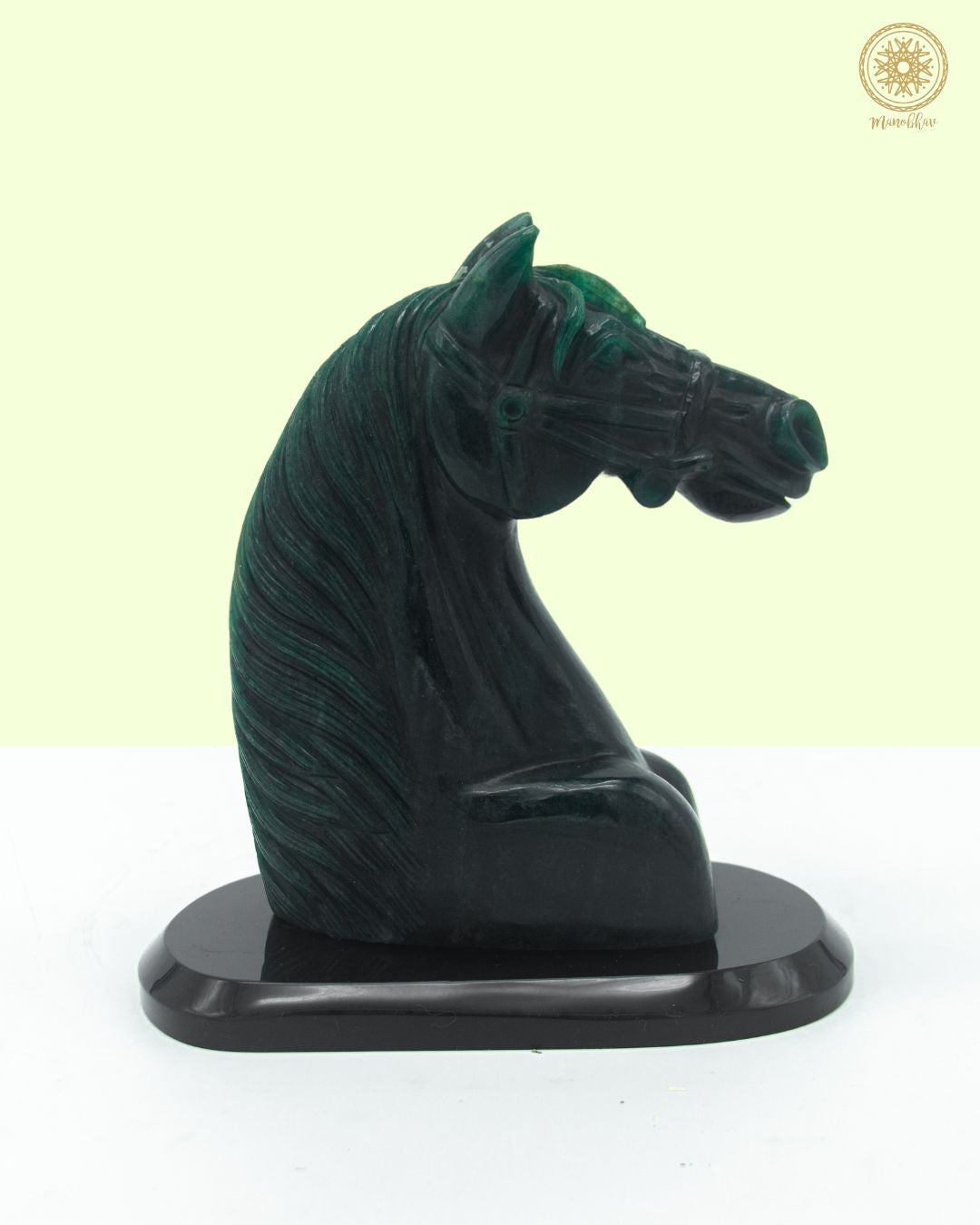 Eine handgeschnitzte Pferdestatue aus hochwertigem grünem Aventurin wie diese eignet sich hervorragend zur Inneneinrichtung und symbolisiert Standhaftigkeit, Stärke und Sieg – genau das, was man für Räume braucht, die Fortschritt und Erfolg einladen sollen.