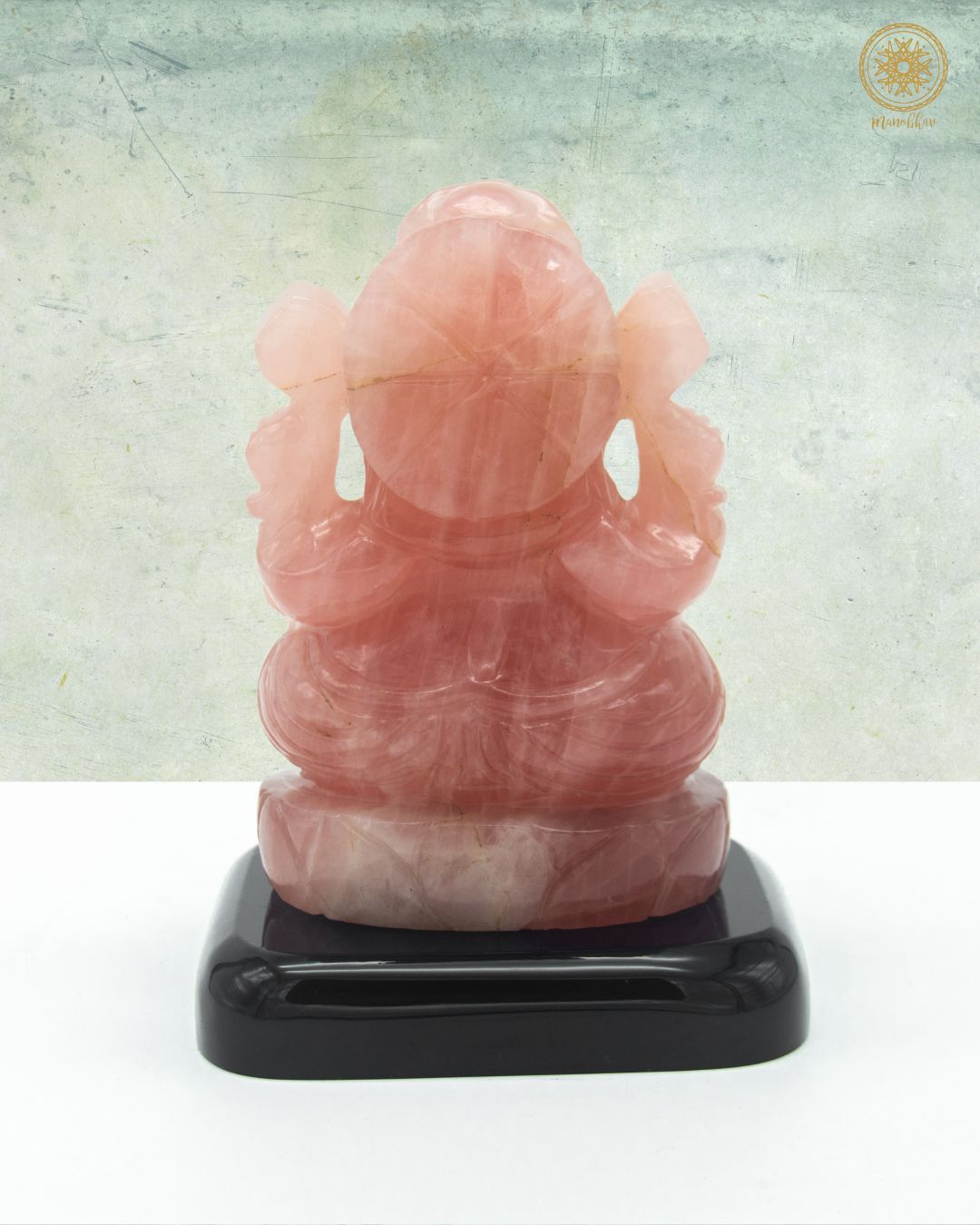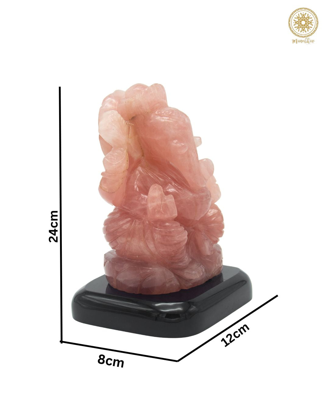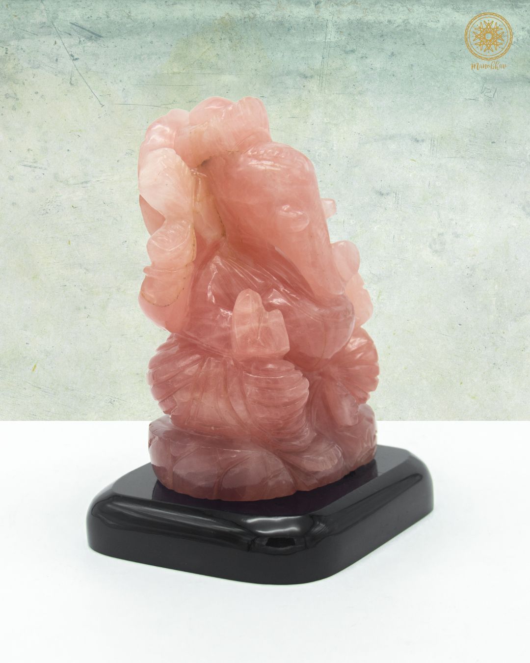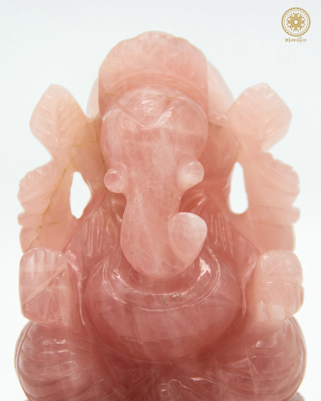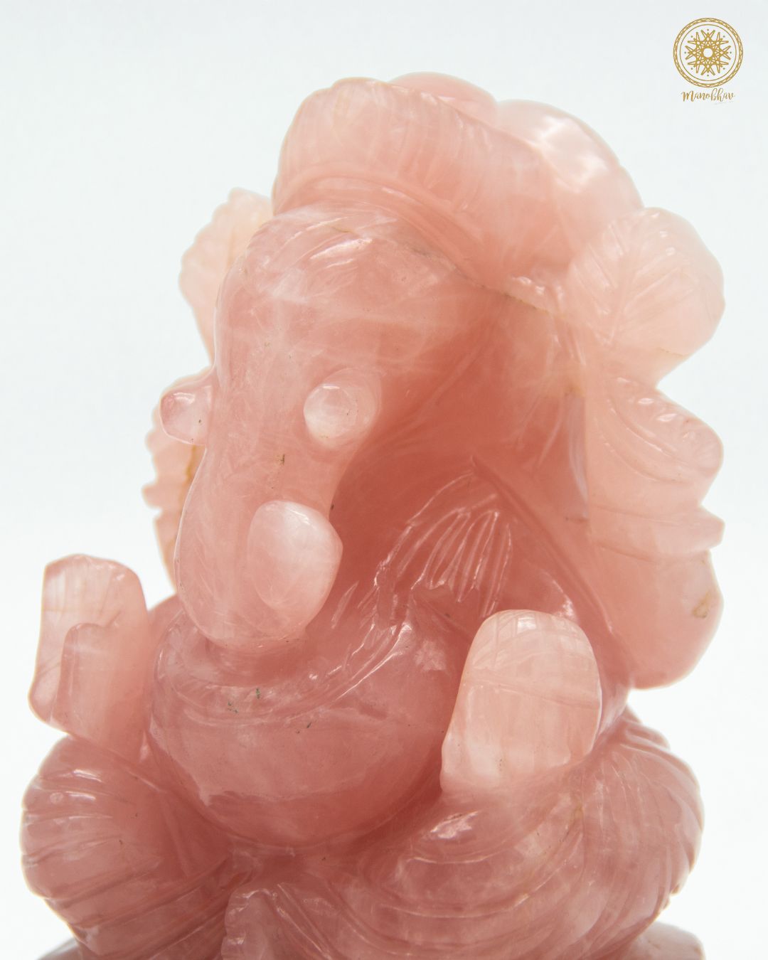 Ganesha-Statue aus natürlichem Rosenquarz | handgeschnitzter Edelstein