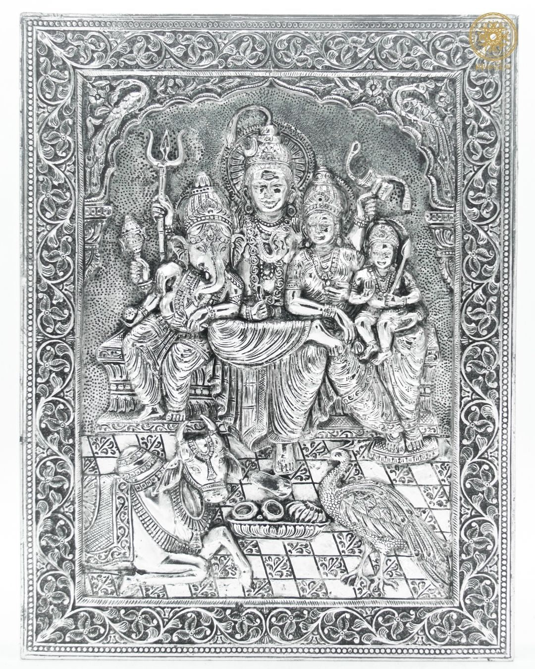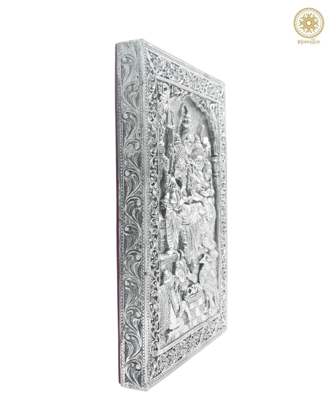 Kaufen Sie handgeschnitzten, versilberten Shiv Parivar Wandbehangrahmen für Zuhause und Büro.