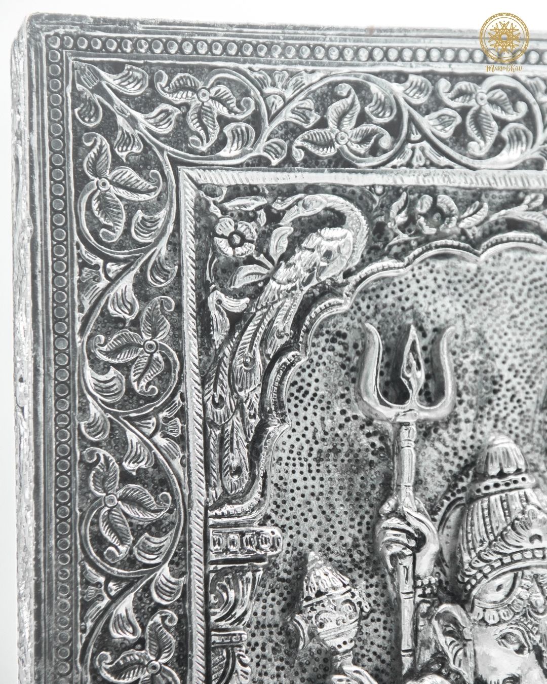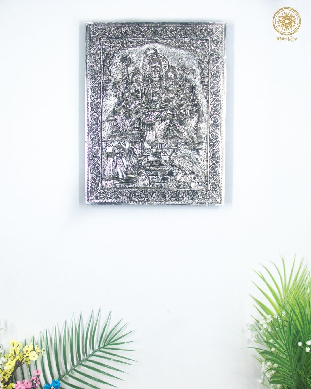 Handgeschnitzter, versilberter Shiv Parivar-Wandrahmen für Zuhause und Büro