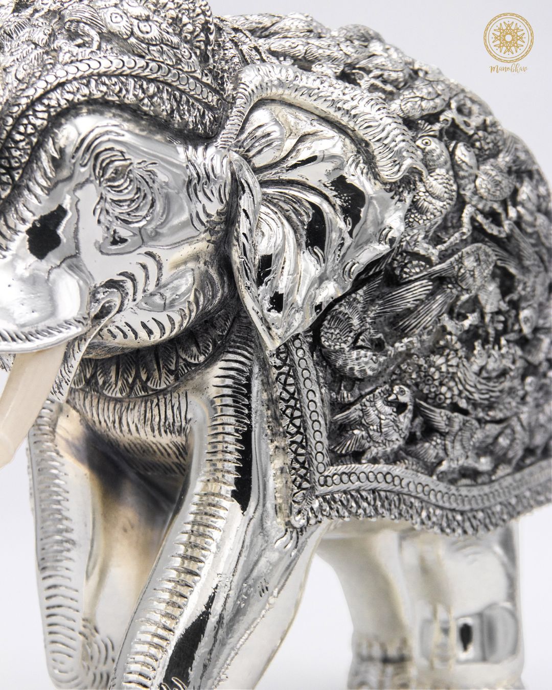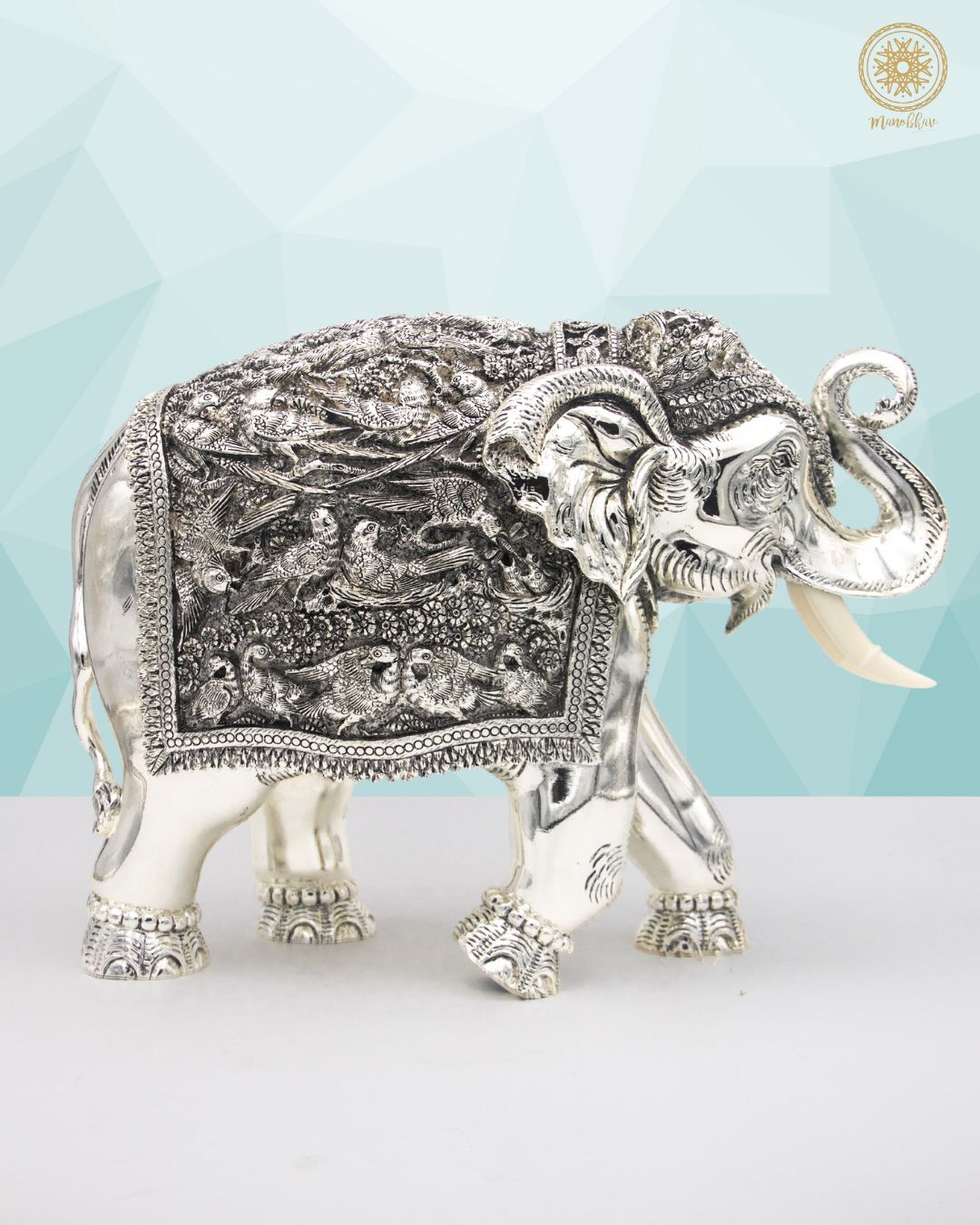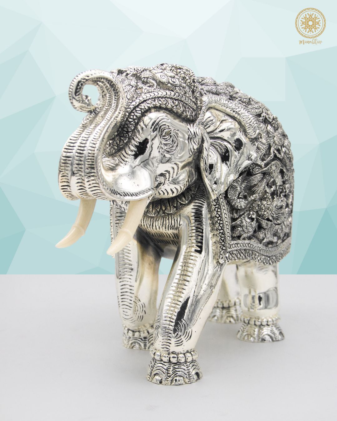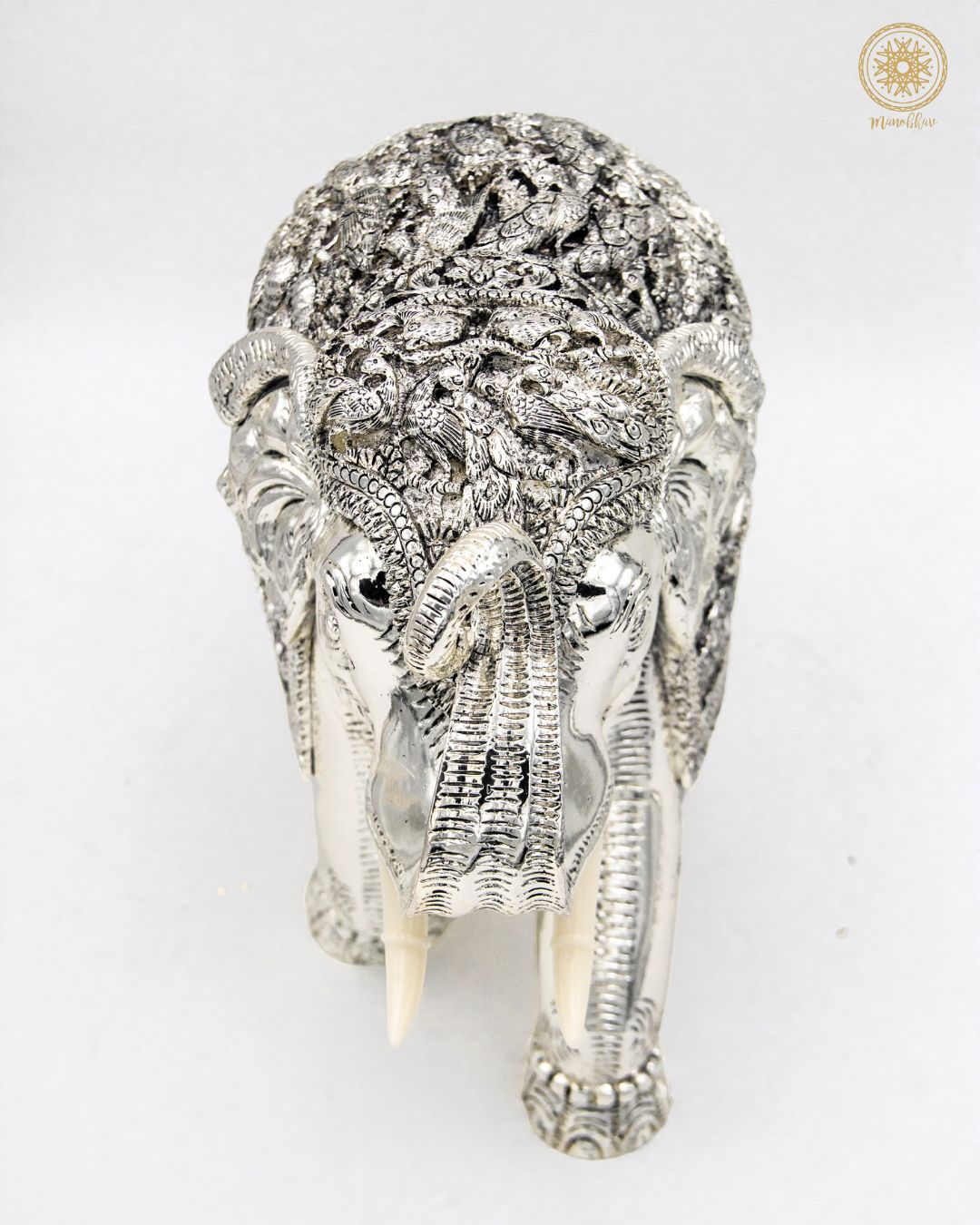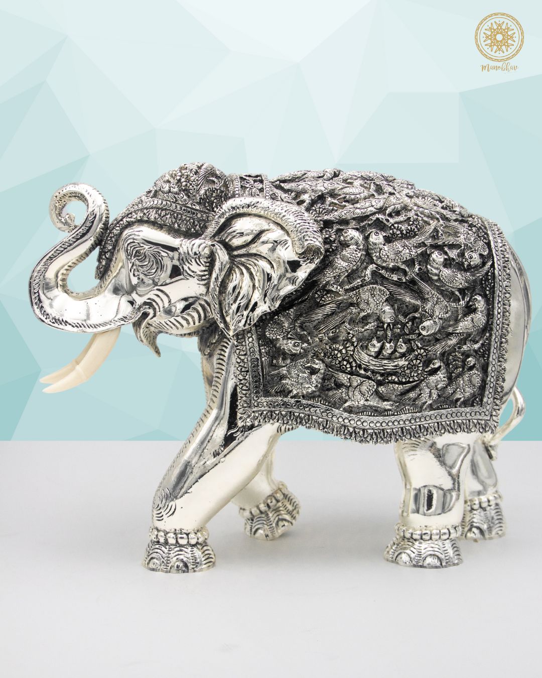 Kaufen Sie eine handgefertigte, versilberte Elefantenfigur als Prunkstück | Perfekt für Liebhaber antiker Wohndekoration.