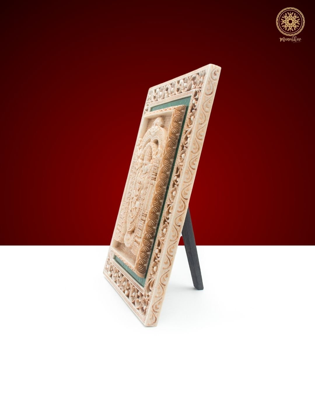 Dieses exquisite Tirupati Balaji-Wandbehang mit Malachit-Intarsien ist ein göttliches Wandbehang, der jeden Raum aufwertet. Aufwendige Schnitzereien und eine reiche Verarbeitung fangen die Essenz von Lord Balaji ein und bringen ein Gefühl von Frieden, Schutz und Wohlstand in Ihr Zuhause. Egal, ob Sie ein frommer Anhänger sind oder einfach nur schöne Dekoration zu schätzen wissen, dieser Balaji-Rahmen ist ein Muss. Er ist eine atemberaubende ästhetische Ergänzung und zugleich ein starkes spirituelles Symbol. Der Balaji-Wandbehang ist ein großartiges Sammlerstück, das den eigenen Raum verschönert und als Investition in schöne Kunst und Spiritualität dient.