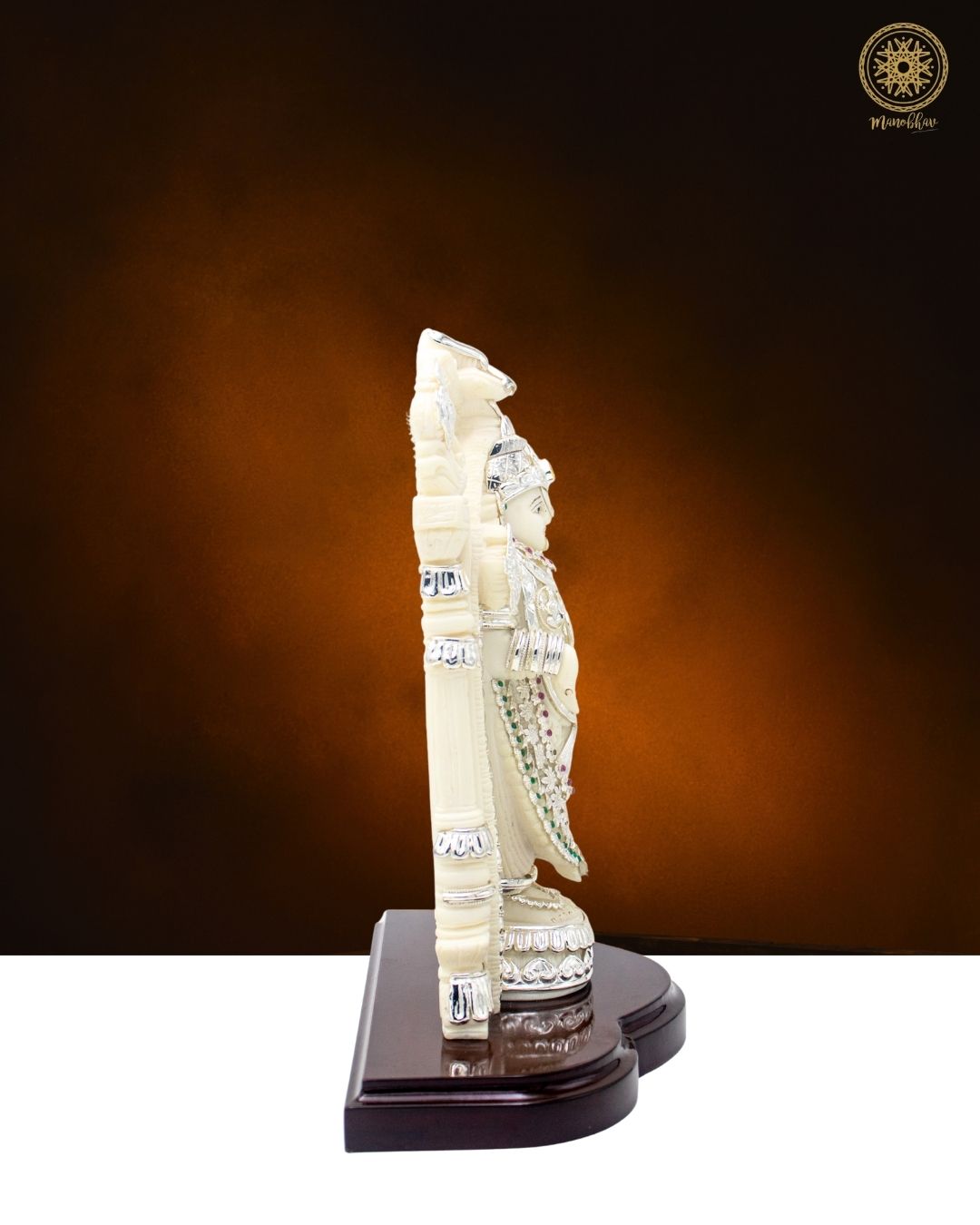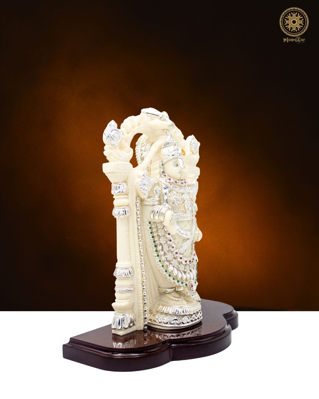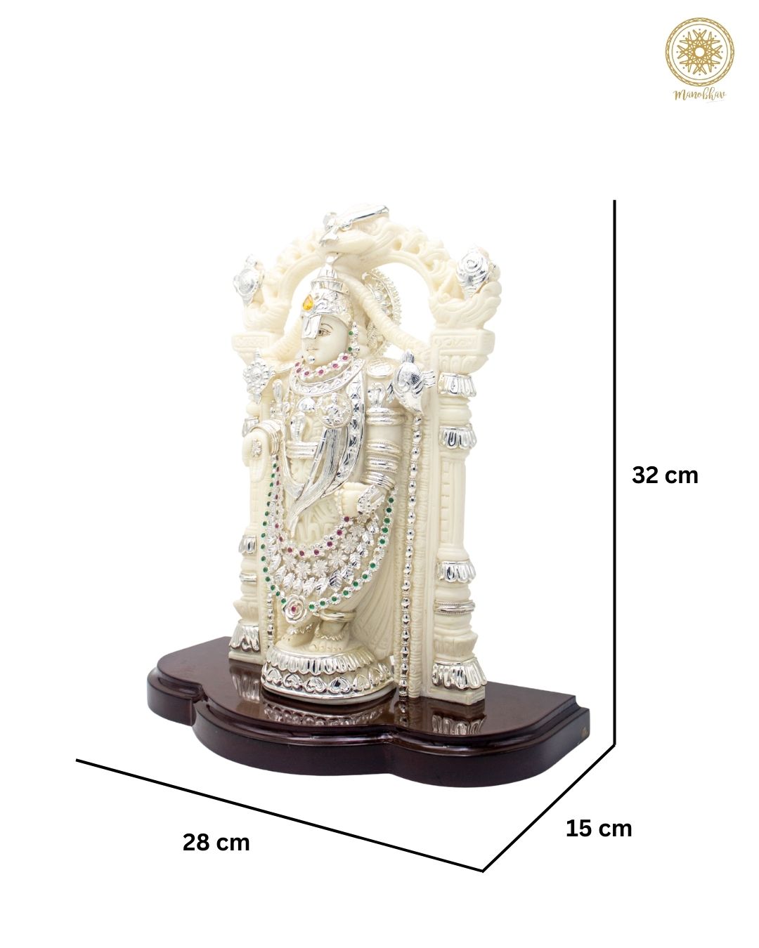 The shining silver ornaments and detailed carving make this idol a masterpiece. Keeping this idol in your home temple brings divine energy and reminds us of devotion, patience, and faith in God. It is perfect for worship, for decorating your living space, or gifting to someone who values blessings and positivity in life.