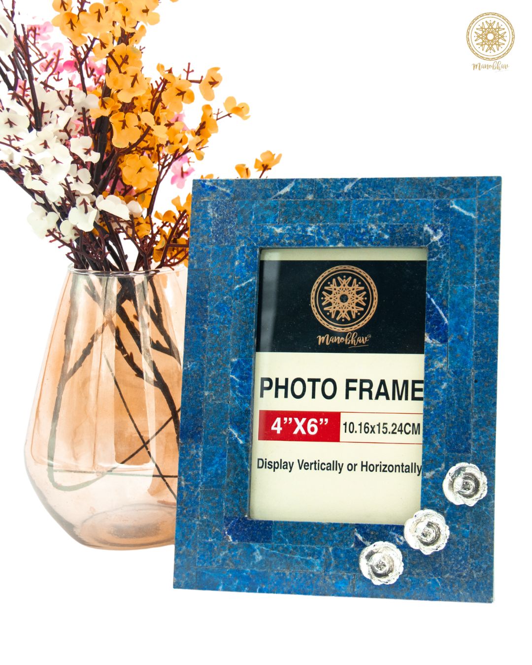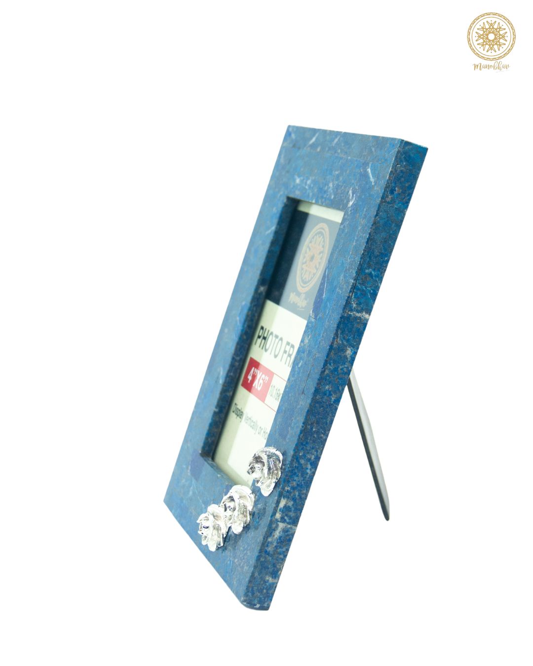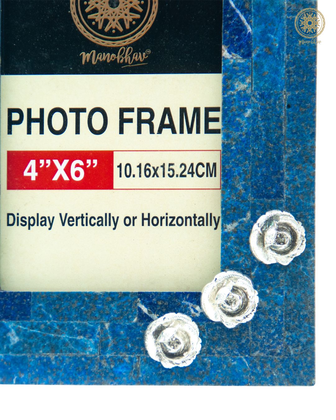 Blue Lapis Lazuli Photo Frame | Embellished With Silver Rose