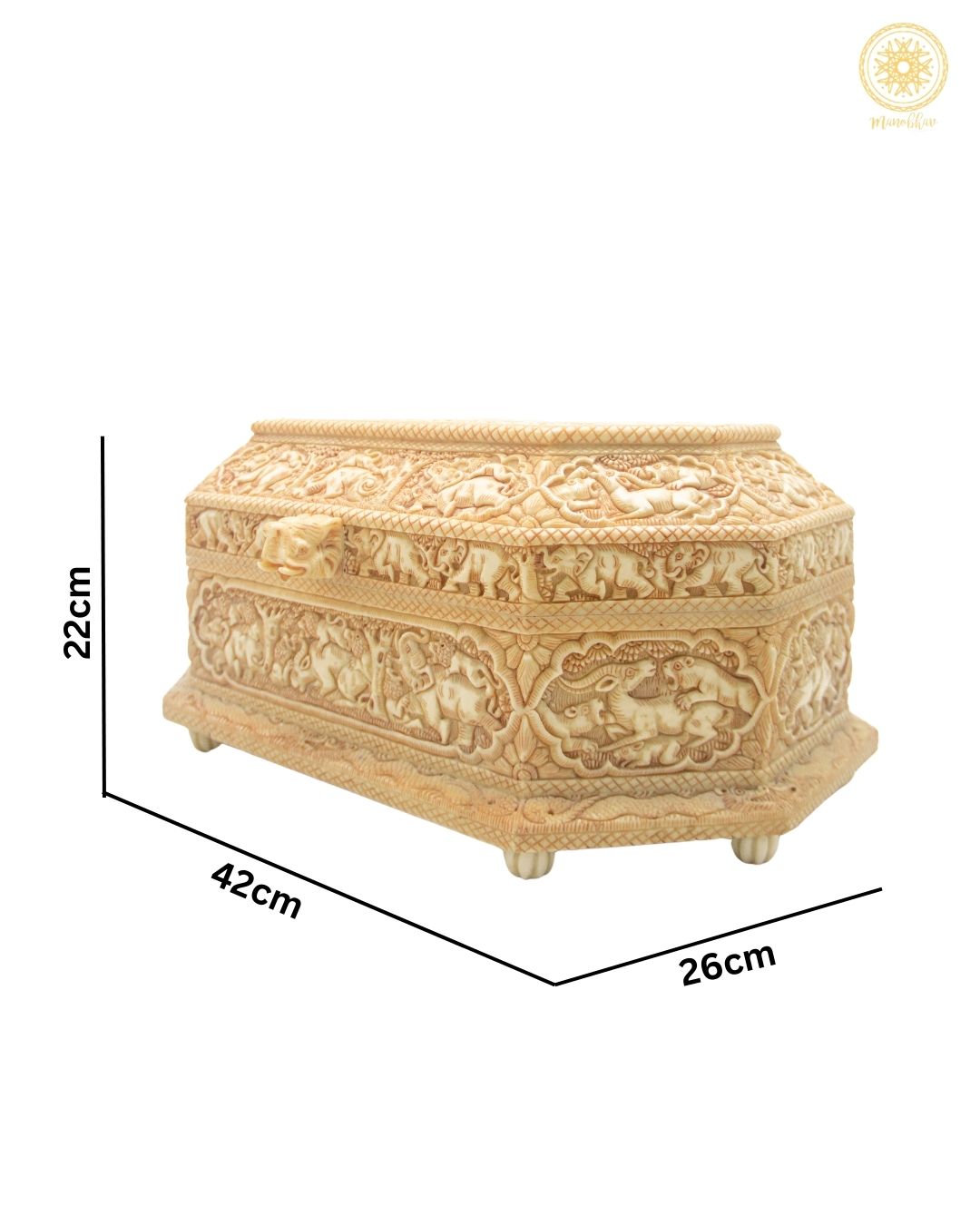 The Casket is made from high-quality resin and adorned with exquisite detailing, this decorative casket is ideal for safeguarding your rings, earrings, bracelets, and keepsakes while adding a touch of royal style to your dresser or vanity. The elephant design, a symbol of wisdom and good fortune, enhances its aesthetic appeal, which makes it a meaningful addition to your collection.