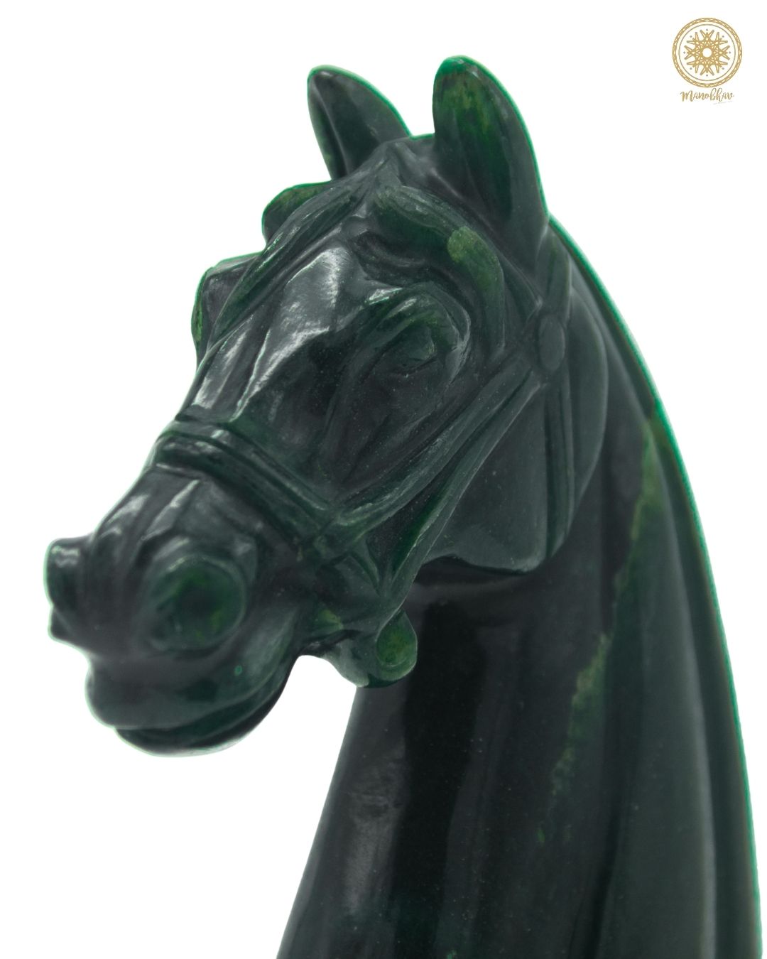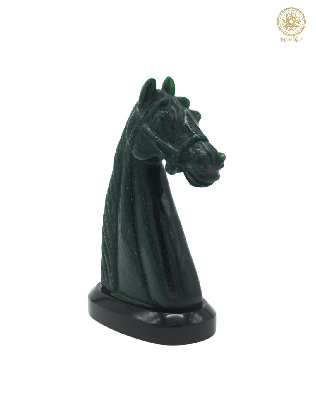 Some descriptionGreen aventurine is a semi-precious stone said to possess healing and prosper-attracting qualities. It was chosen for this horse sculpture, because it would represent growth, luck, and leadership qualities already represented by a horse.