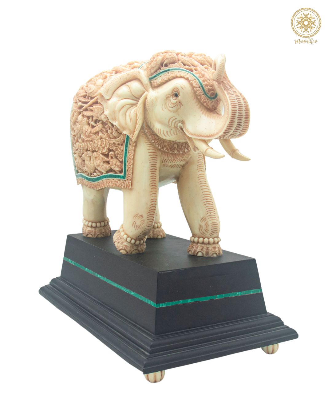 Buy Hand-Carved Resin Trunk-up Elephant Sculpture with Malachite, Showpiece for Home Decor online.