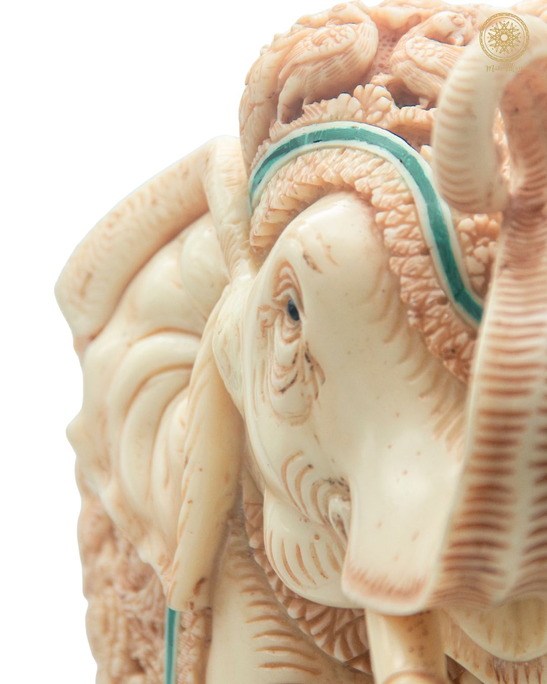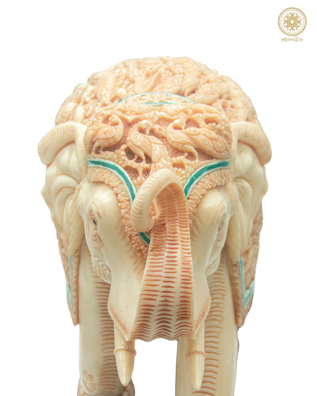 This beautiful hand-carved resin elephant sculpture is a masterpiece of patience and skill which features a captivating collection of different bird species, This unique piece is made of premium resin, the real malachite, and the way in which it is made epitomize Indian craftsmanship. To achieve these intricate details, our artisans dedicate countless hours of skilled labor. Creating a unique piece like this demands this level of craftsmanship.
