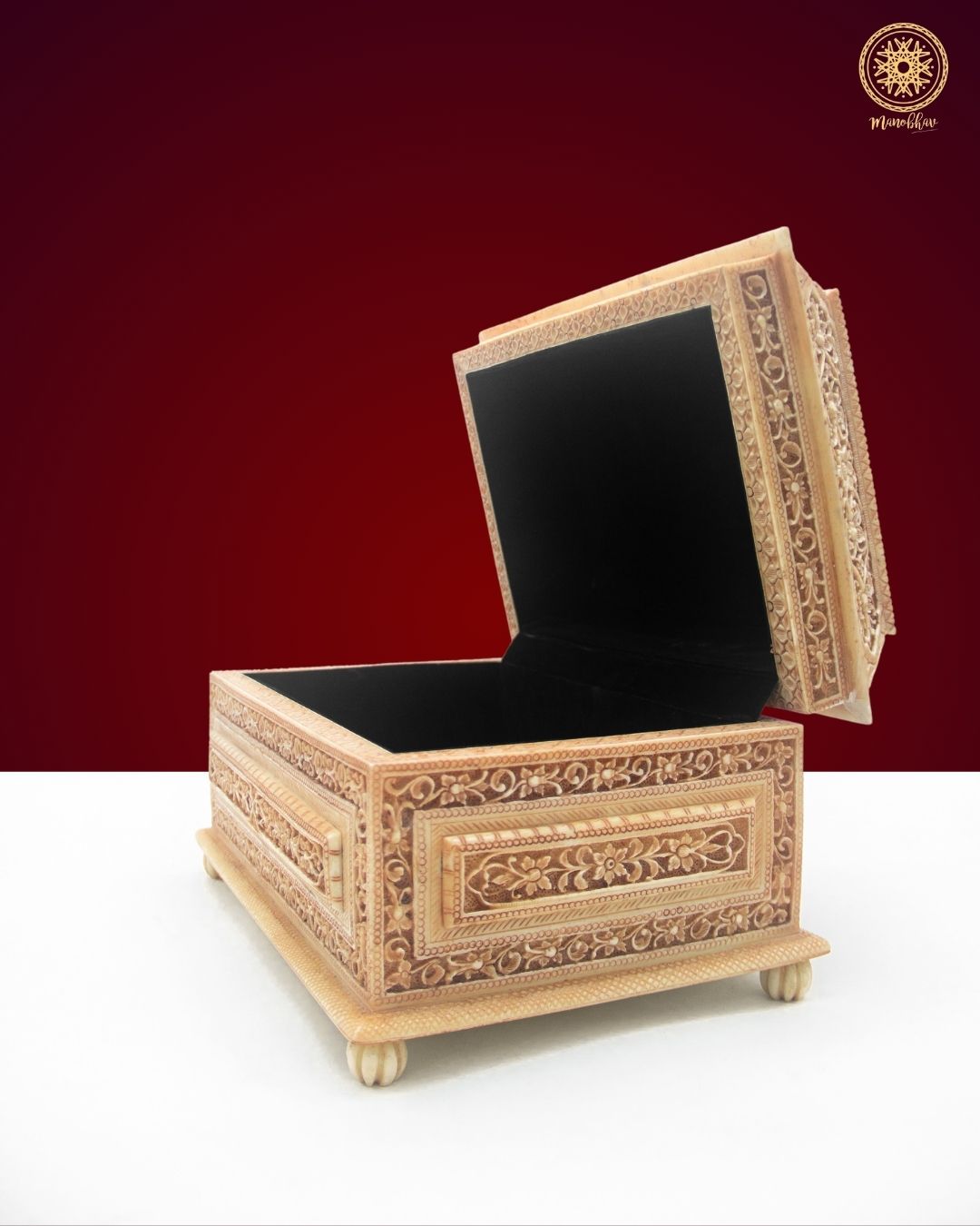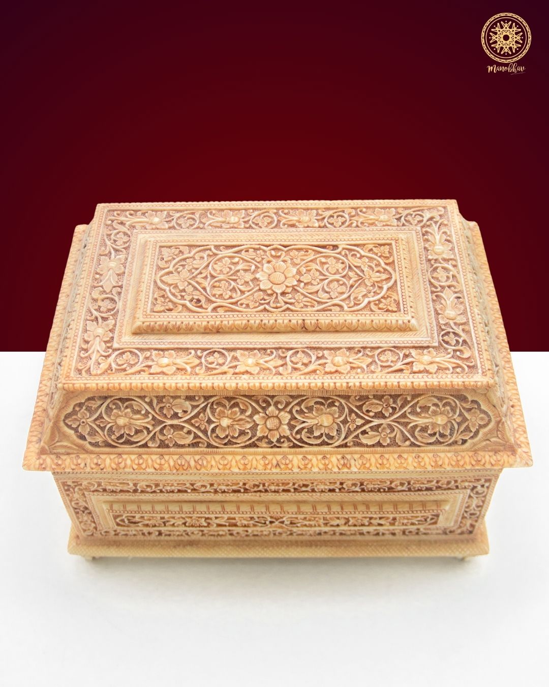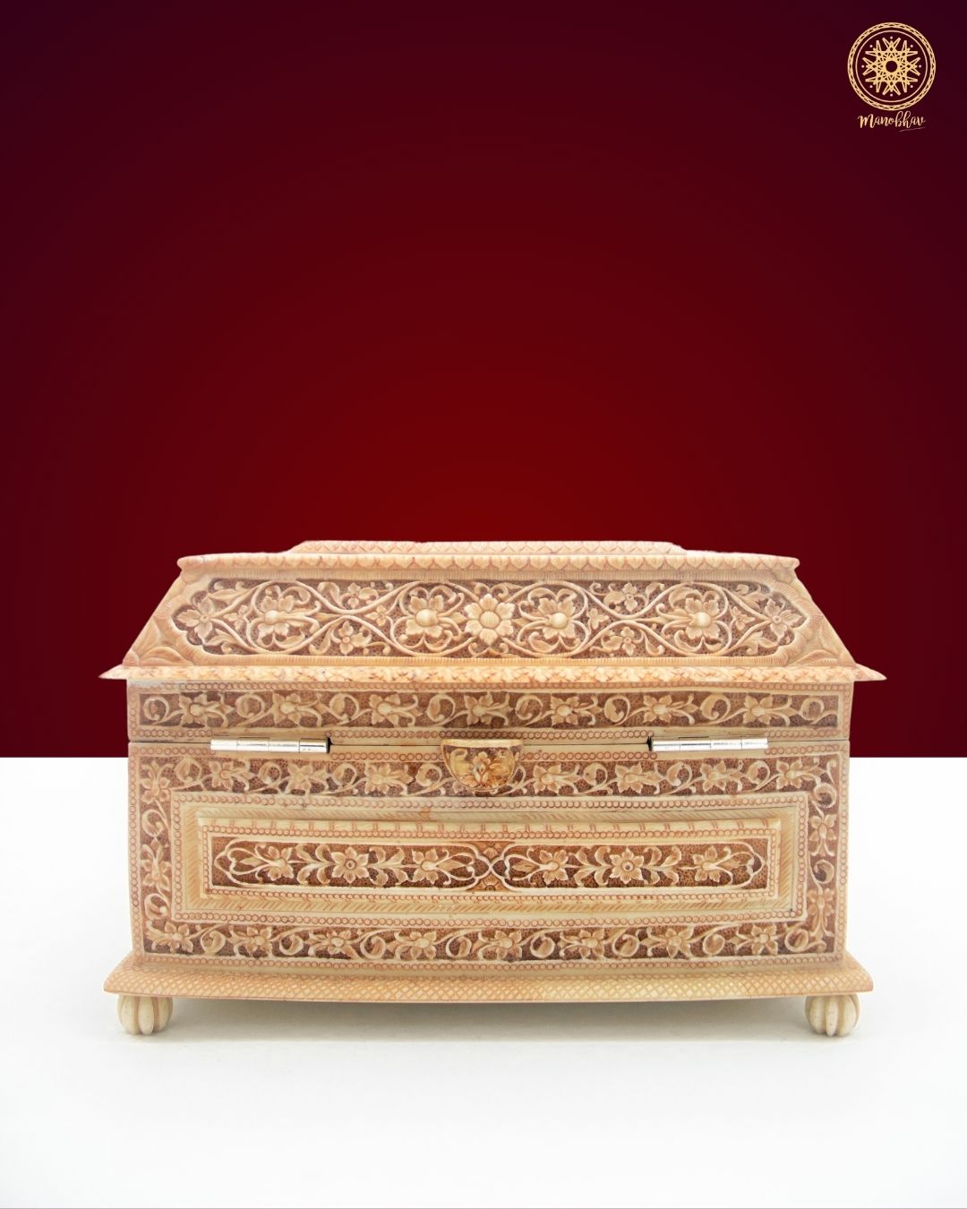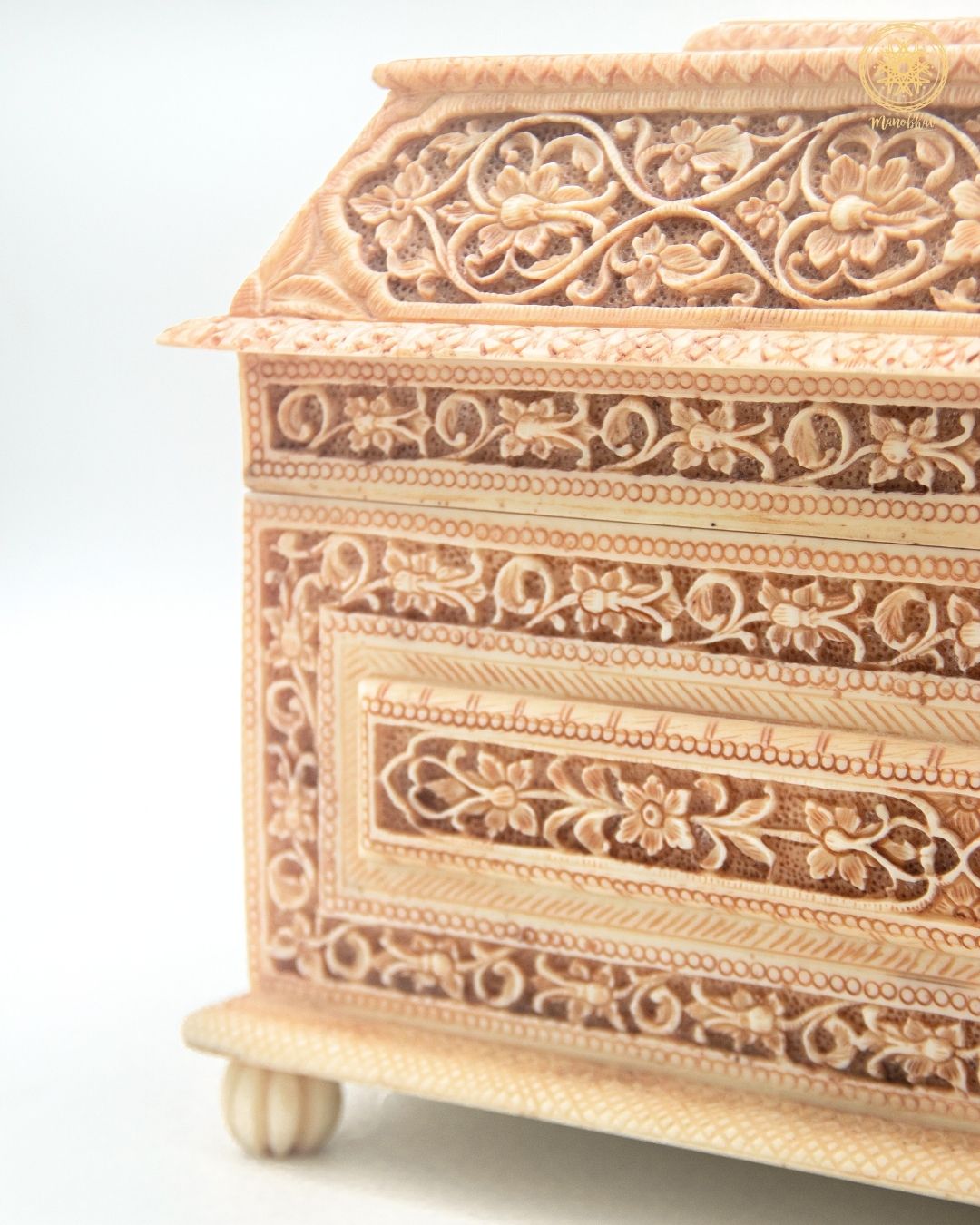 Buy Handcrafted Antique Jewelry Box with Intricately Carved Florals online.