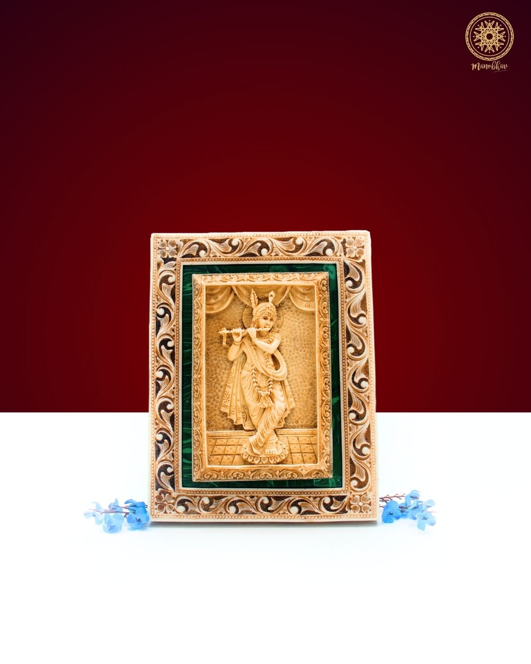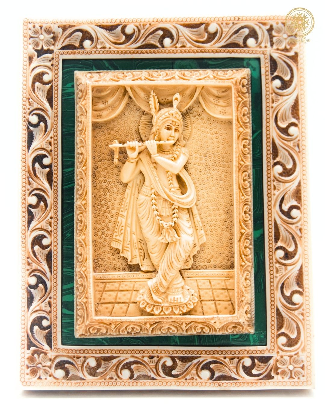 This Krishna frame is a collector's item, being a beautiful decoration and at the same time an investment in rare art and spirituality. Traditional and exquisite. This wall art decor is very thoughtful and meaningful to give as a gift, and anyone who gets it will truly appreciate it.