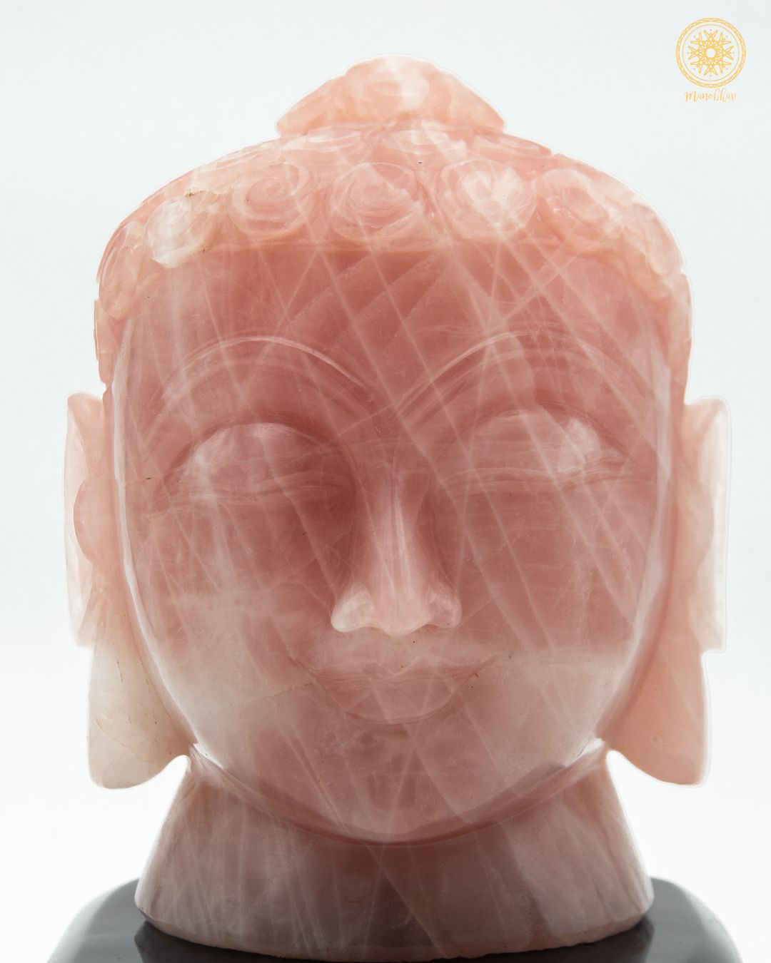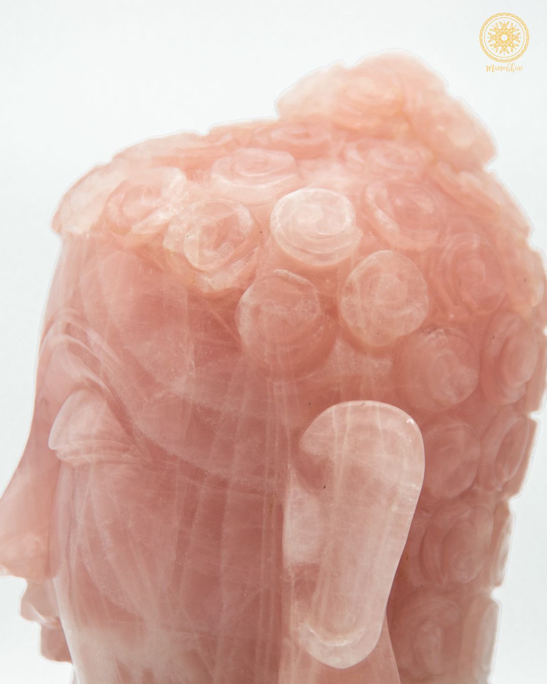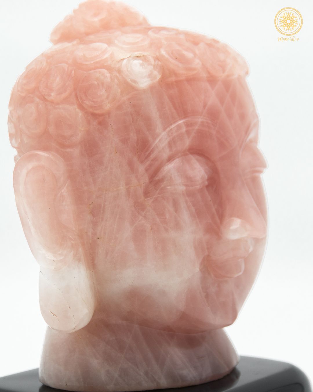 Natural Rose Quartz Buddha Head Statue | Handcrafted Gemstone Tabletop