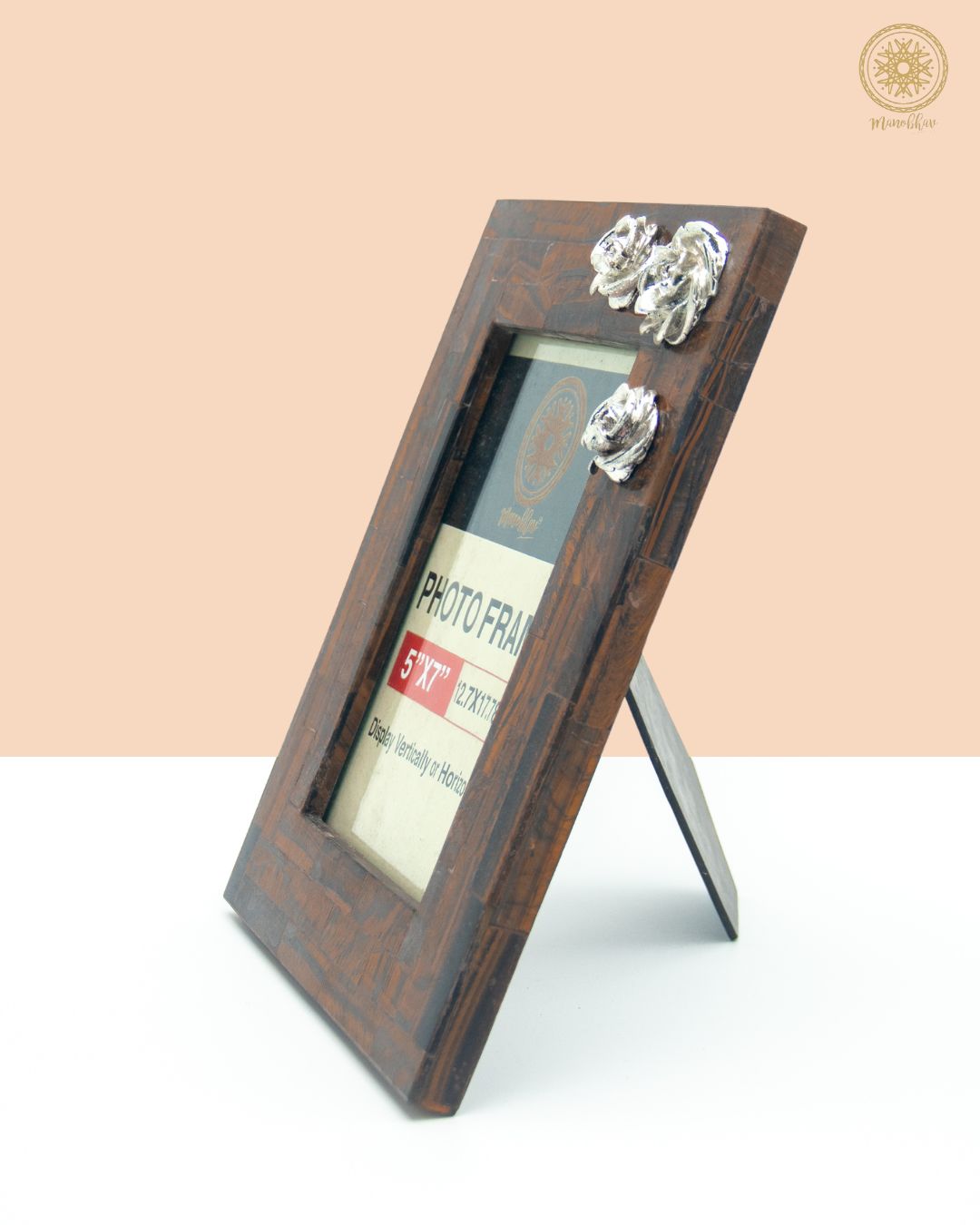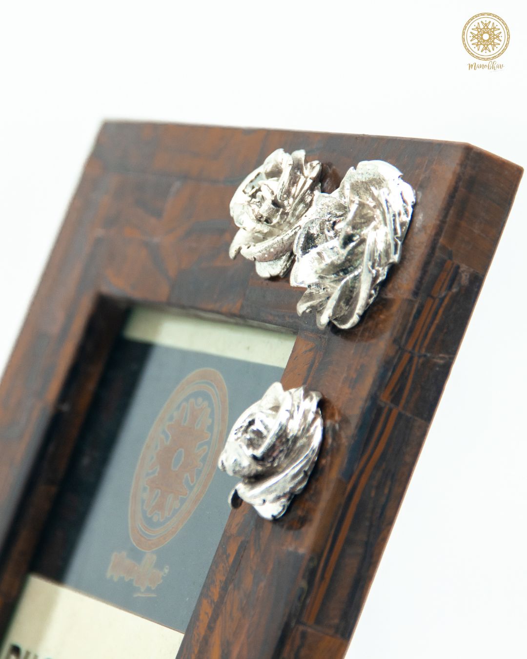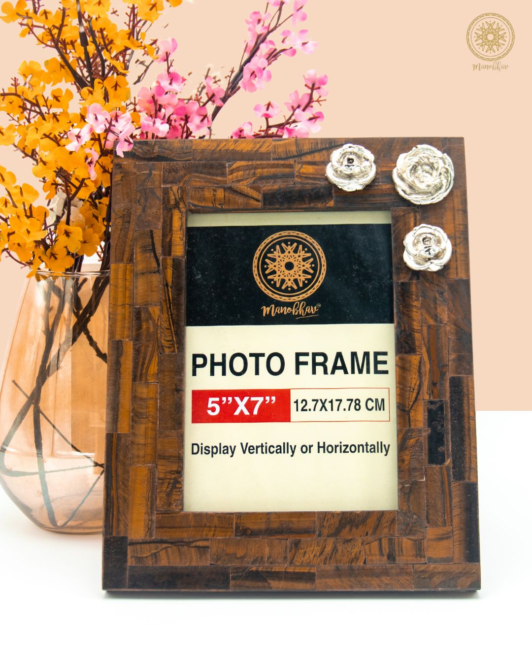Buy our Natural Tiger Eye Photo Frame Stand | Embellished with Silver Rose