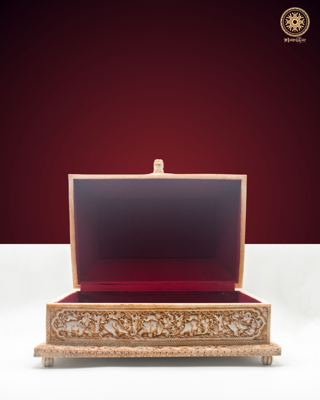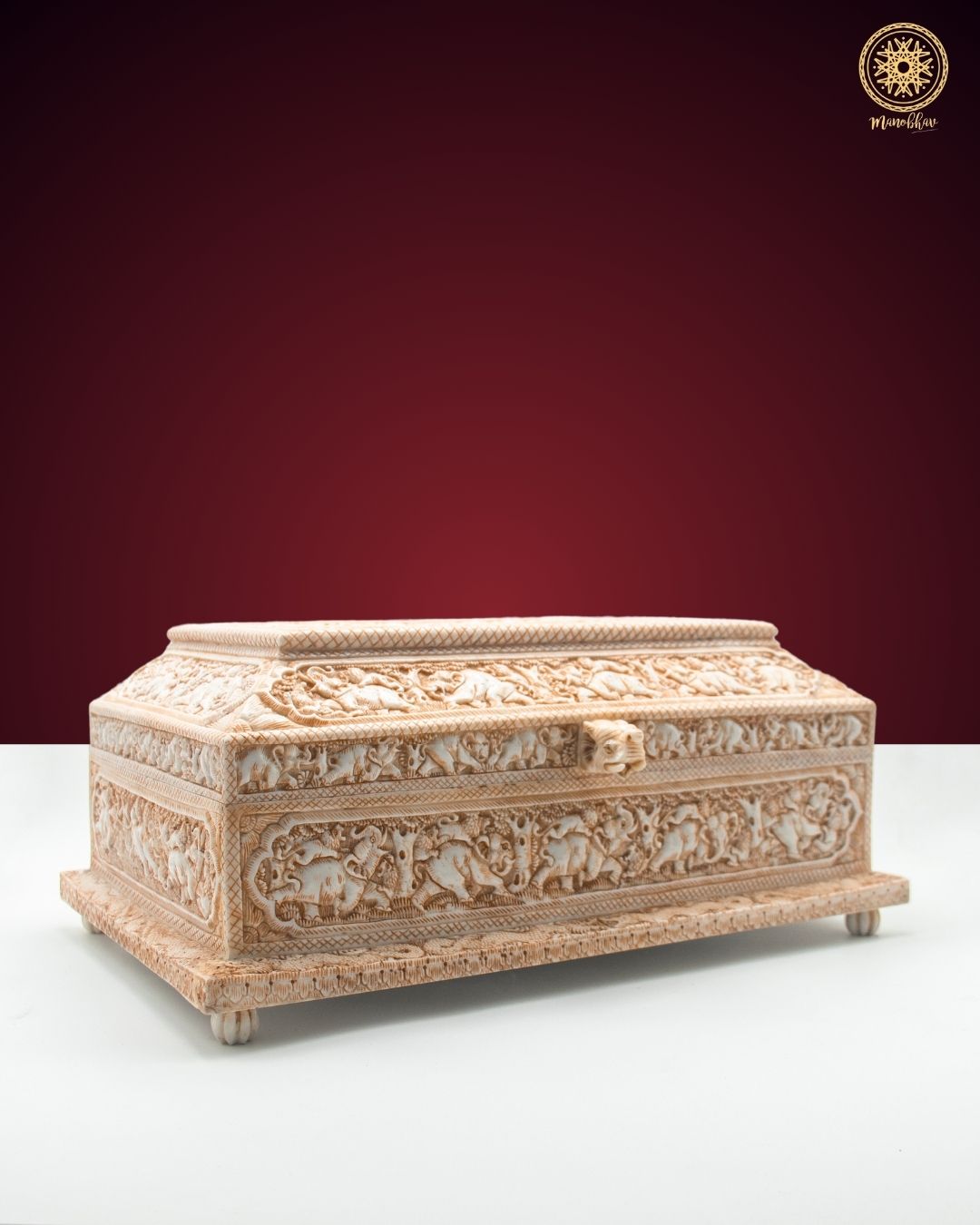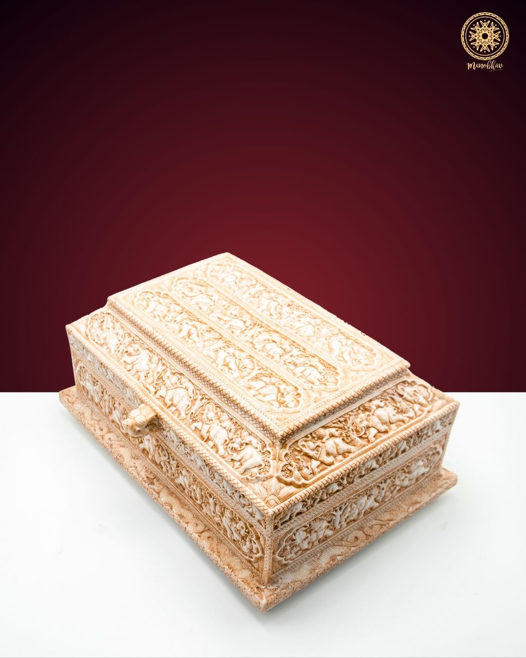 It's a fascinating box that will complement any jewelry collection: our alluring elephant jewelry storage box. Intricately detailed and hand-carved, this antique home decor item is so much more than where you will store your trinkets, it's really a conversation piece and beautiful artistry. You can fit quite a number of rings, necklaces, bracelets, and lots of other little keepsakes inside the interior while the build ensures that what is precious inside stays safe.