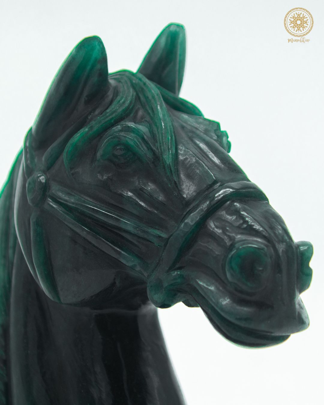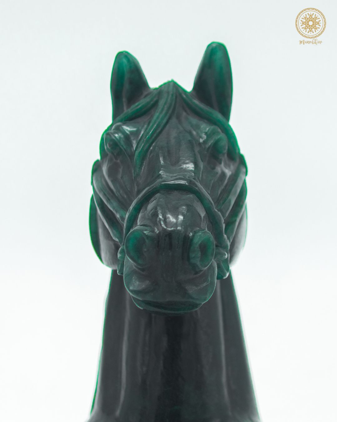 Statue de cheval en aventurine verte fabriquée à la main | Figurine de sculpture en pierre précieuse