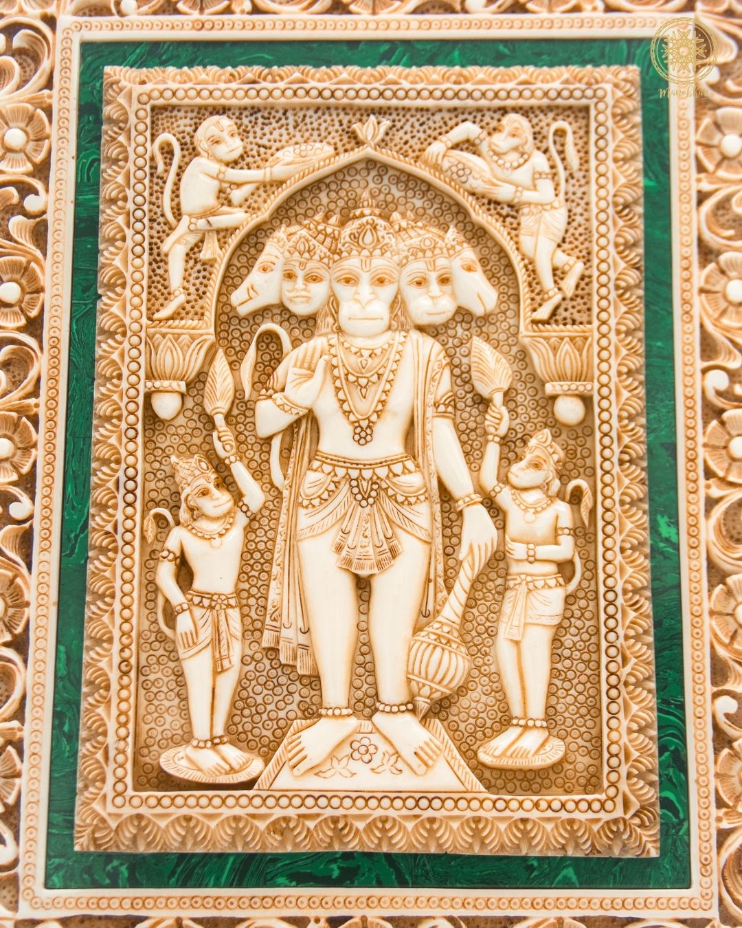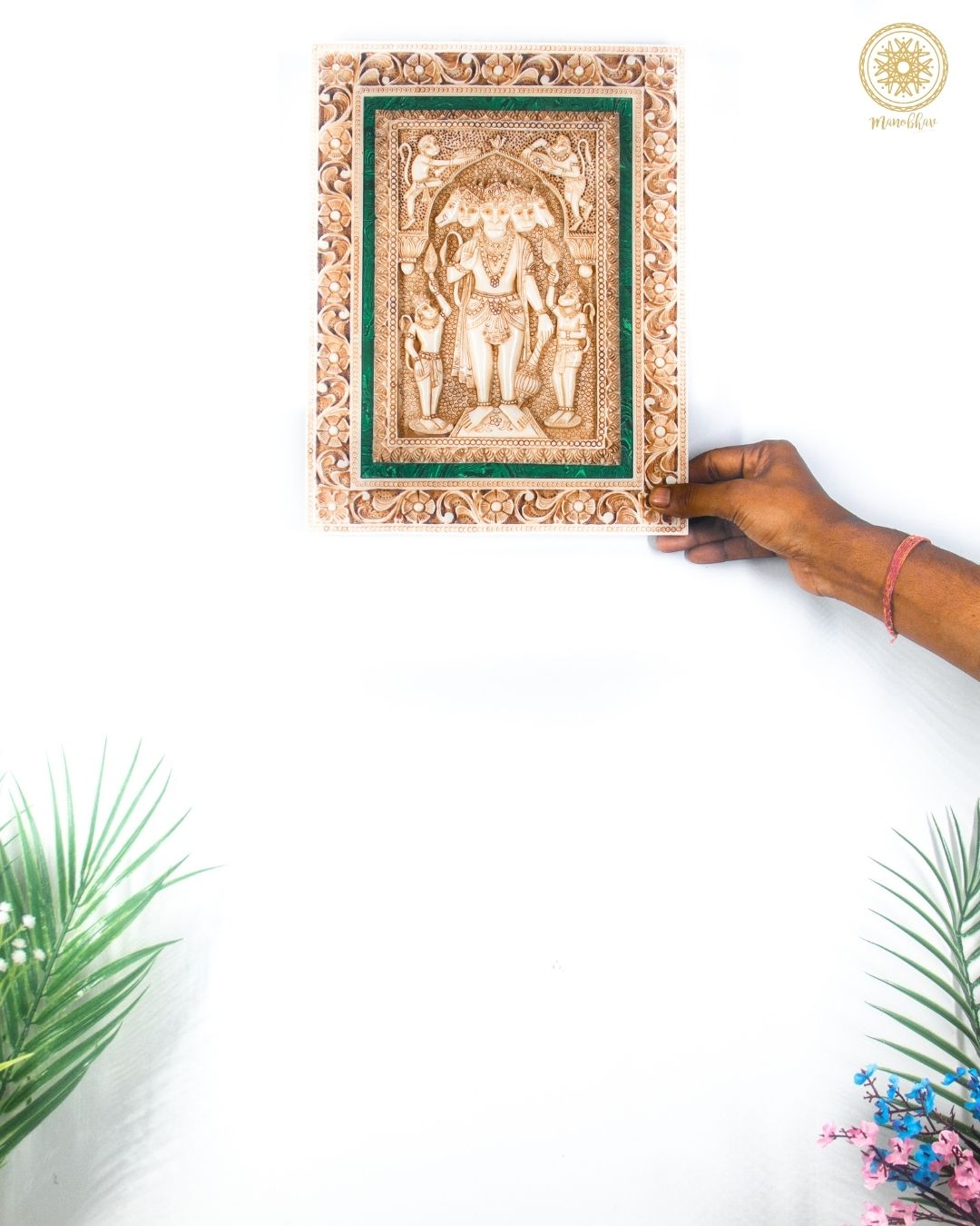 Cadre mural Hanuman Ji sculpté à la main | Art mural décoratif pour la galerie de la maison