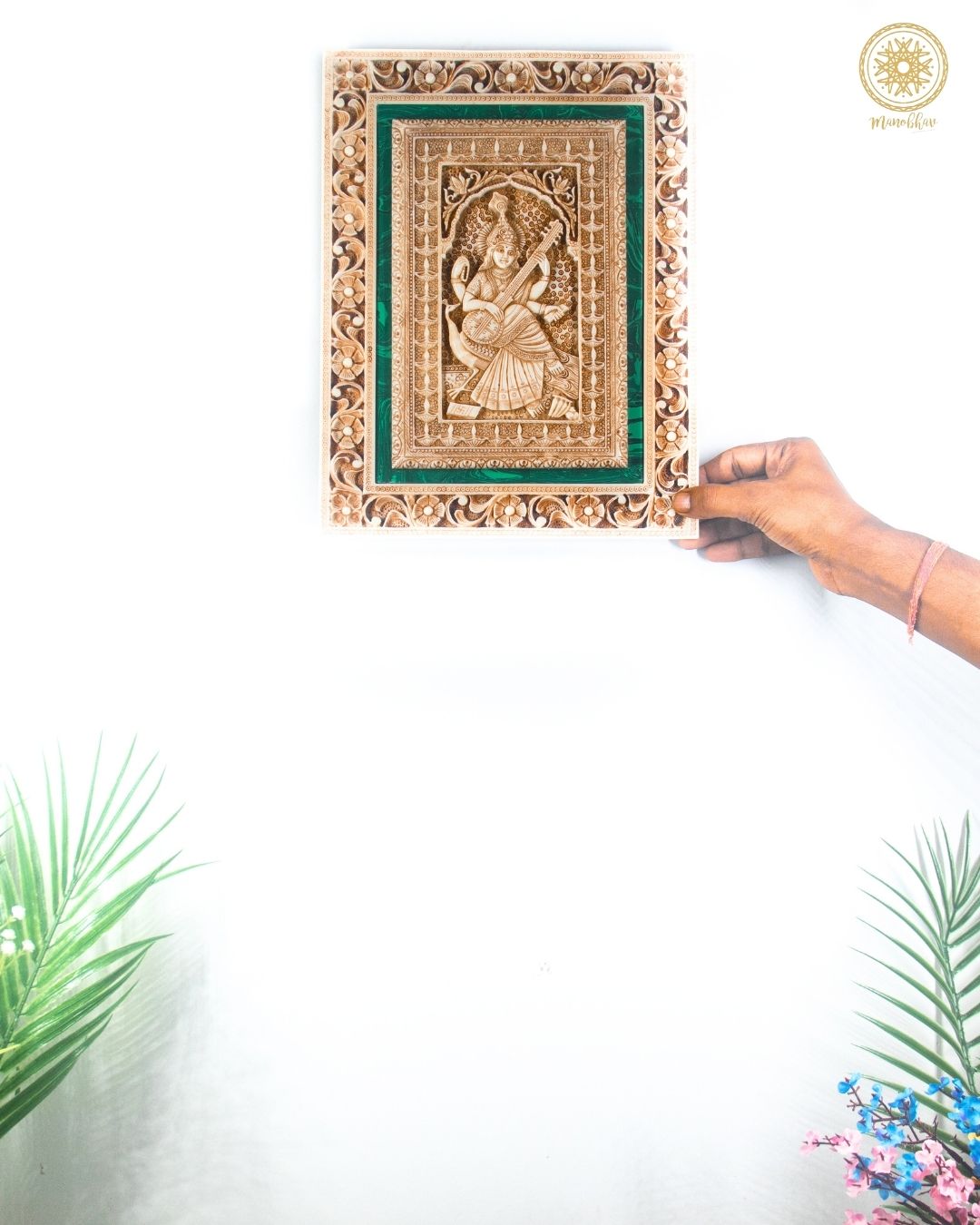 Achetez en ligne un superbe cadre mural décoratif Sarasvati Ji pour la maison et le bureau.