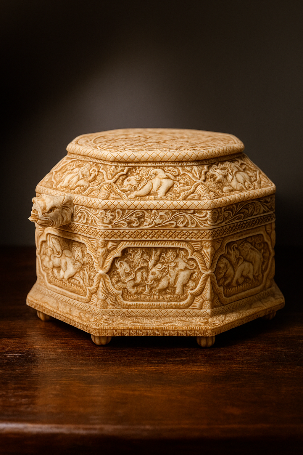 Coffret à bijoux vintage sur le thème des animaux avec sculptures détaillées | Coffret à bijoux octogonal fabriqué à la main