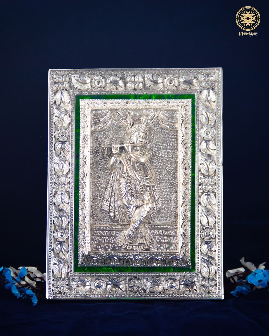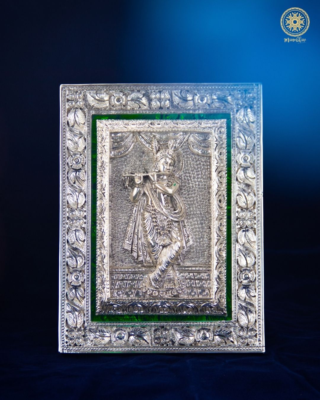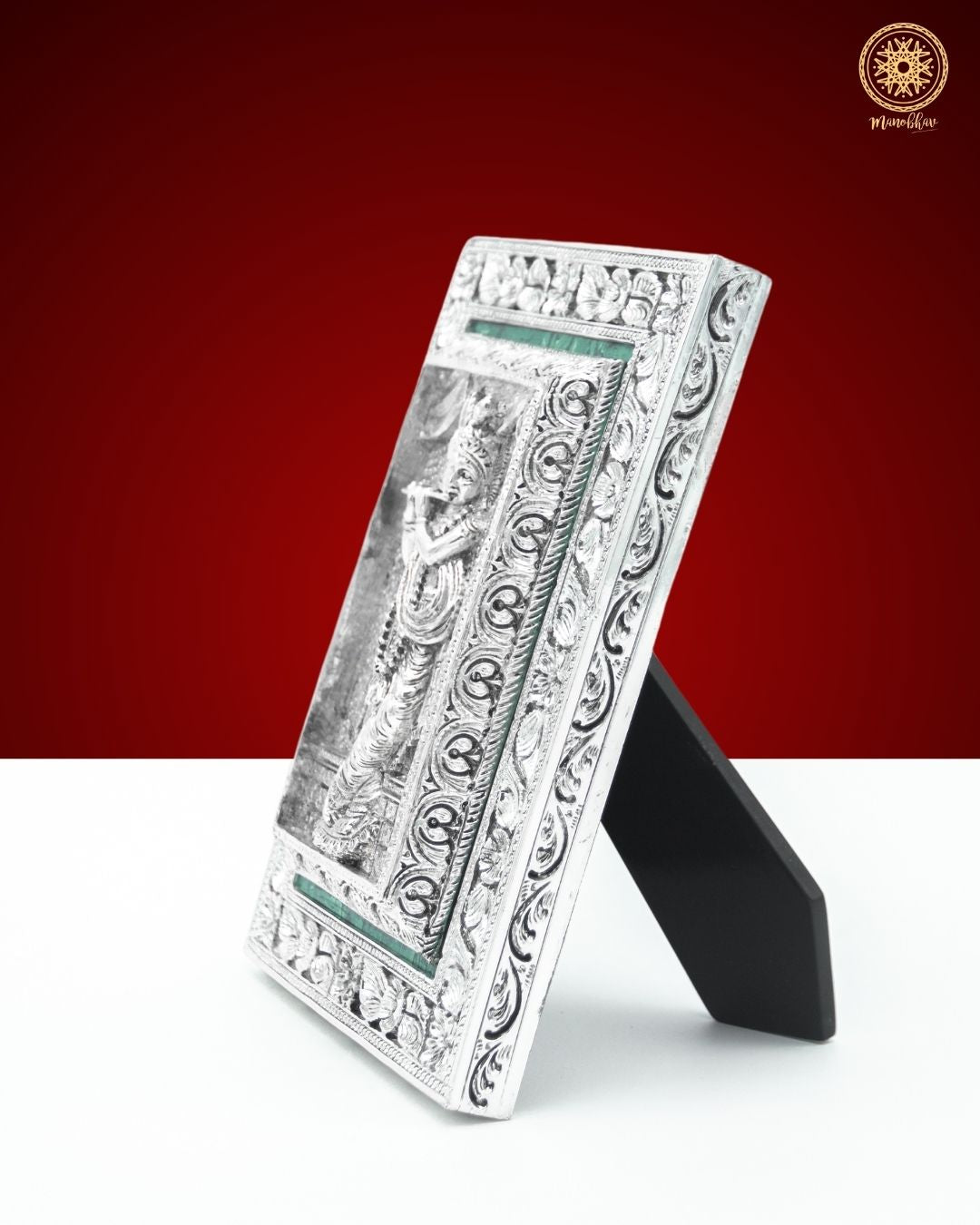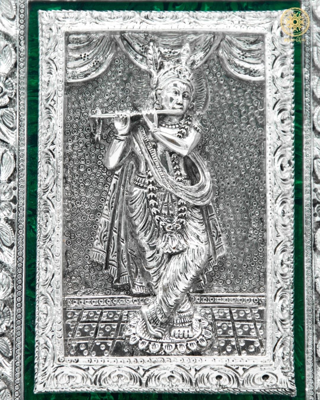 Cadre Krishna sculpté à la main | Plateau de table plaqué argent