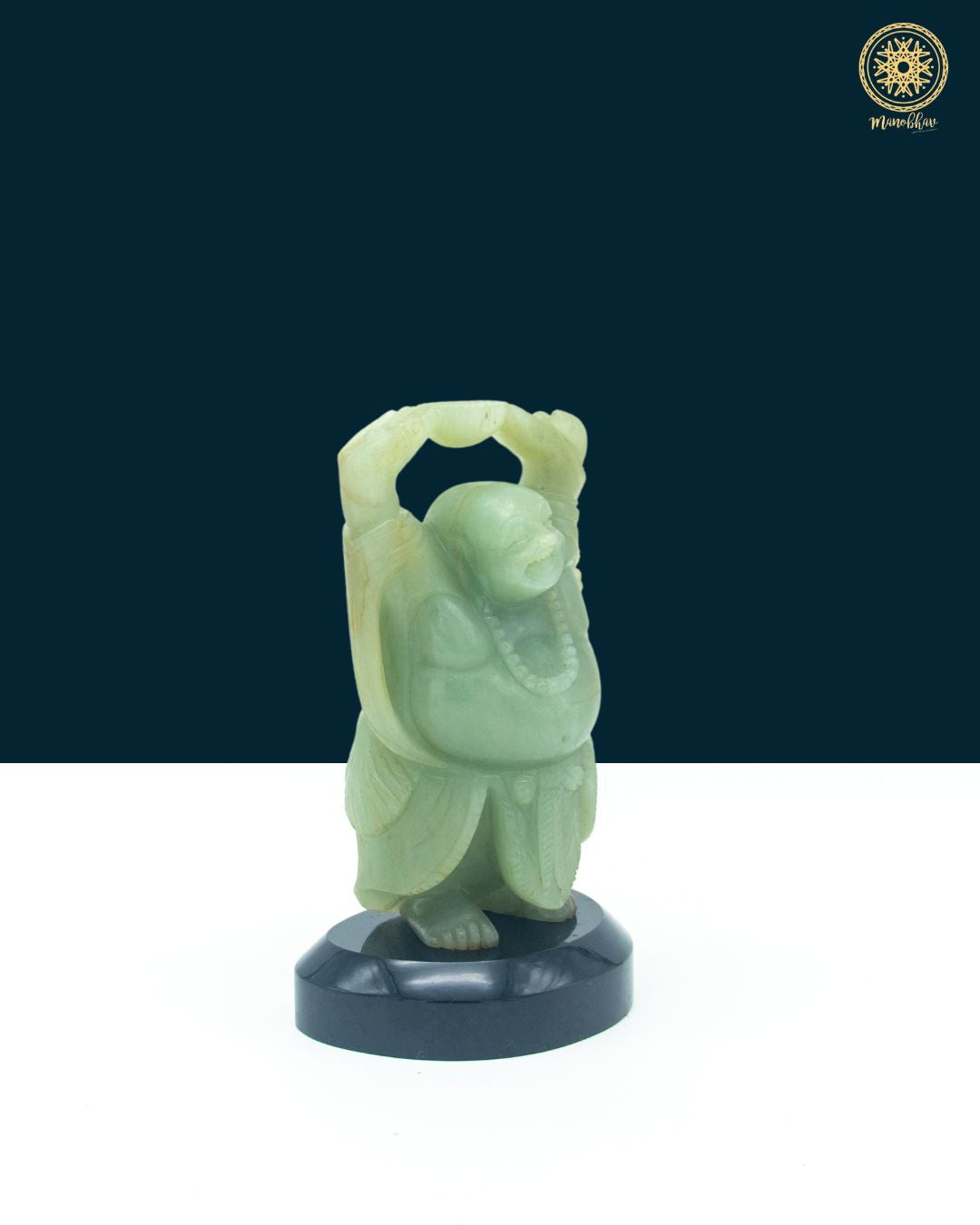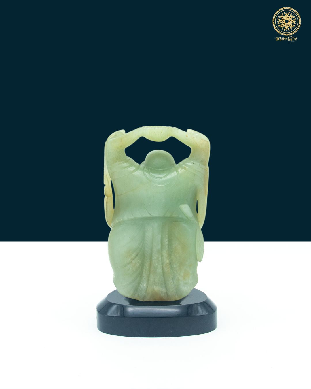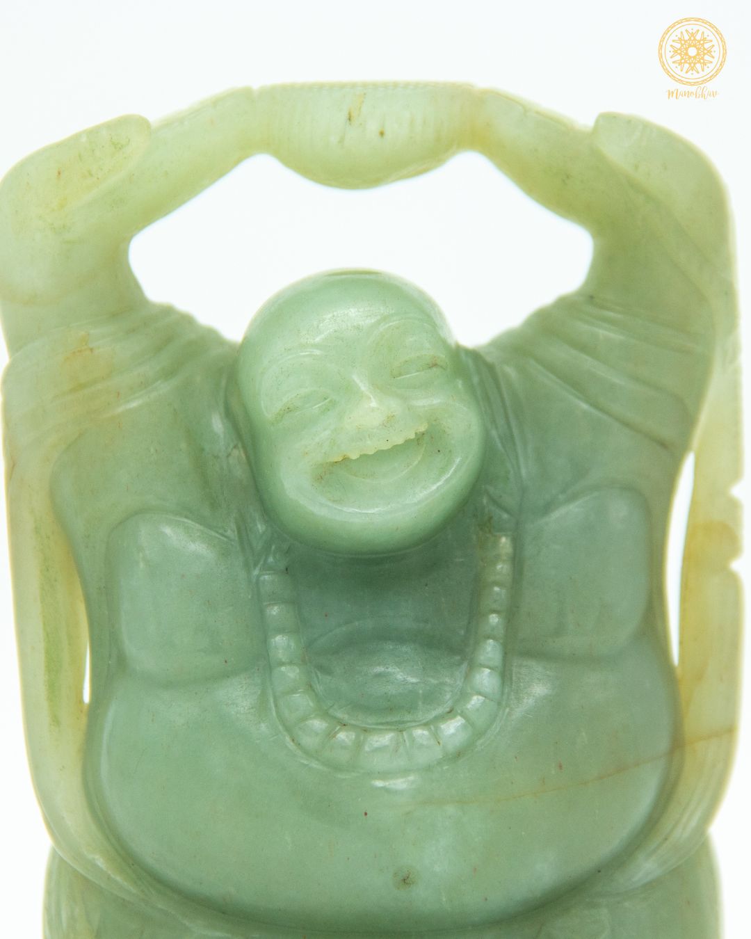 Statue de Bouddha rieur heureux en aventurine verte sculptée à la main