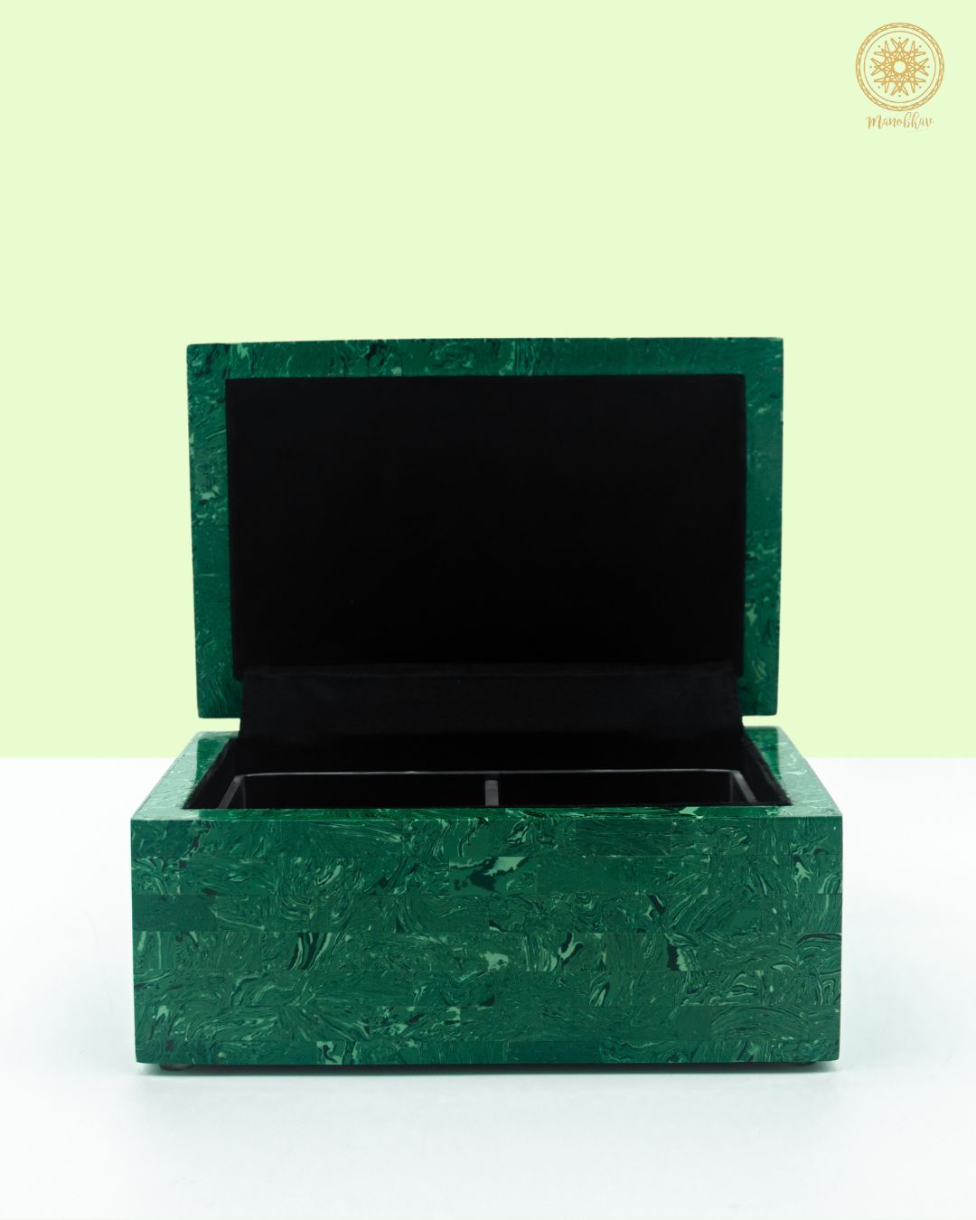 La pierre de malachite est soigneusement sculptée à la main. À l'aide d'outils spécialisés, les artisans façonnent la boîte, garantissant des bords lisses et des dimensions précises.
