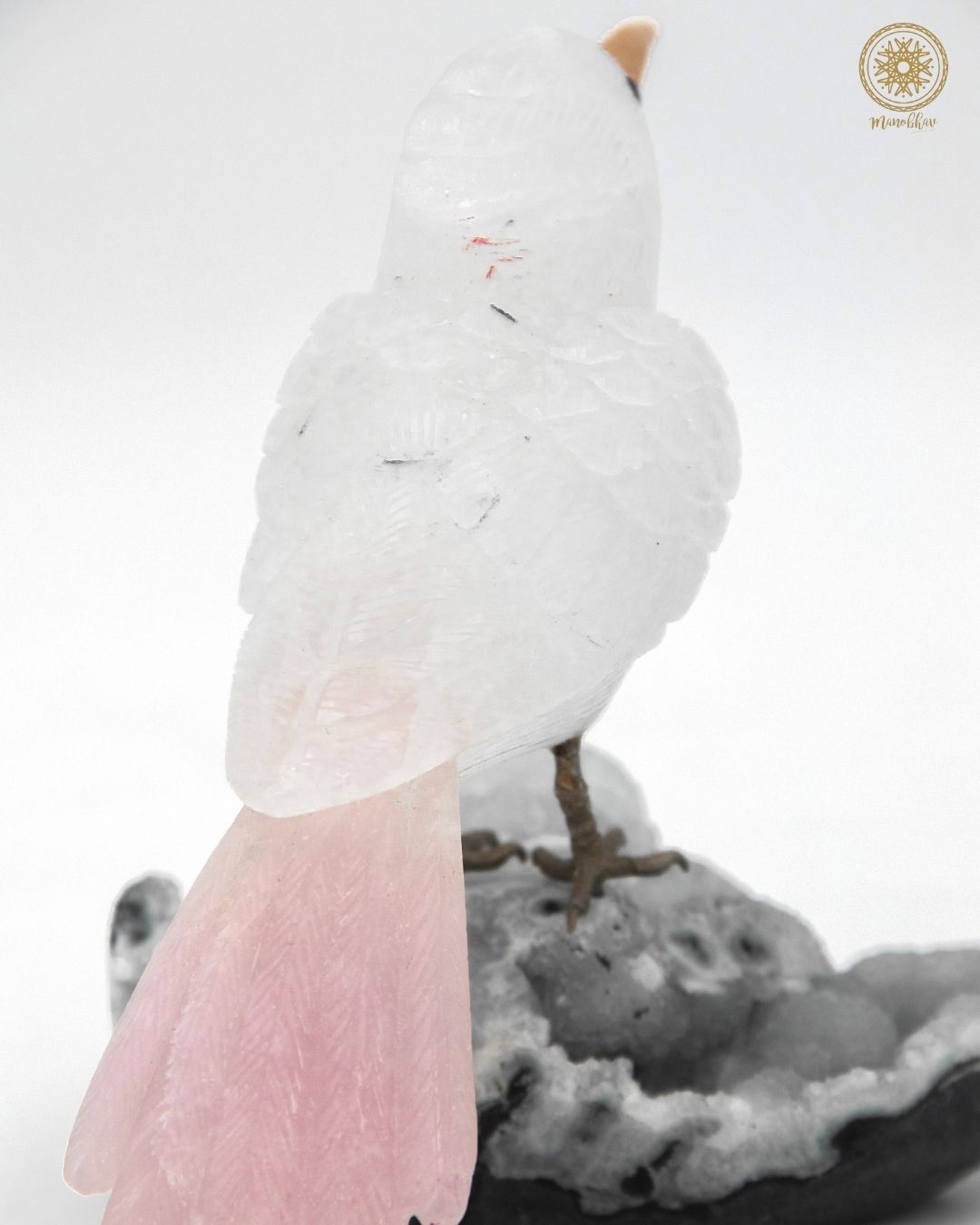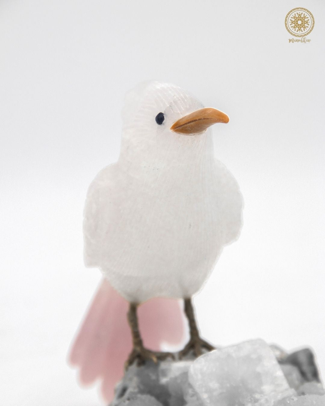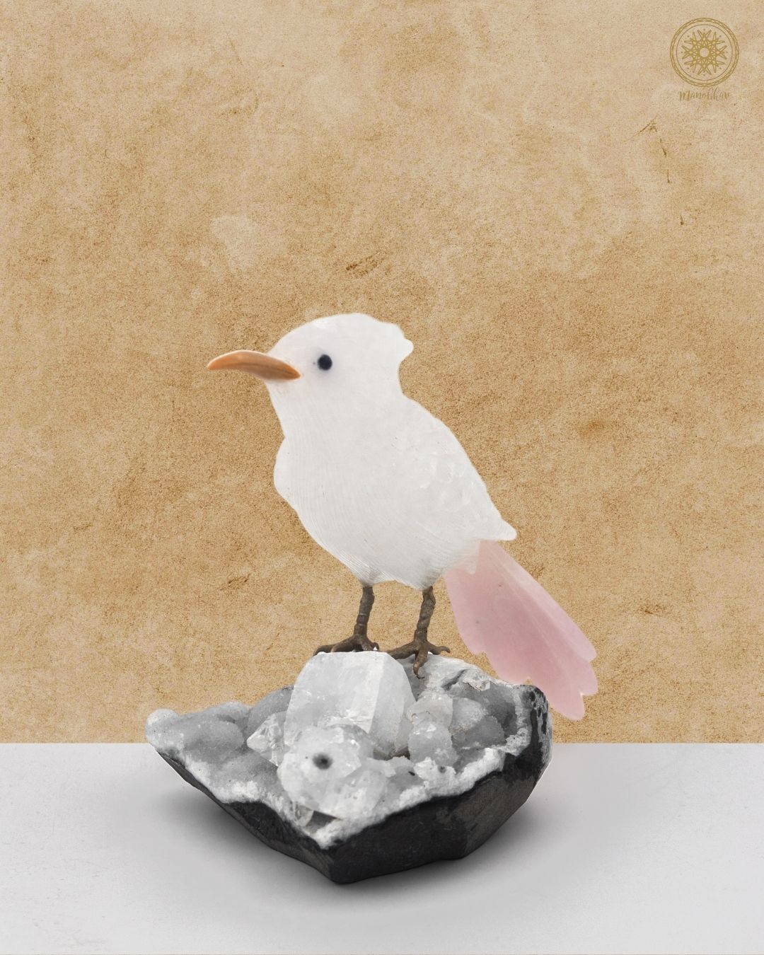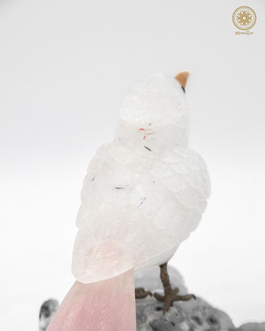 Hand-Carved White Quartz Bird Figurine | Luxury Home Decor Piece