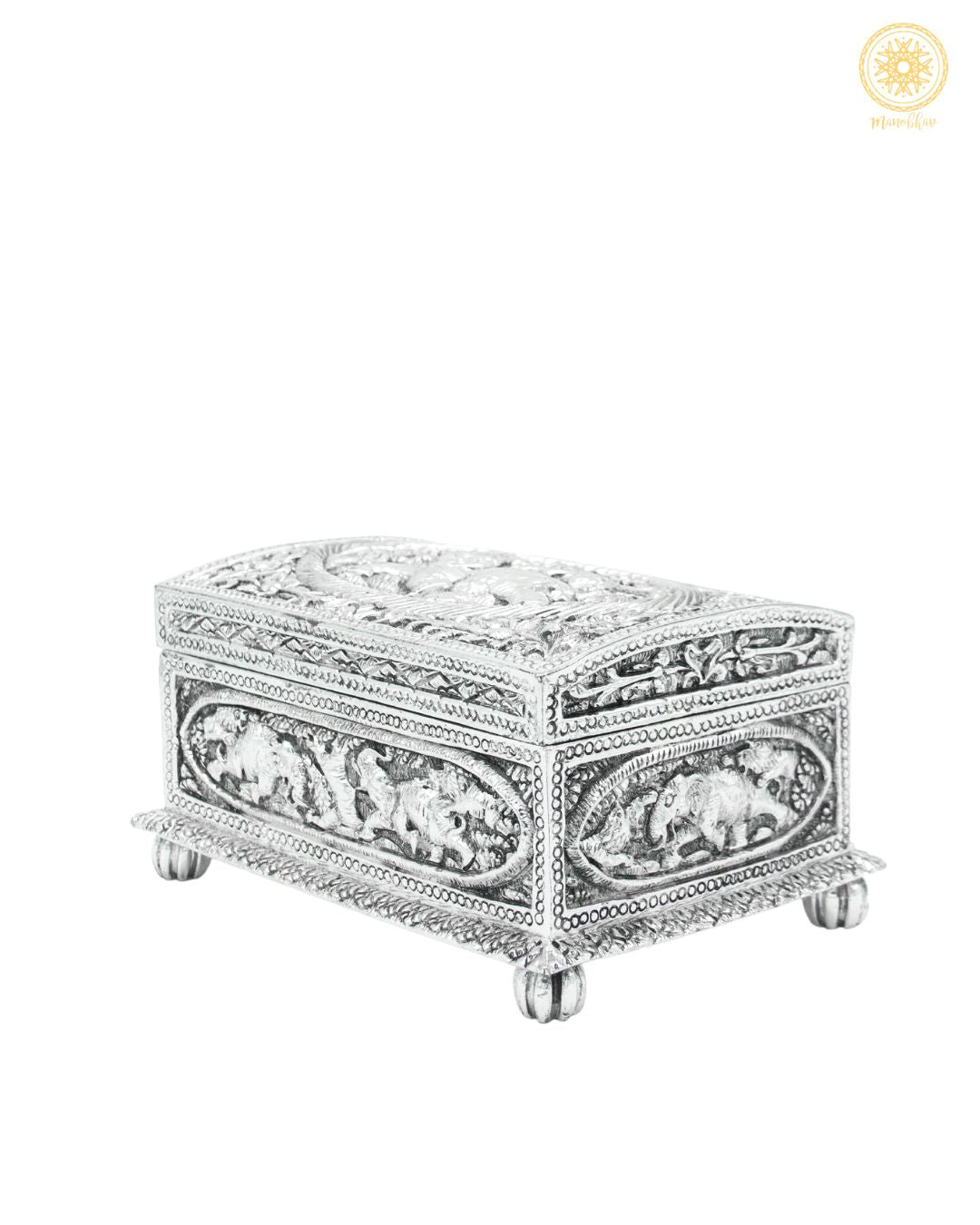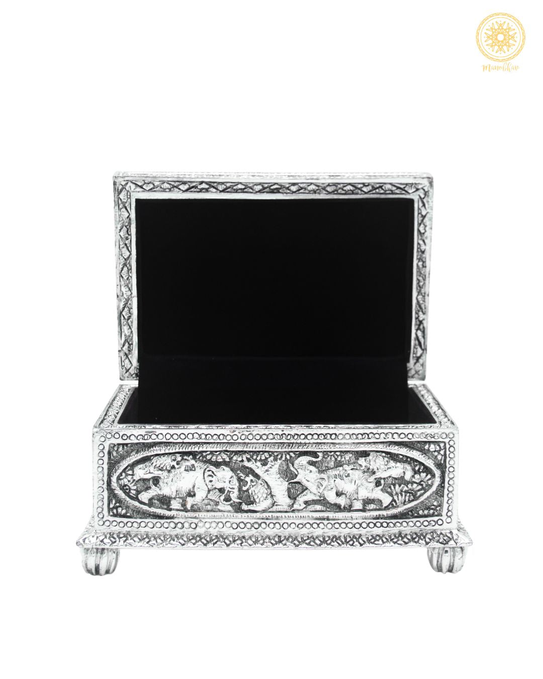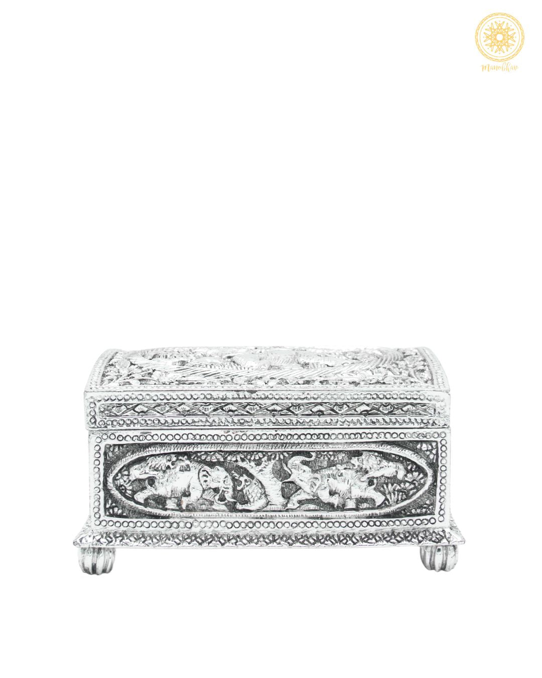 Notre boîte à bijoux rectangulaire fabriquée à la main allie fonctionnalité et élégance. Fabriquée en résine et plaquée argent, c'est la demeure parfaite pour vos précieux bijoux. Le magnifique éléphant est fabriqué sur la boîte par des mains expertes.