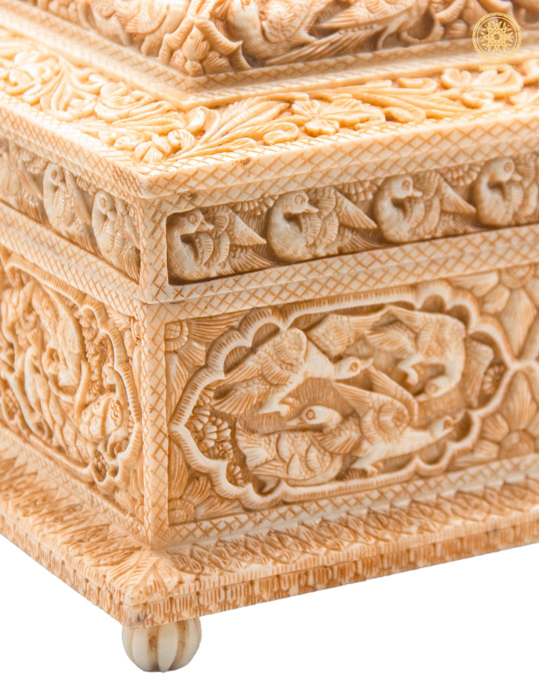 Hand Carved Jewelry Box with Birds Design | Antique Casket for Family Heirloom